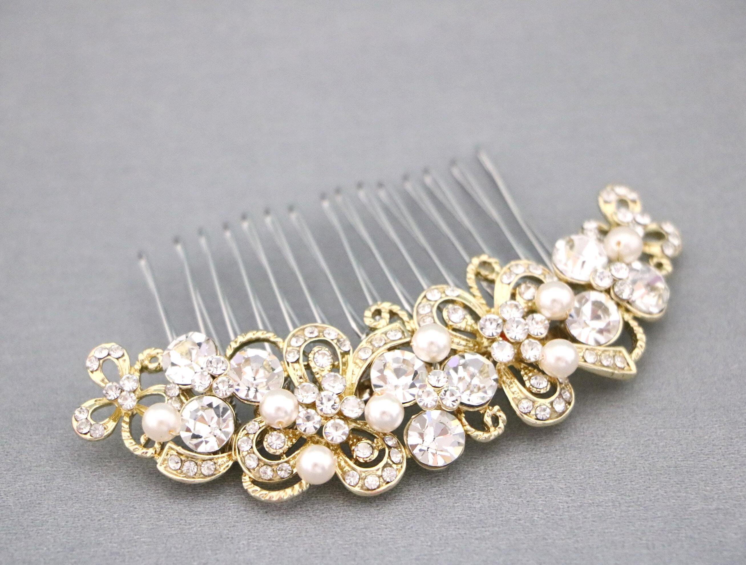 Hair comb : The rhinestone part measures approximately 4 X 1 inches.