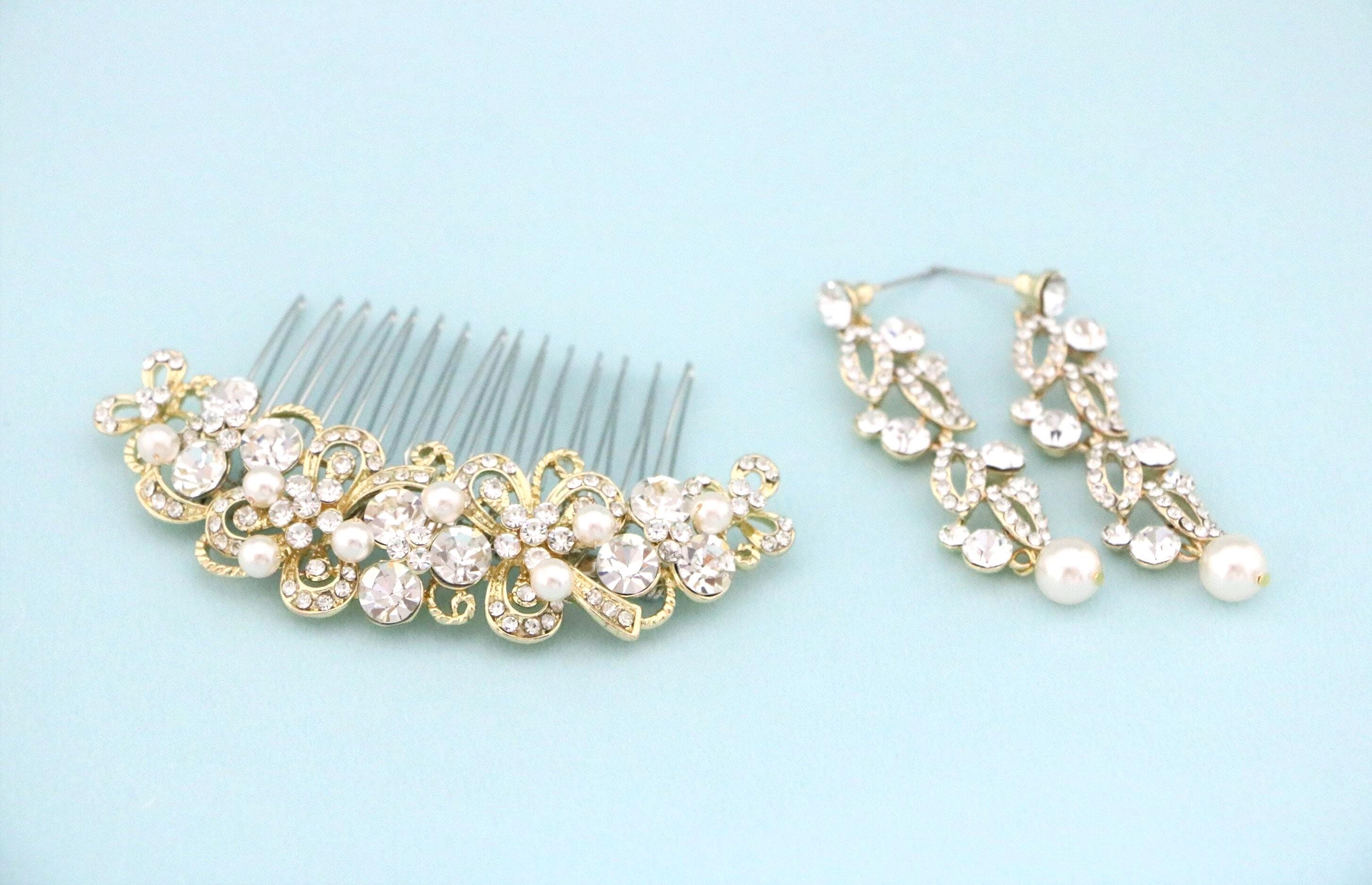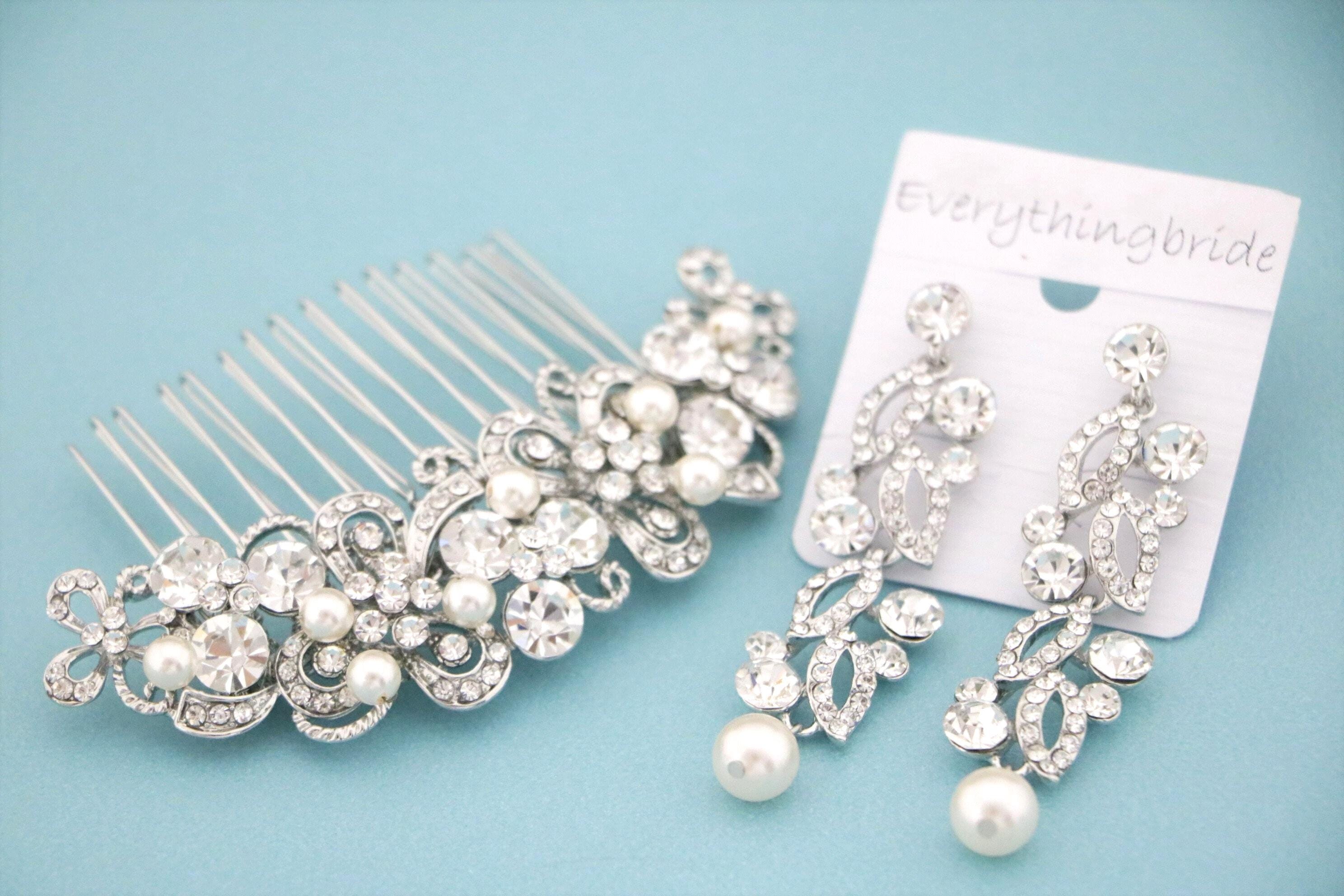 bridal hair comb and silver earrings set, wedding hair piece, bridal hair piece, bridesmaid gifts, bridesmaid jewelry set, wedding hair comb