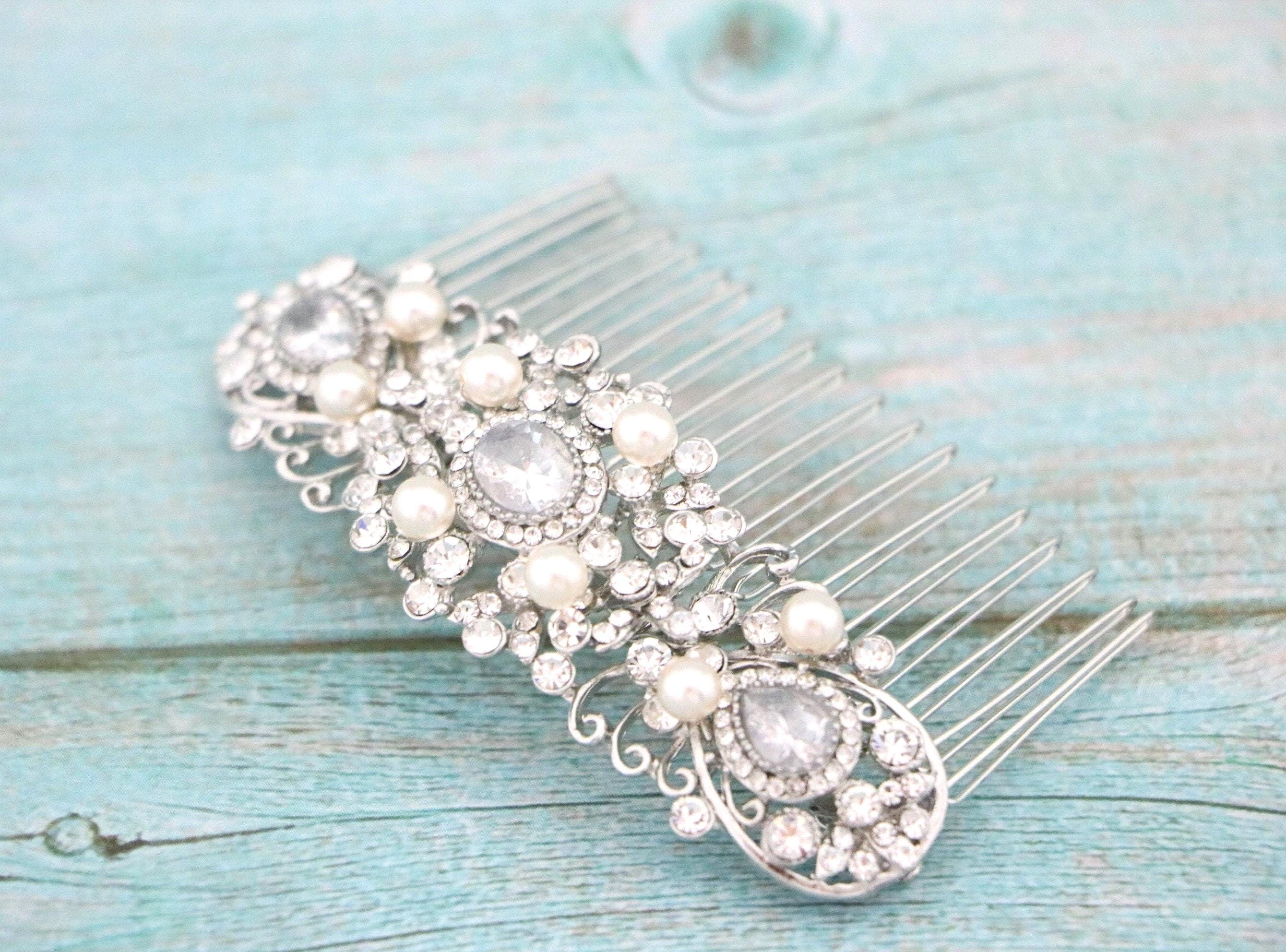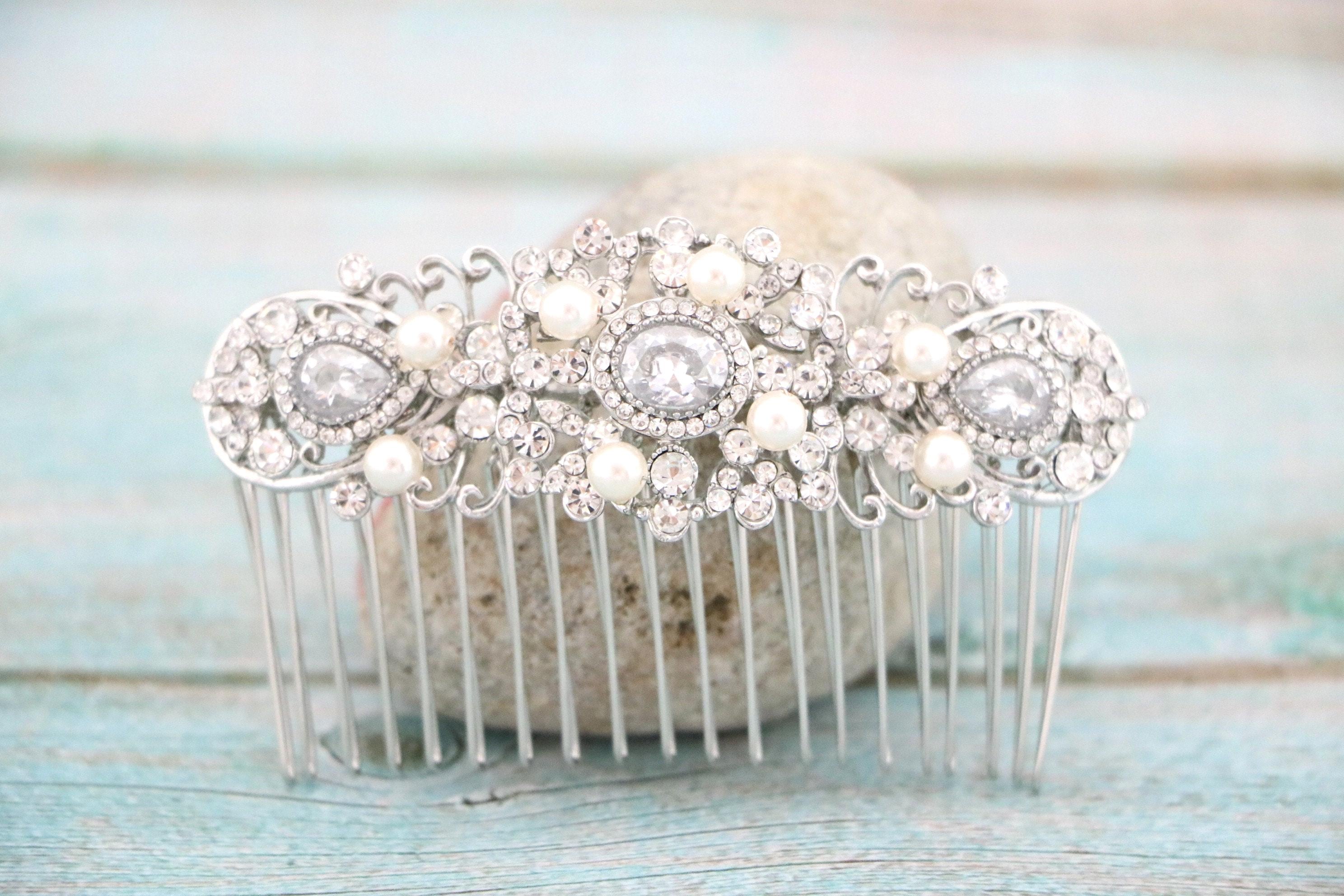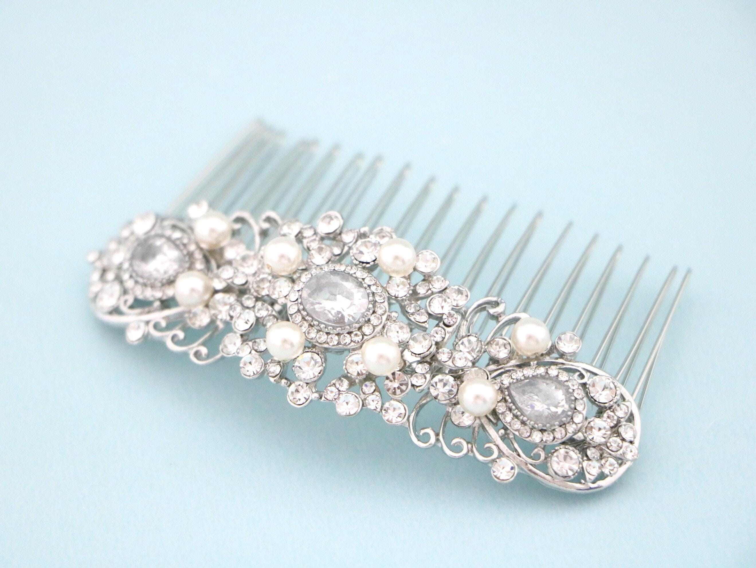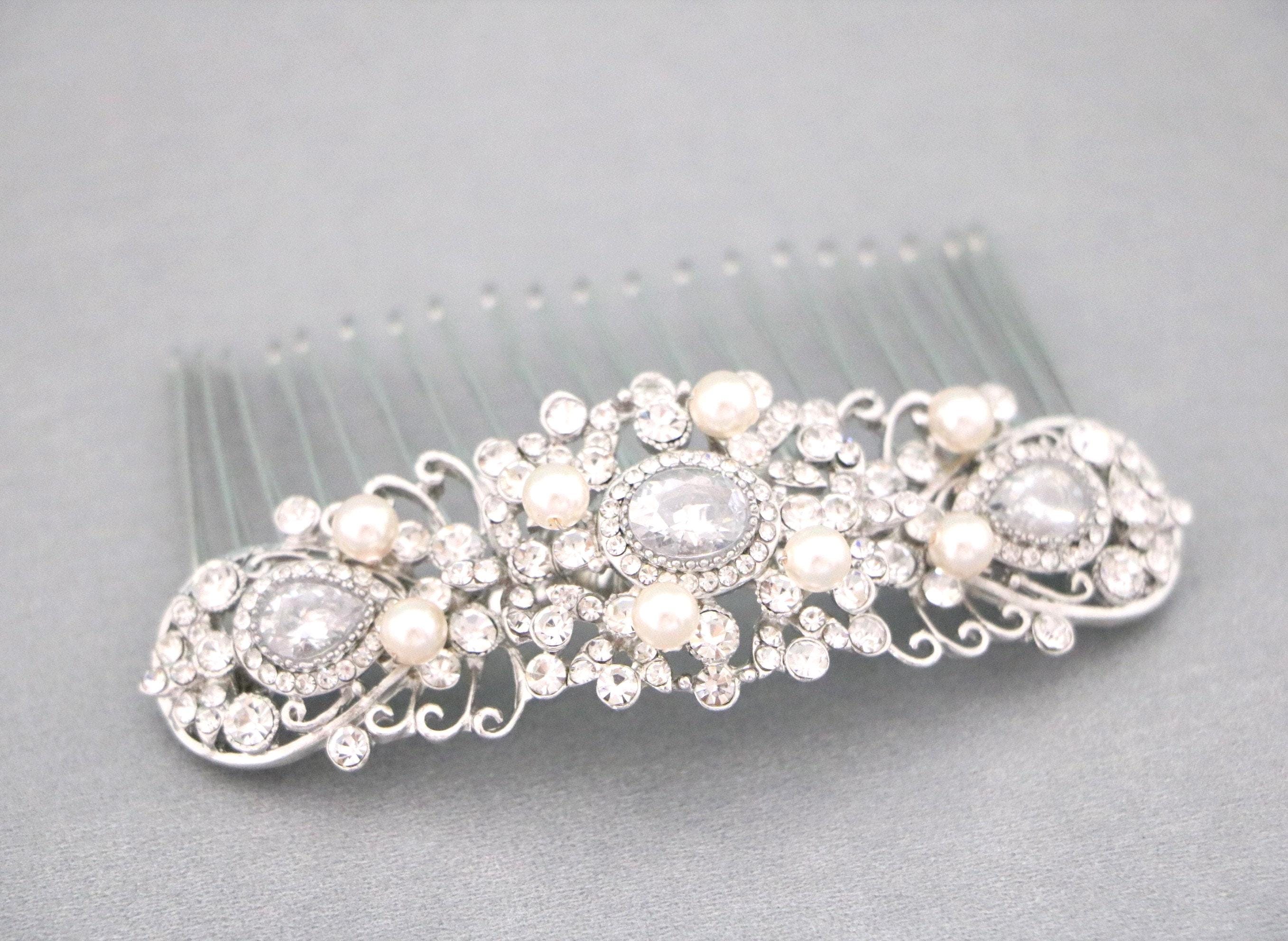 Wedding Bridal Crystal Hair Comb, Silver Hair Accessories, Vintage Style Crystal Head Piece, Bridesmaids Hair Comb, Bridal Crystal Hairpiece