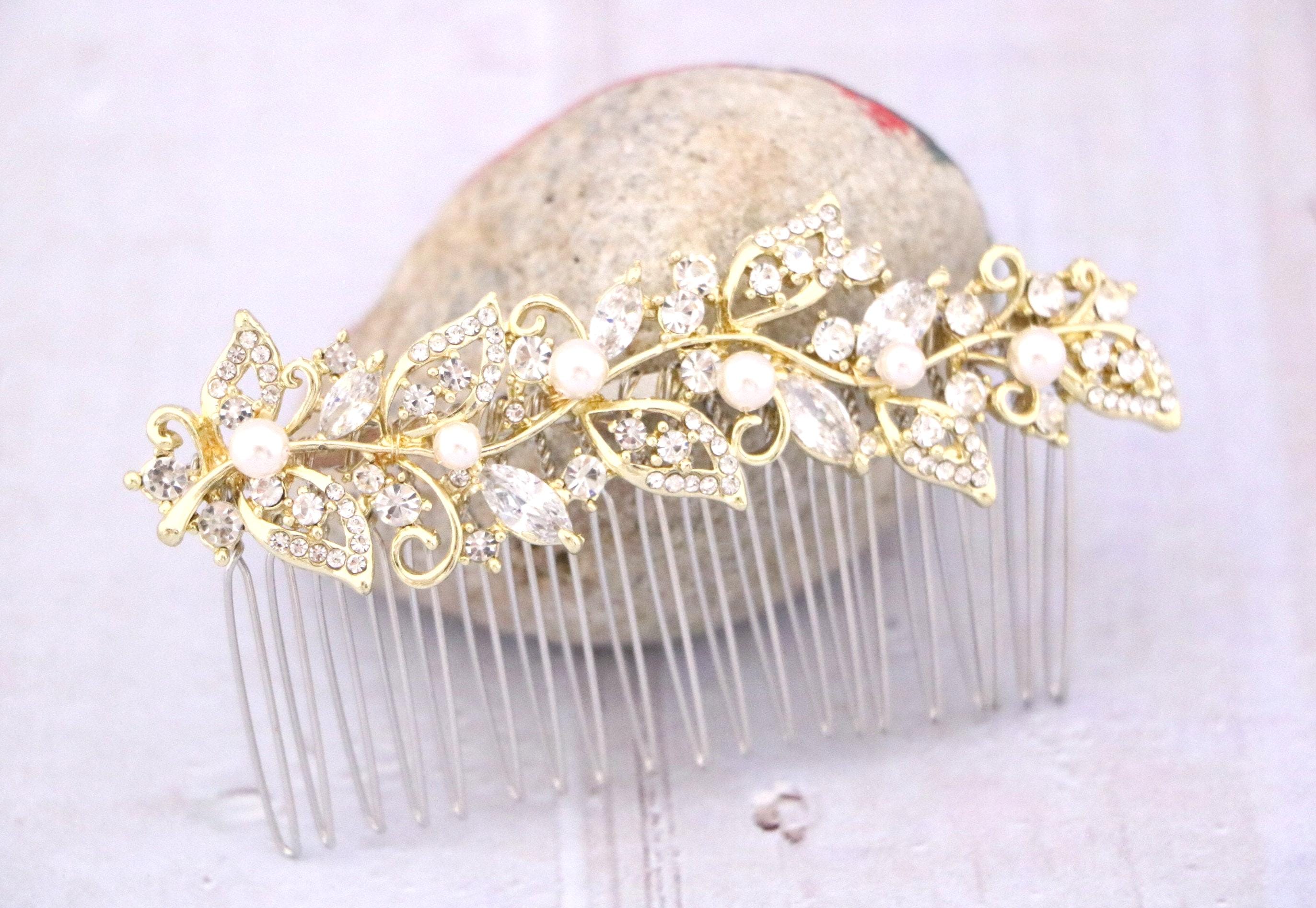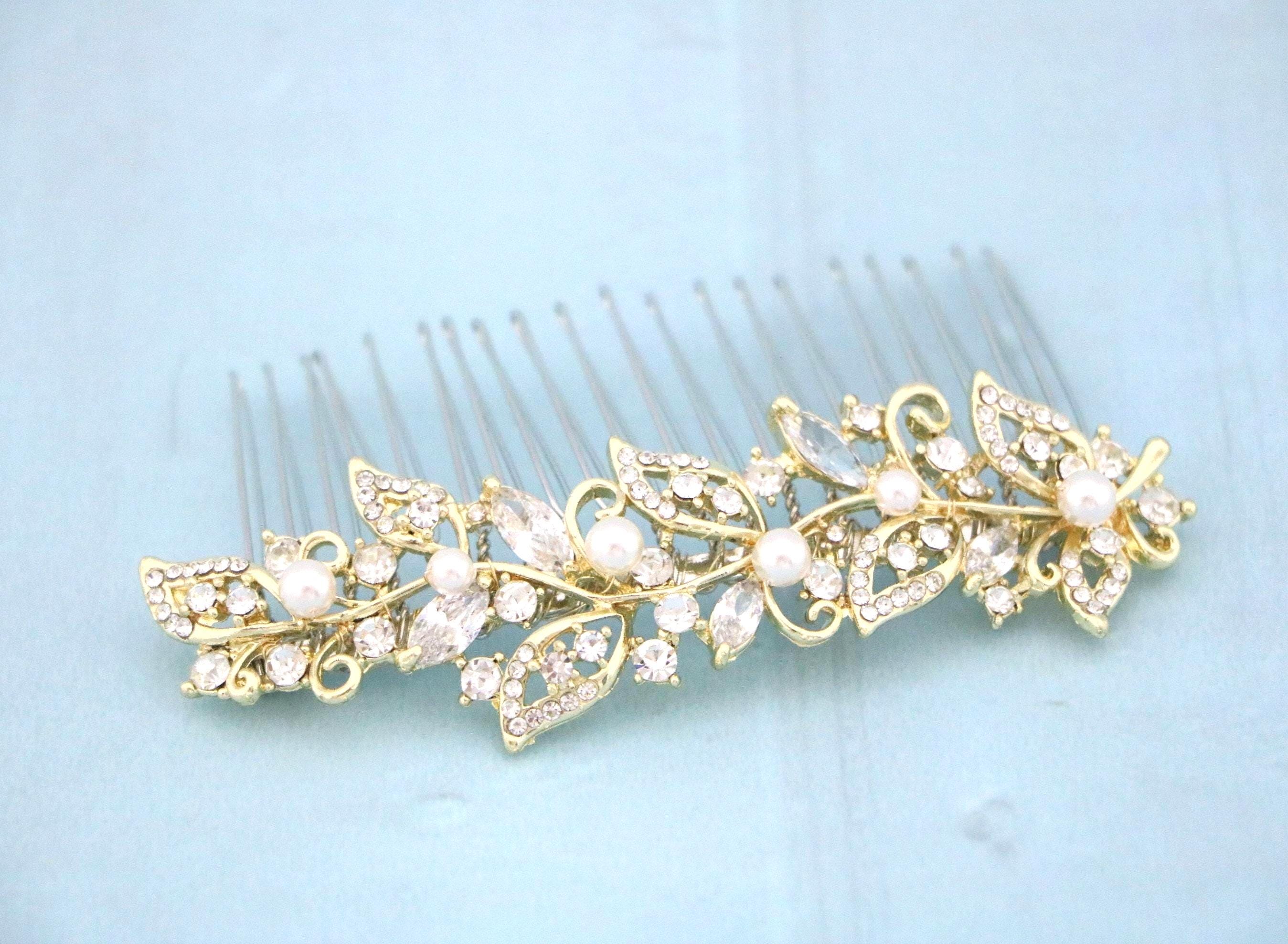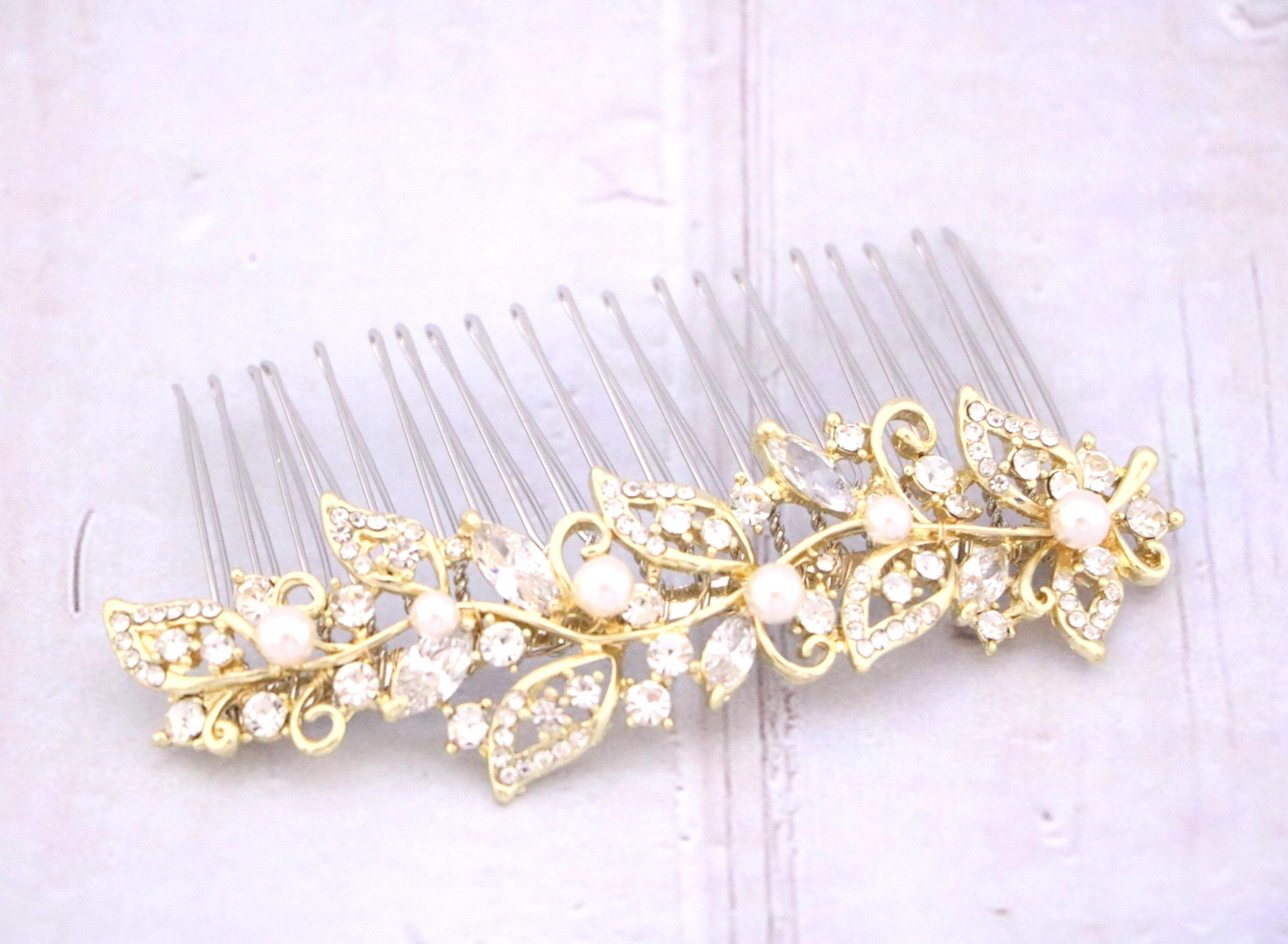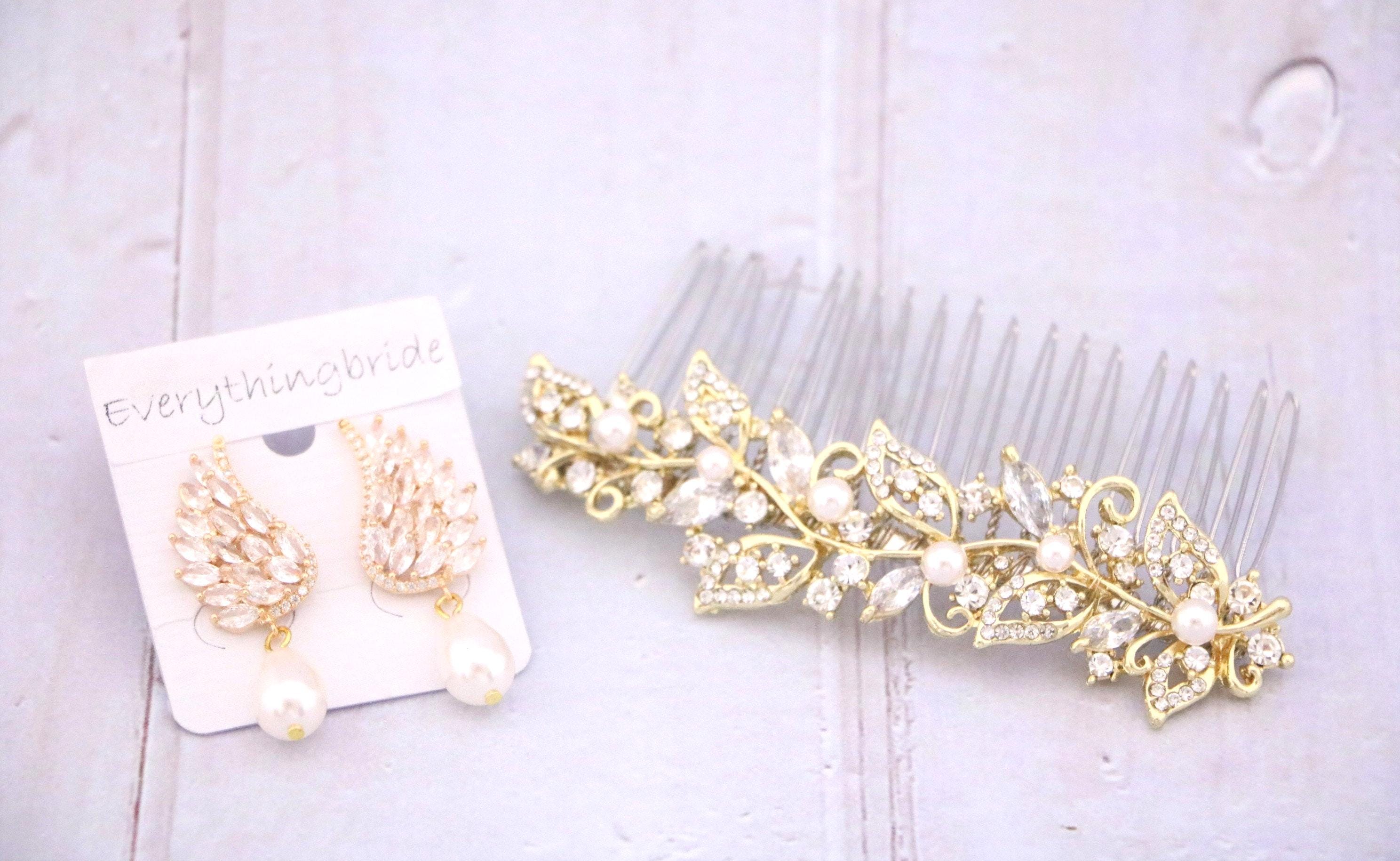 Wedding Headpiece Gold Leaf Hair Comb Bridal Hair Comb Boho Wedding Hair Pin Wedding Leaf Hairpiece Gold Hair Comb Sample Bridal earrings pearl drop Wedding hair jewelry