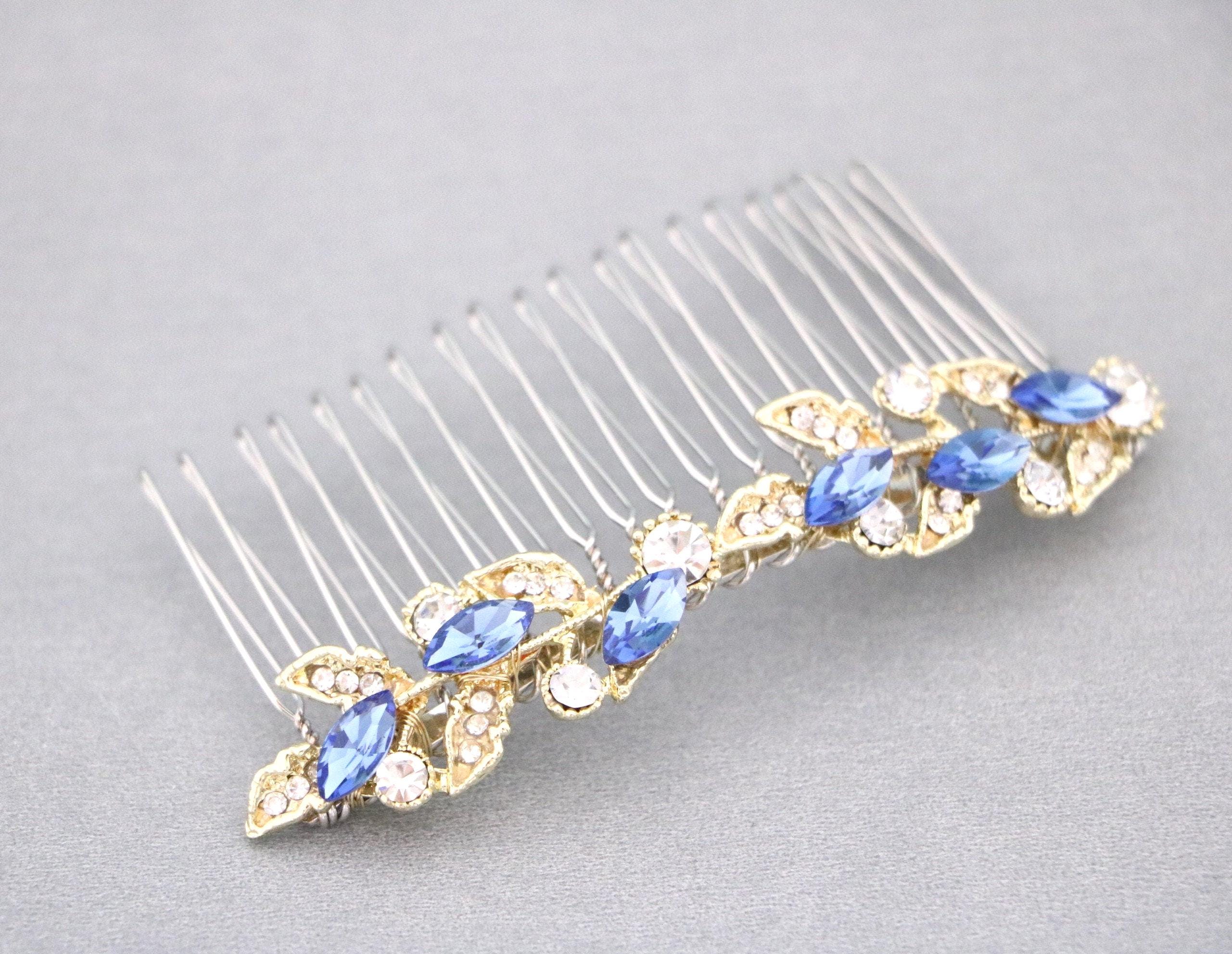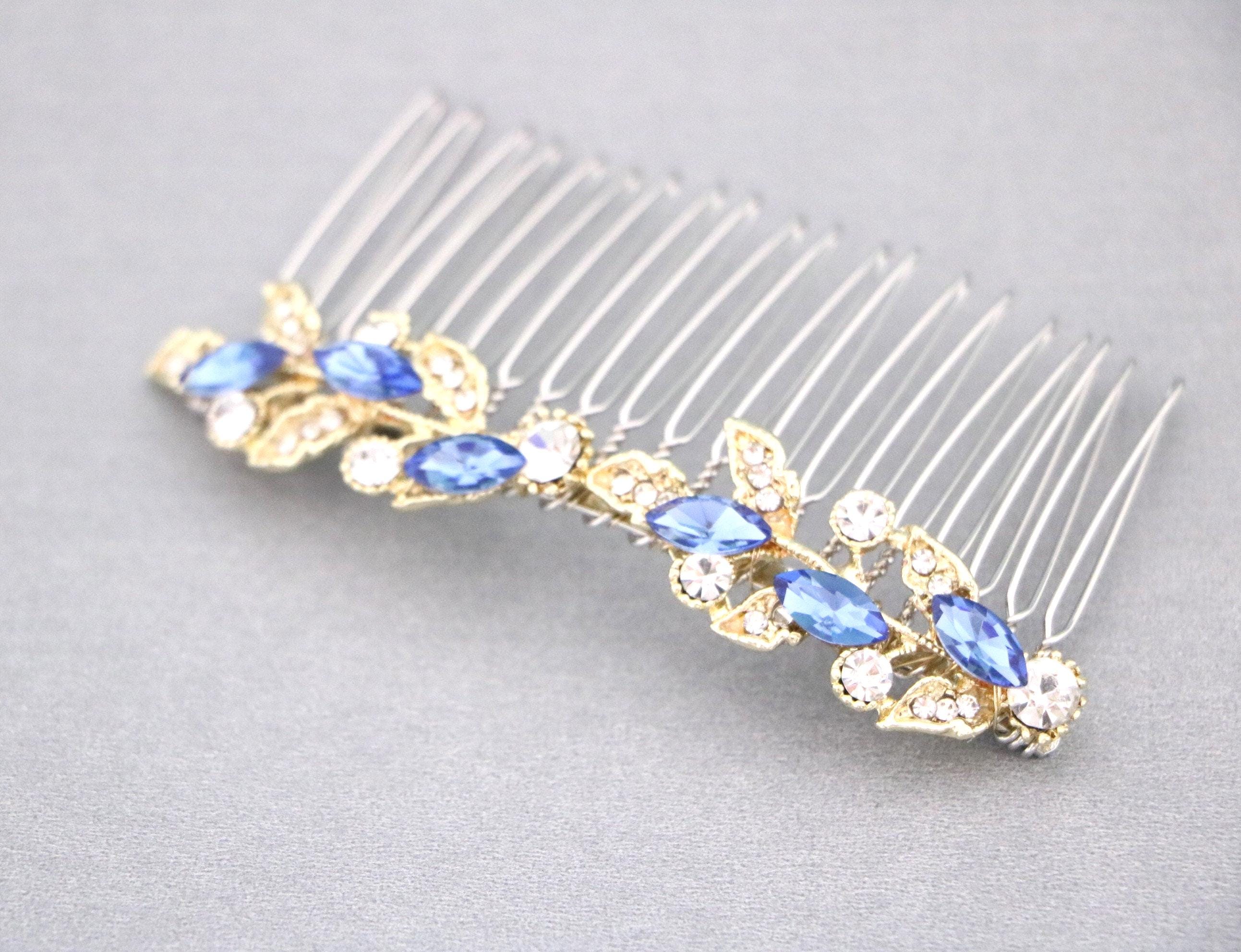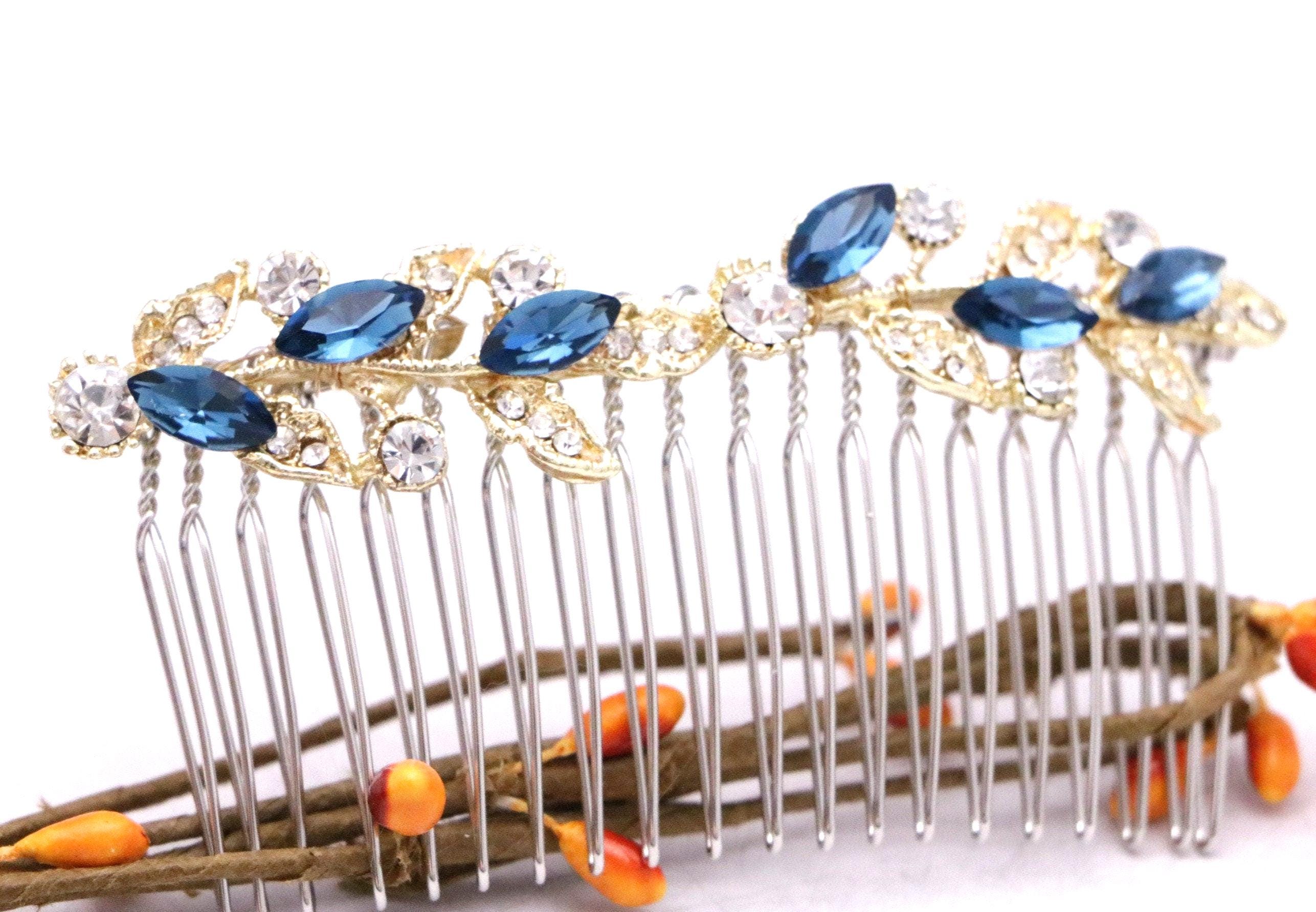Vintage Style Hair Comb, Navy Blue Bridal Comb, Blue Headpiece, Dusty Blue Wedding Hair Accessory, Blue Wedding, Silver Bridal Clip