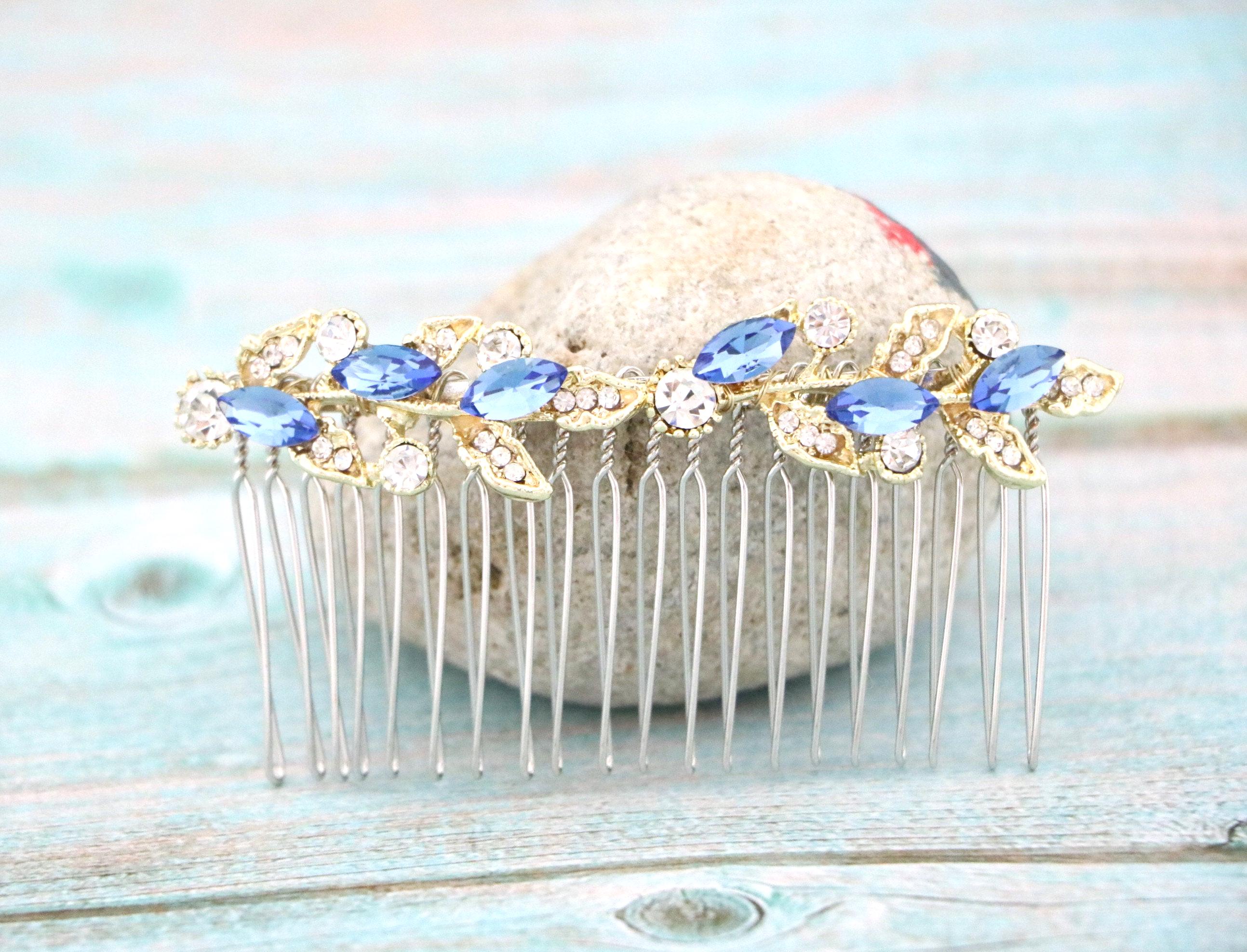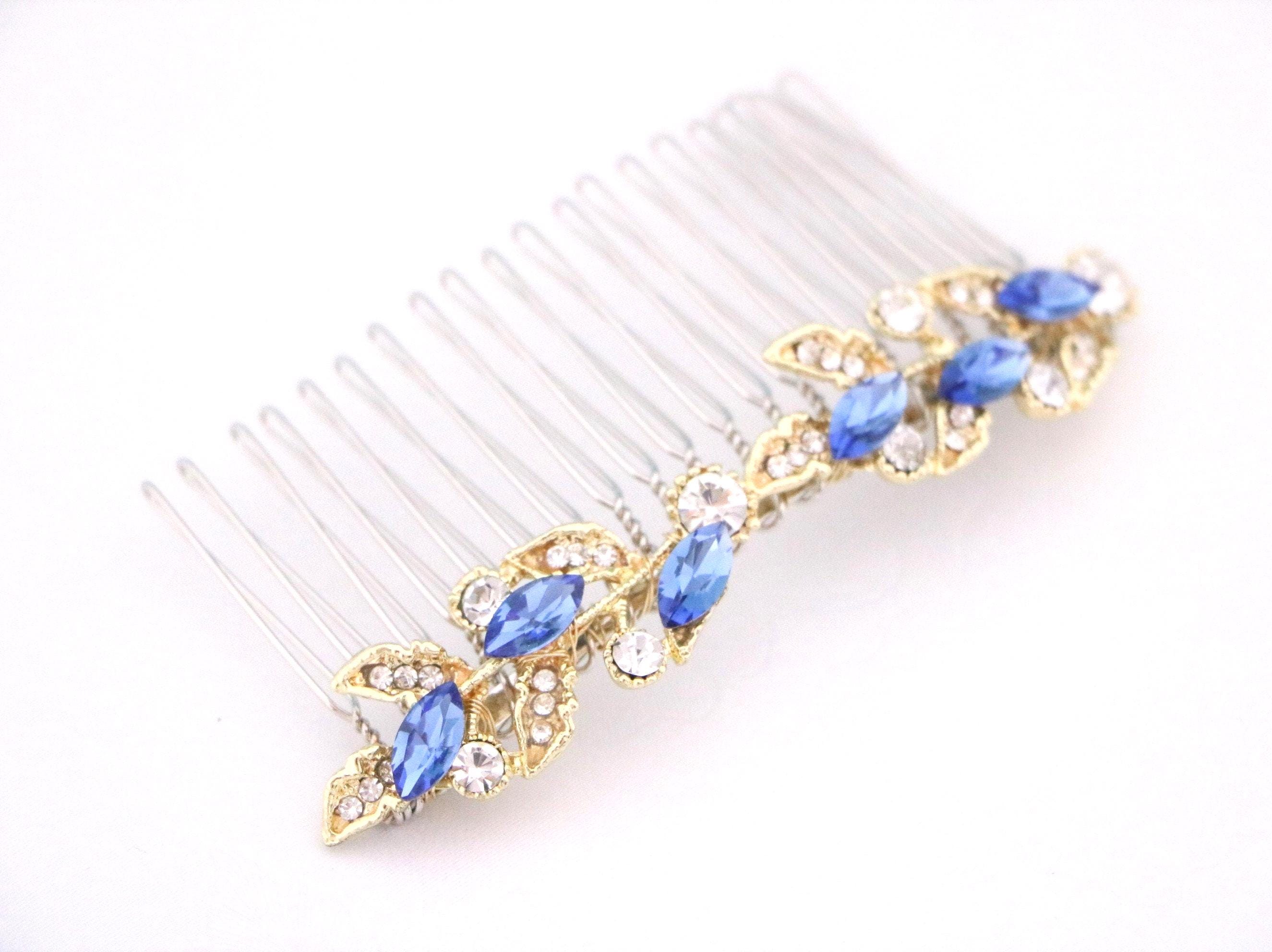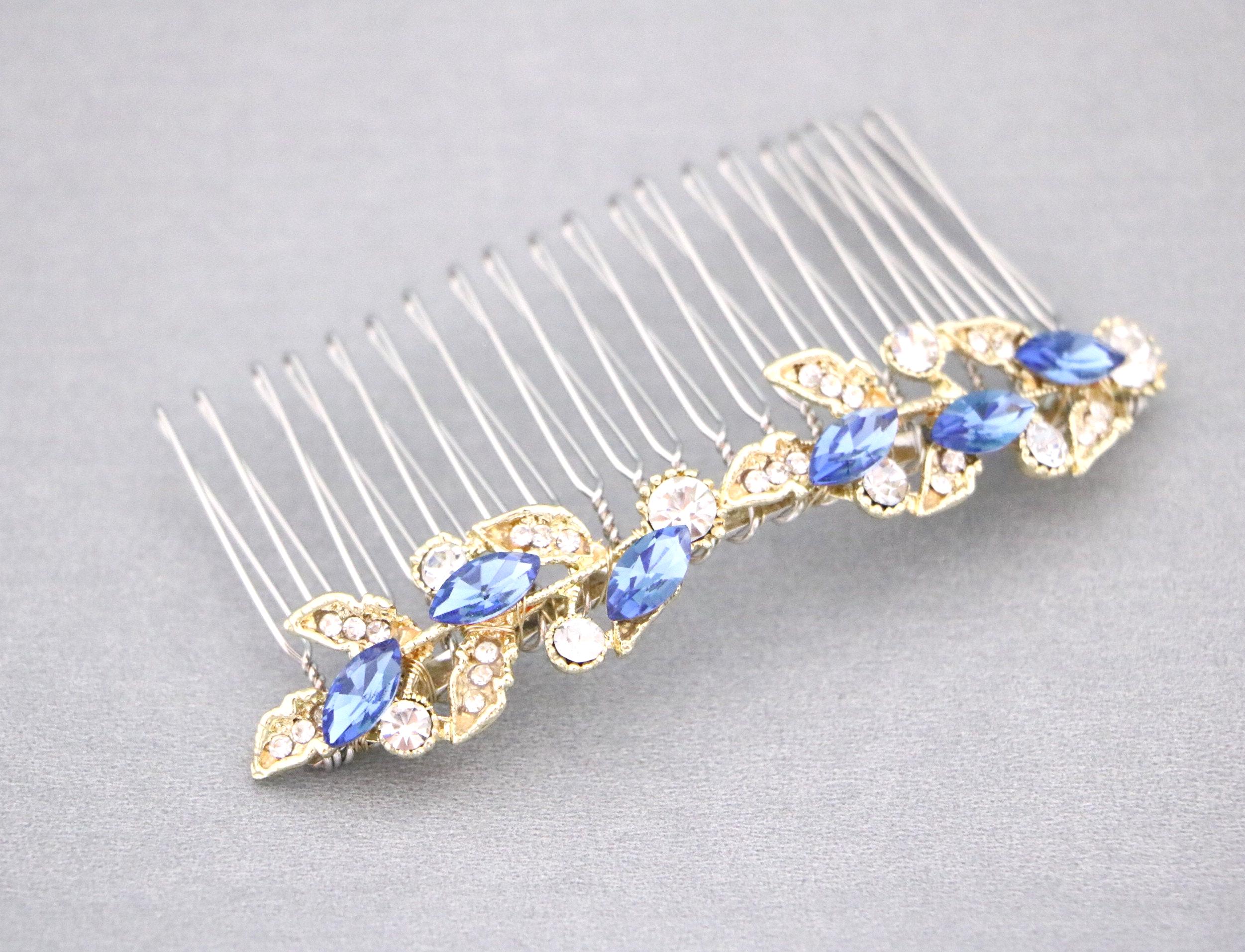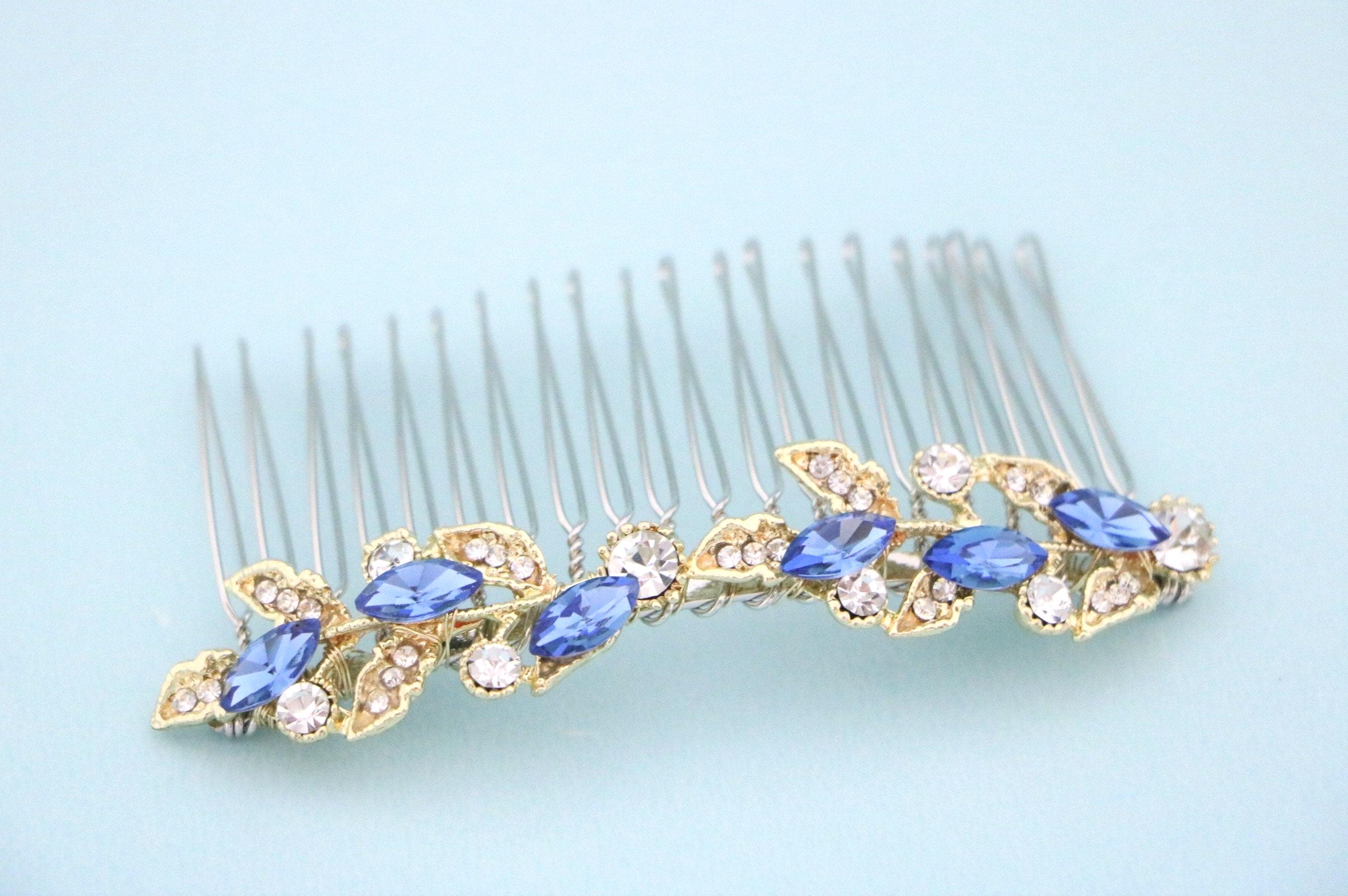 Vintage Style Hair Comb, Navy Blue Bridal Comb, Blue Headpiece, Dusty Blue Wedding Hair Accessory, Blue Wedding, Silver Bridal Clip