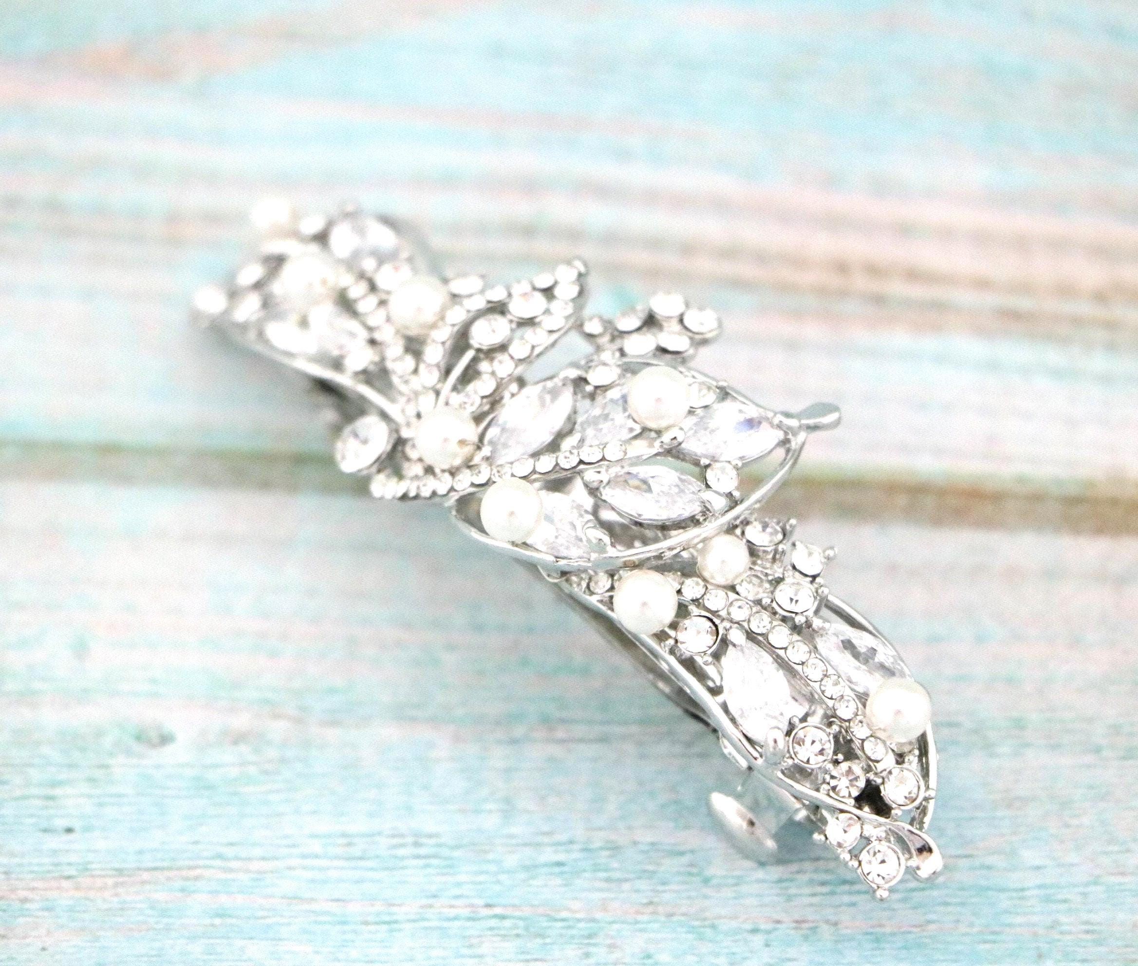 pearl rhinestone hair barrette flower branch event wedding hair accessory