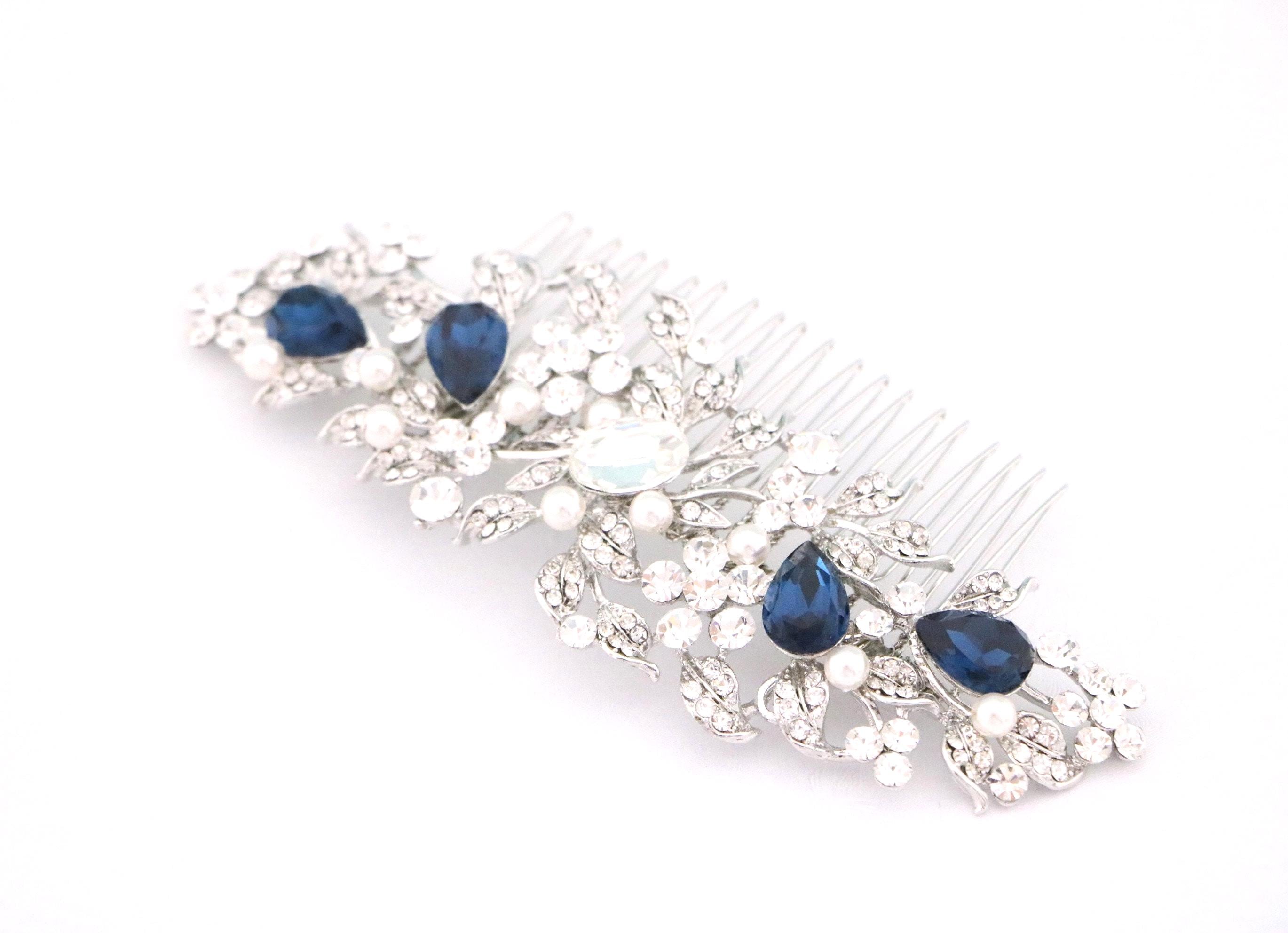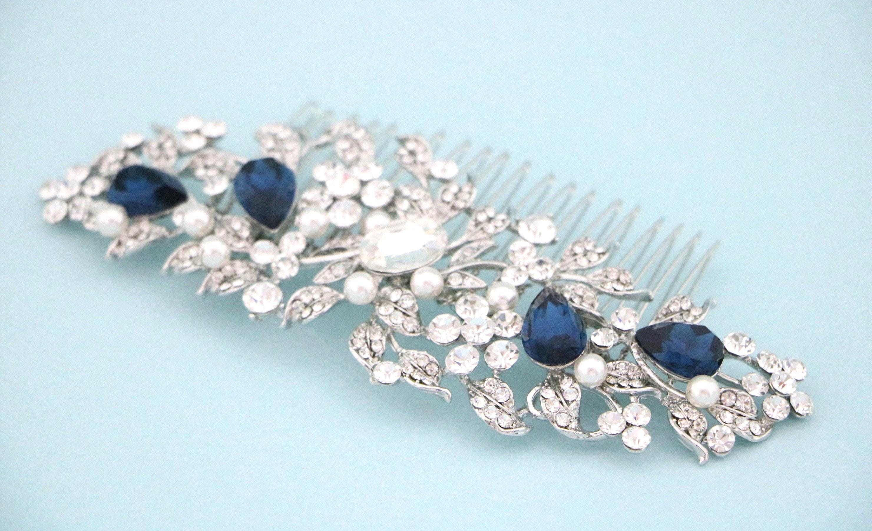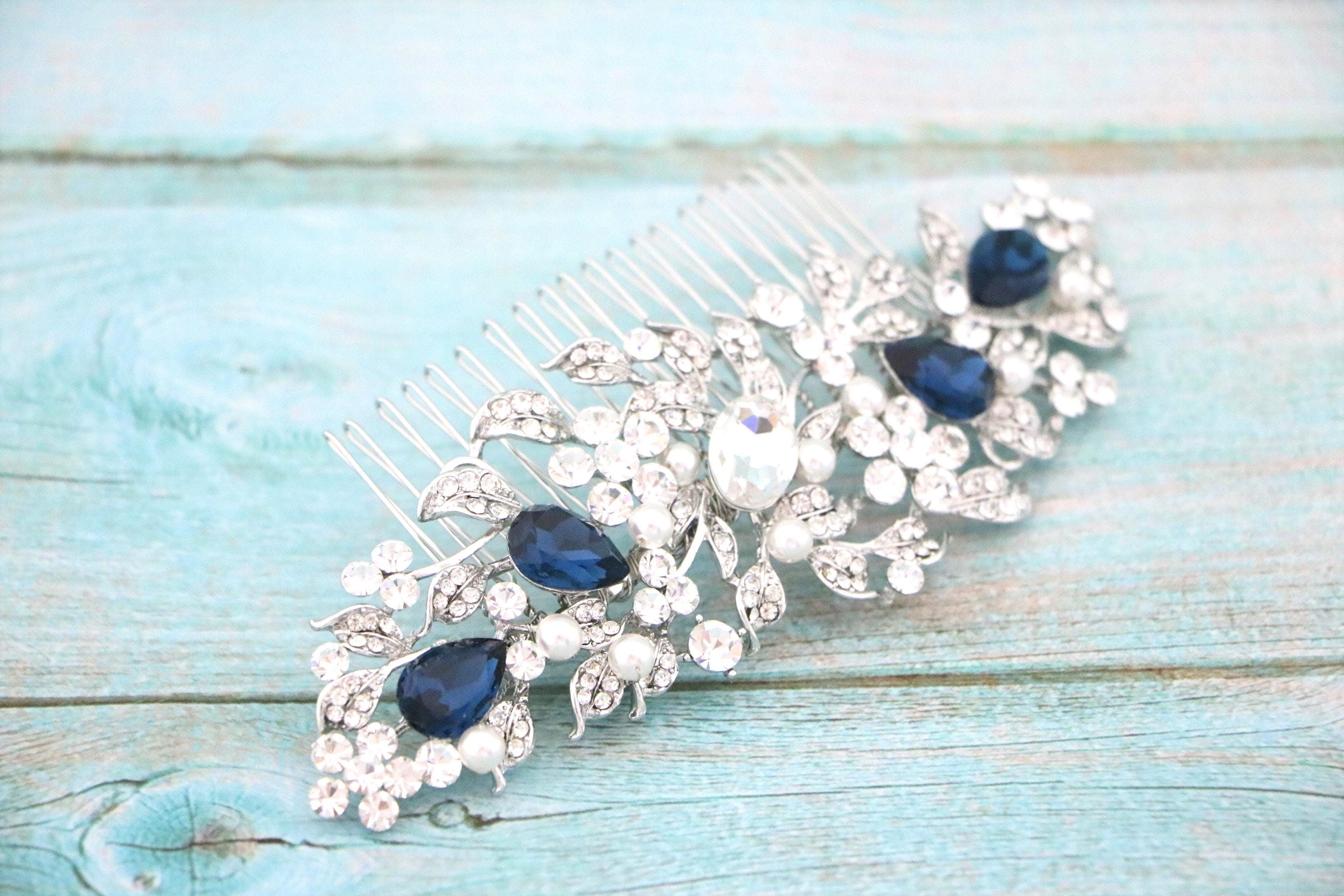 Bridal Hair Comb For a bride, Halo Cz Blue Sapphire Hair Comb, Something Blue, Crystal Comb for Hair, Hair Jewelry, Wedding Hair piece
