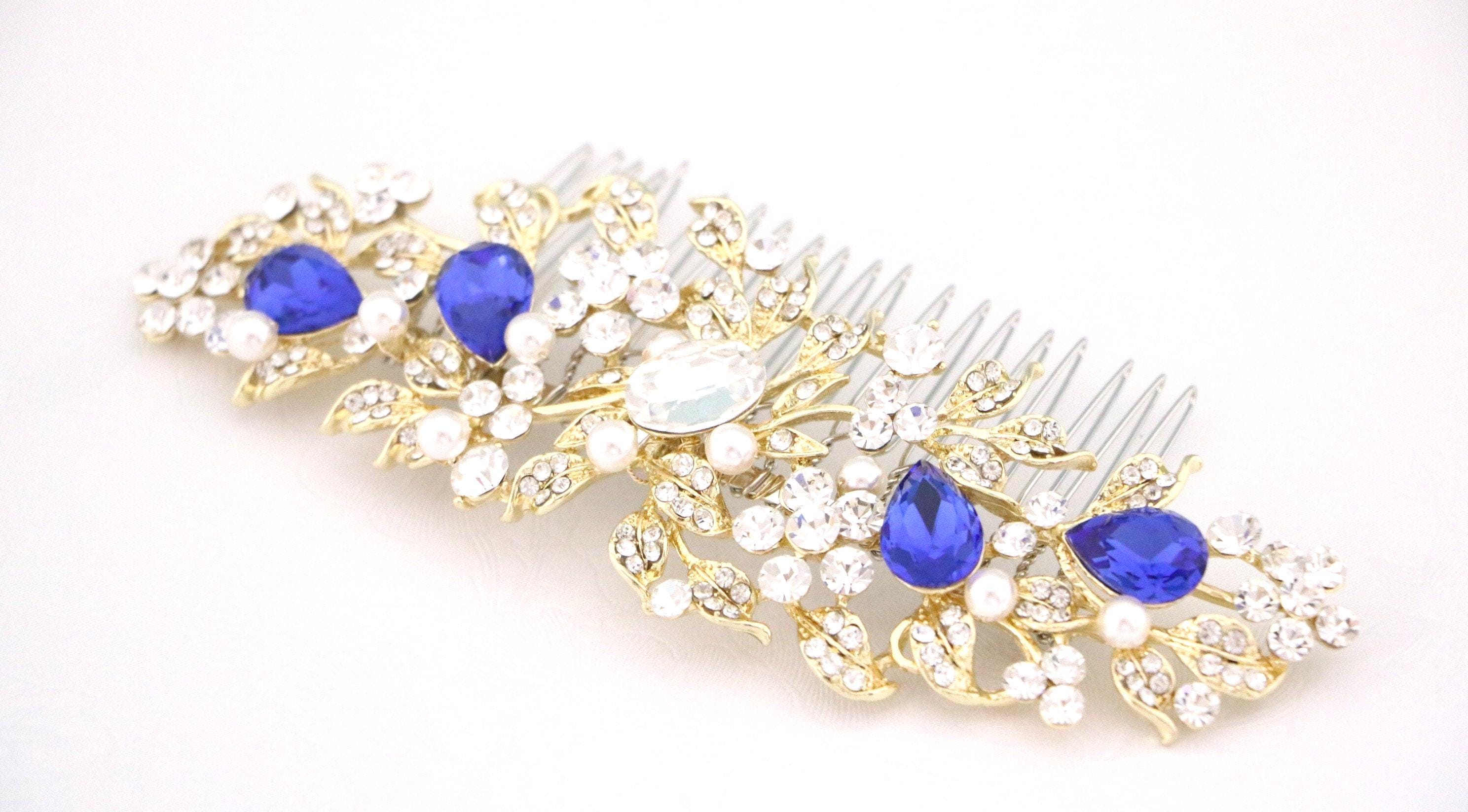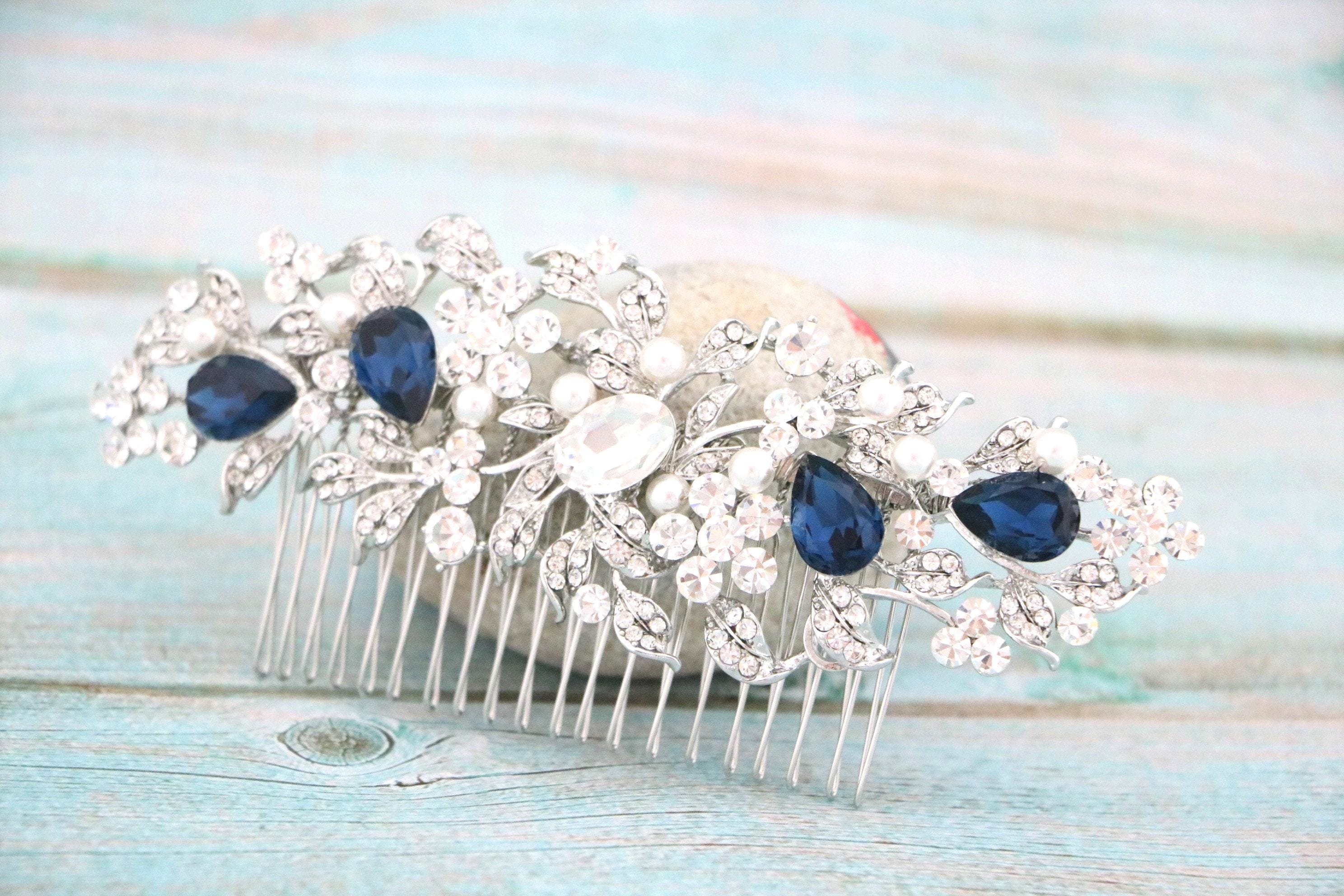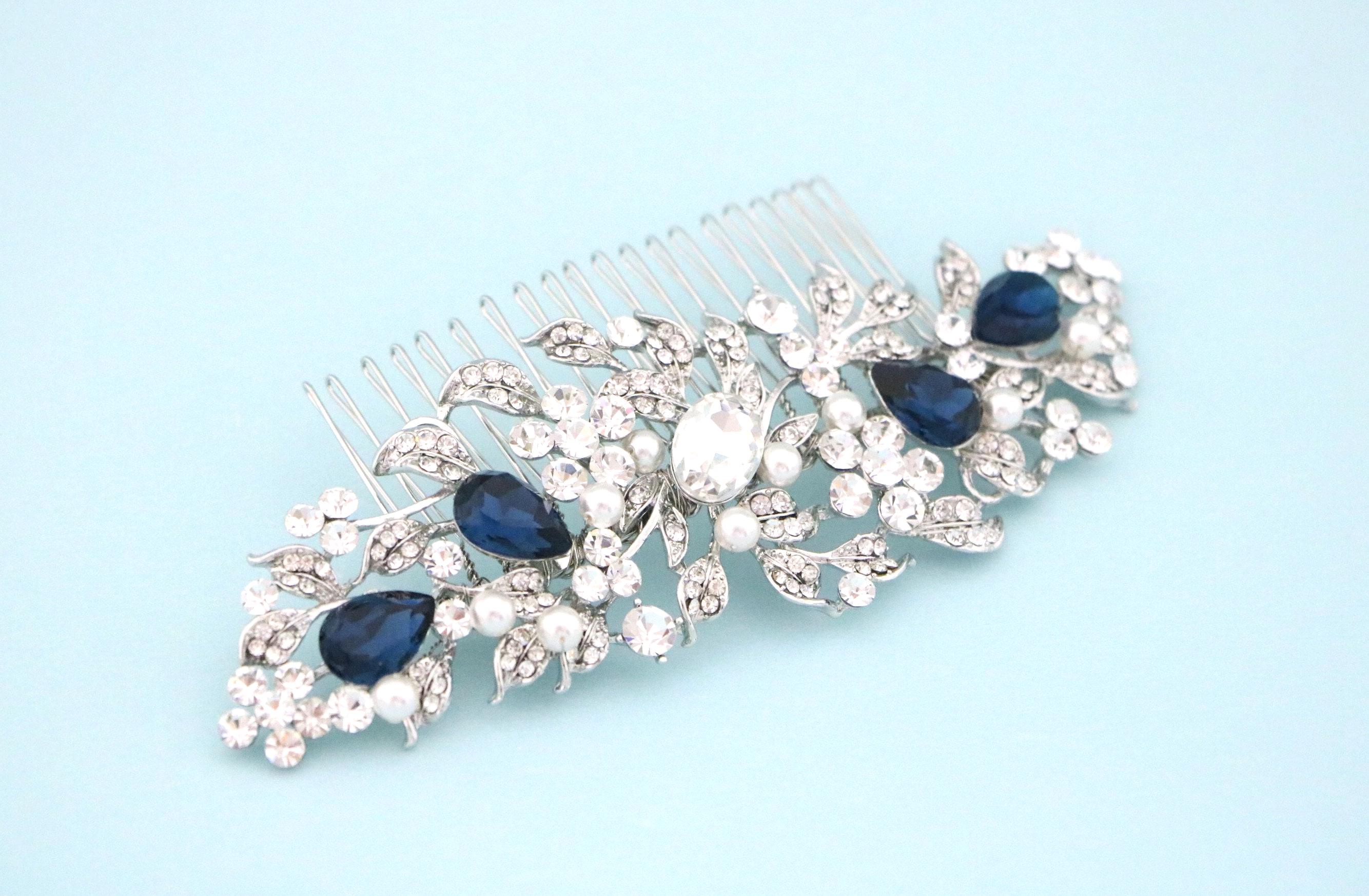 Bridal Hair Comb For a bride, Halo Cz Blue Sapphire Hair Comb, Something Blue, Crystal Comb for Hair, Hair Jewelry, Wedding Hair piece