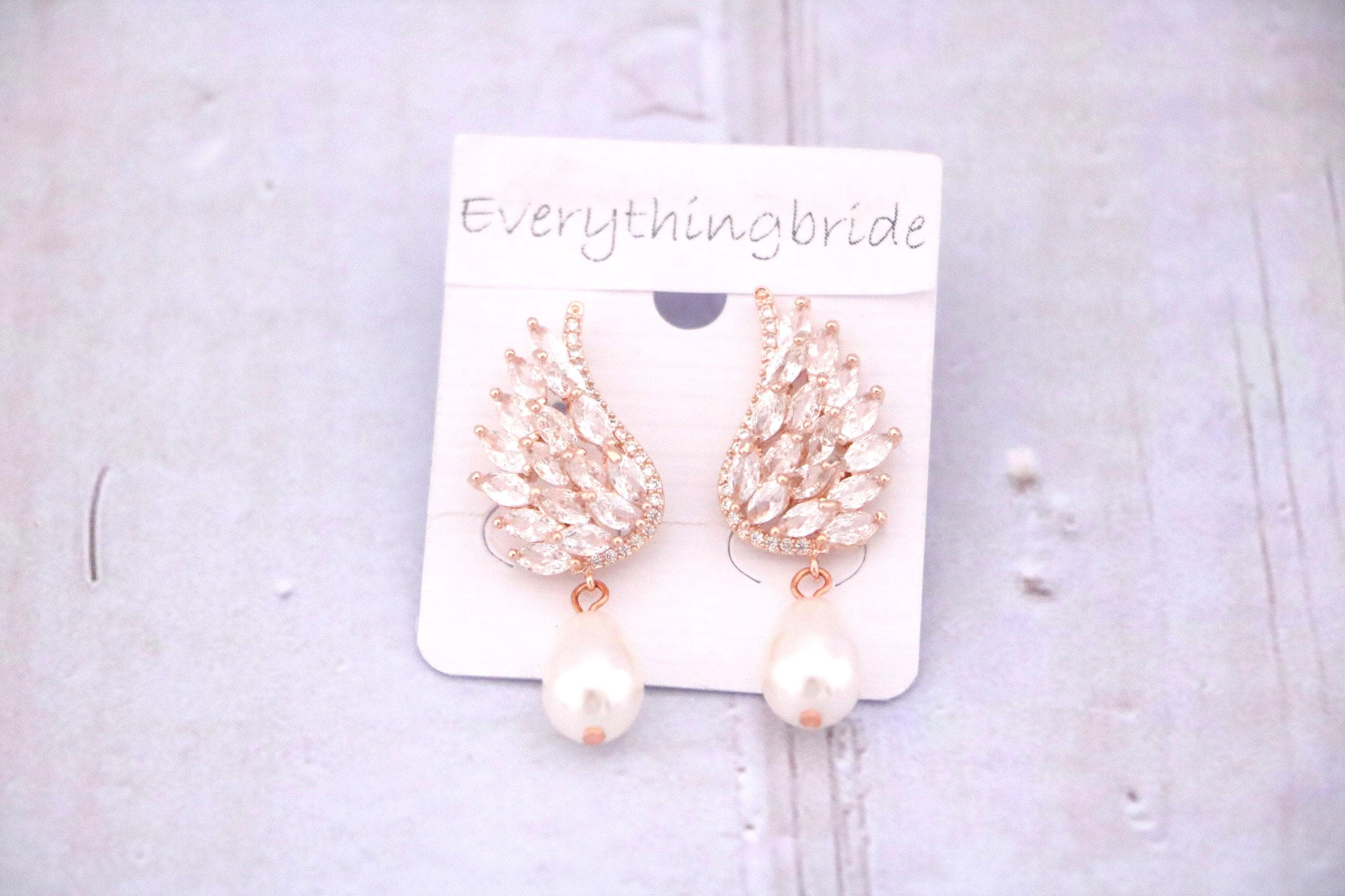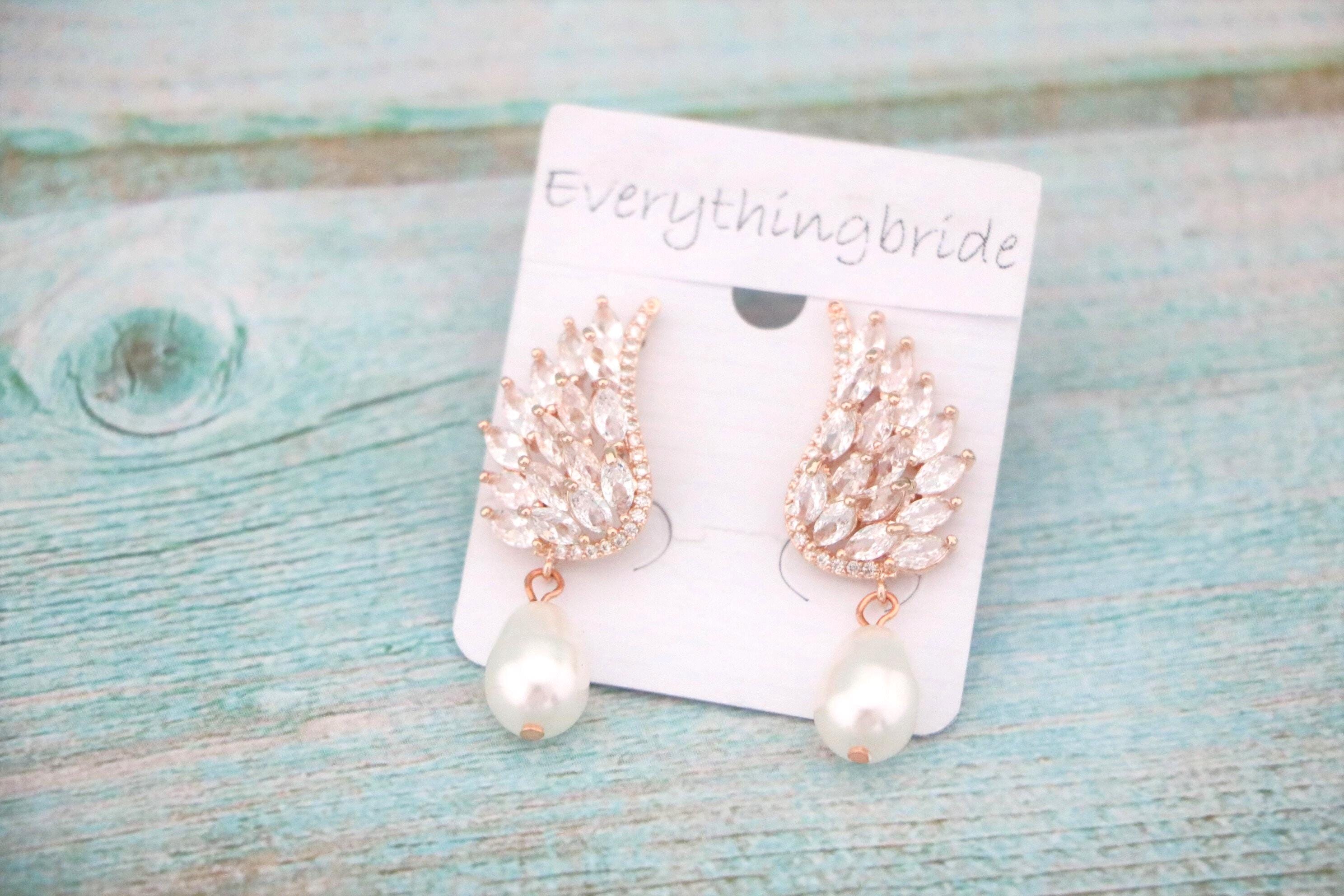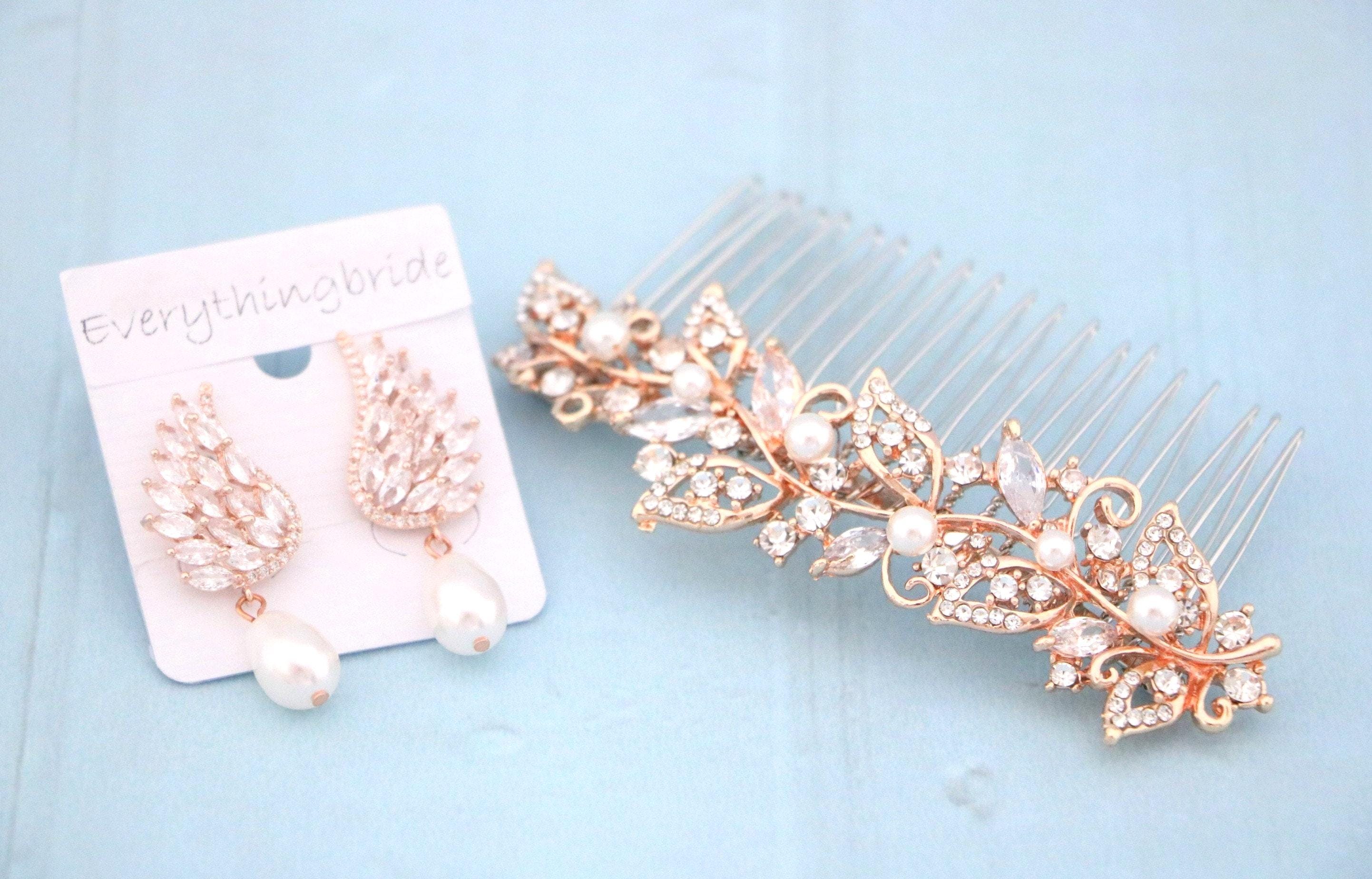 Pearl Bridal Earrings Crystal Bridal Halo Earrings Wedding Cubic Zirconia Earrings Pearl Crystal Earrings Bridal Swarovski Pearl Earrings Wedding hair comb Bridal hair piece Boho