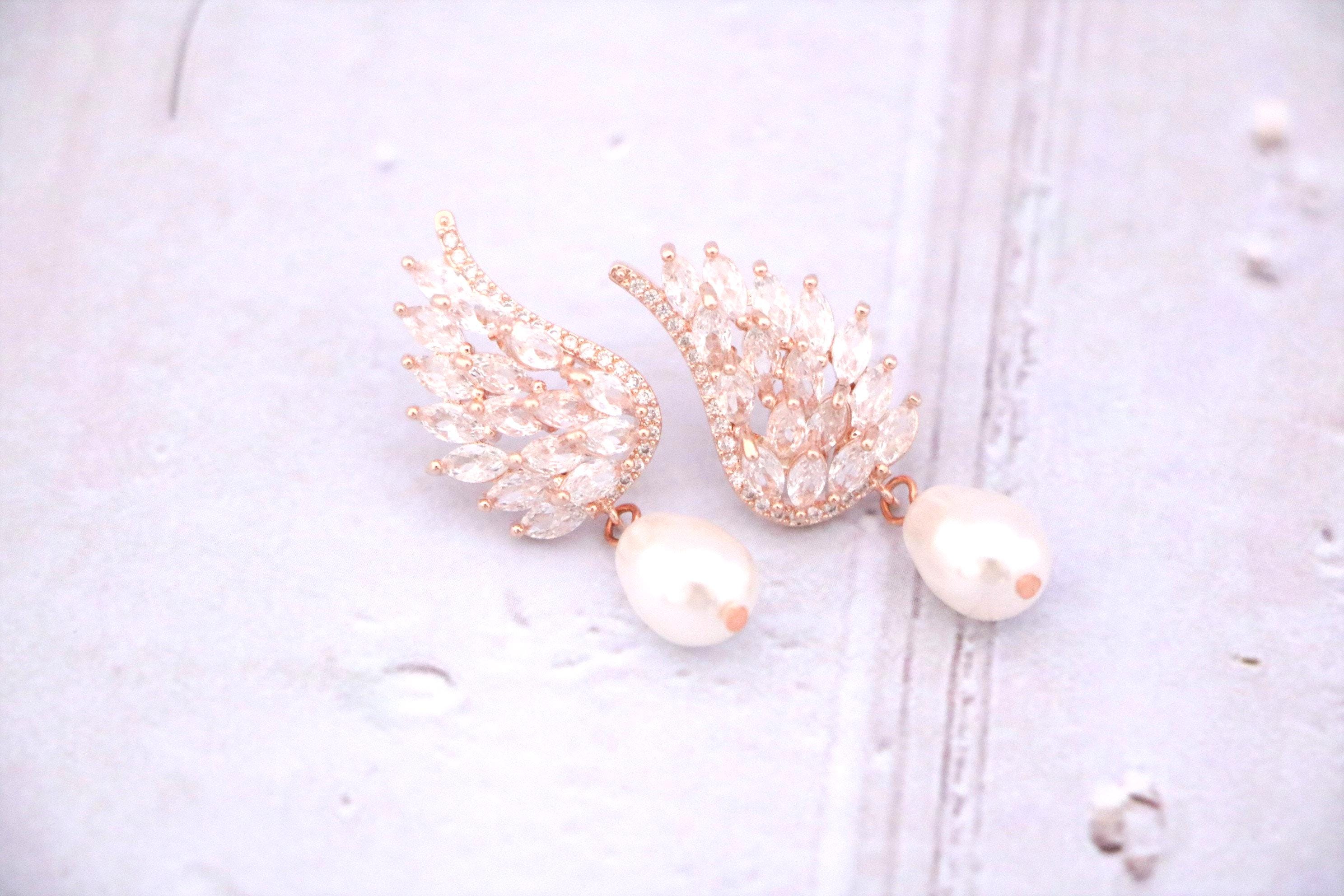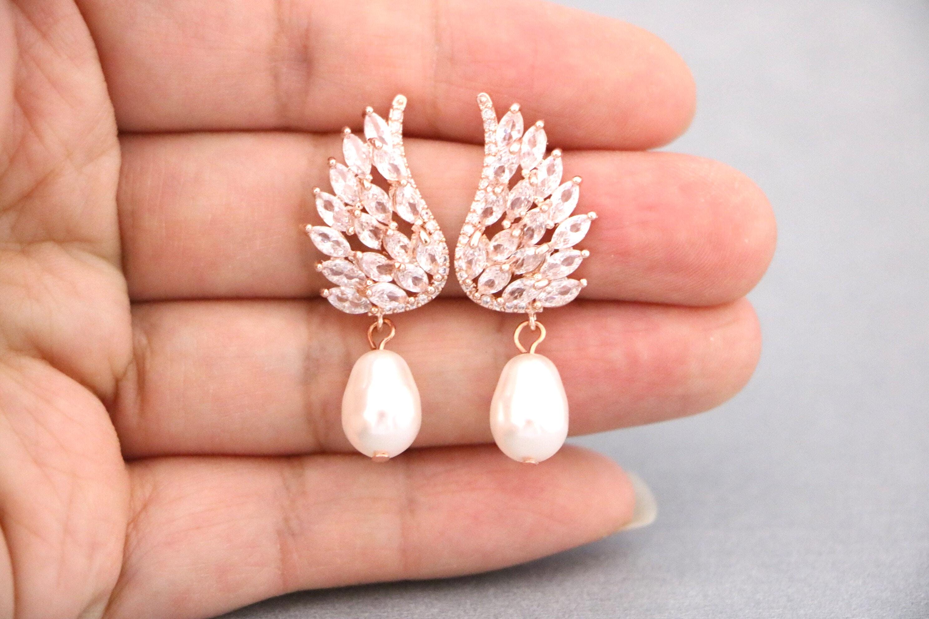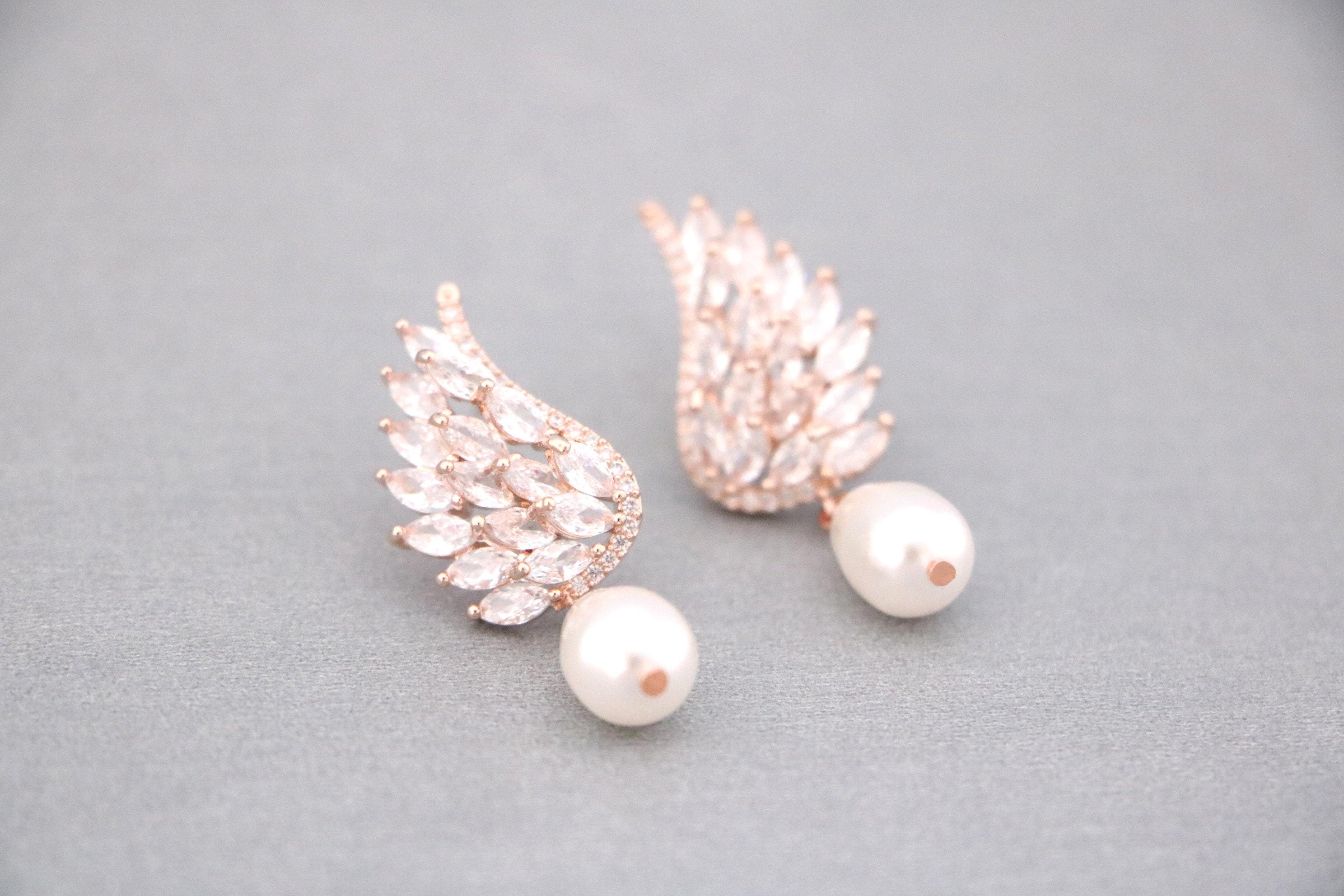 Pearl Bridal Earrings Crystal Bridal Halo Earrings Wedding Cubic Zirconia Earrings Pearl Crystal Earrings Bridal Swarovski Pearl Earrings Wedding hair comb Bridal hair piece Boho