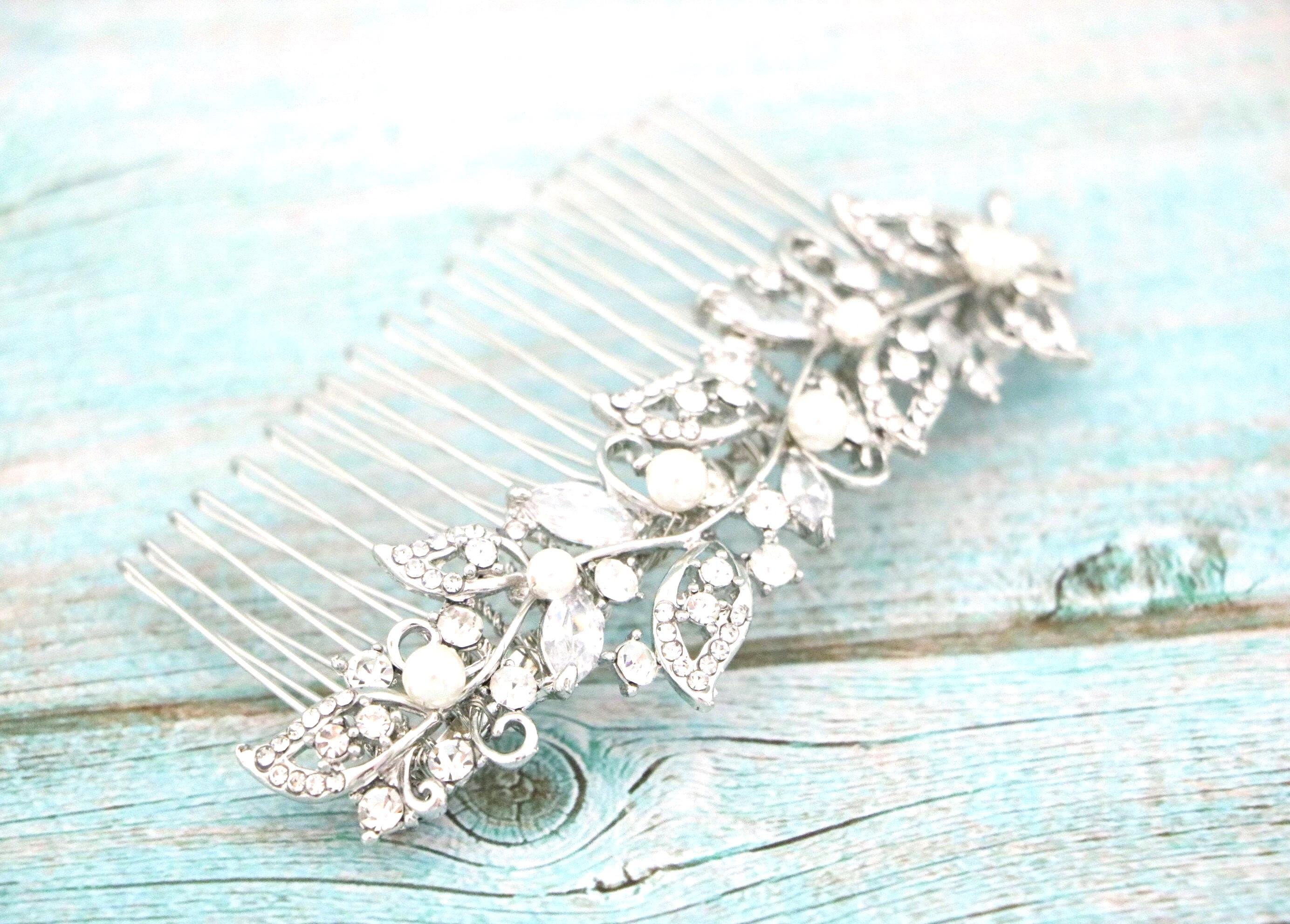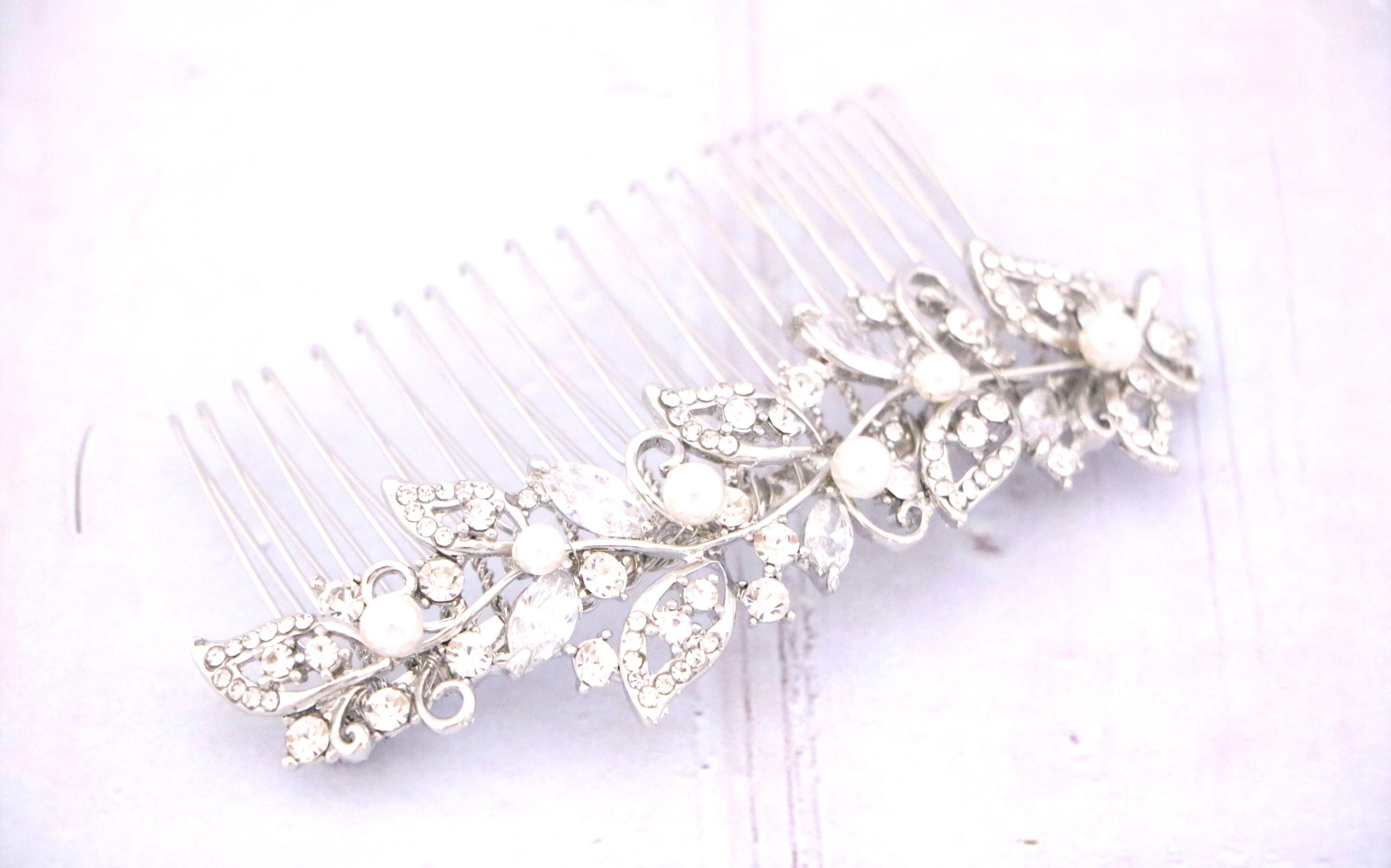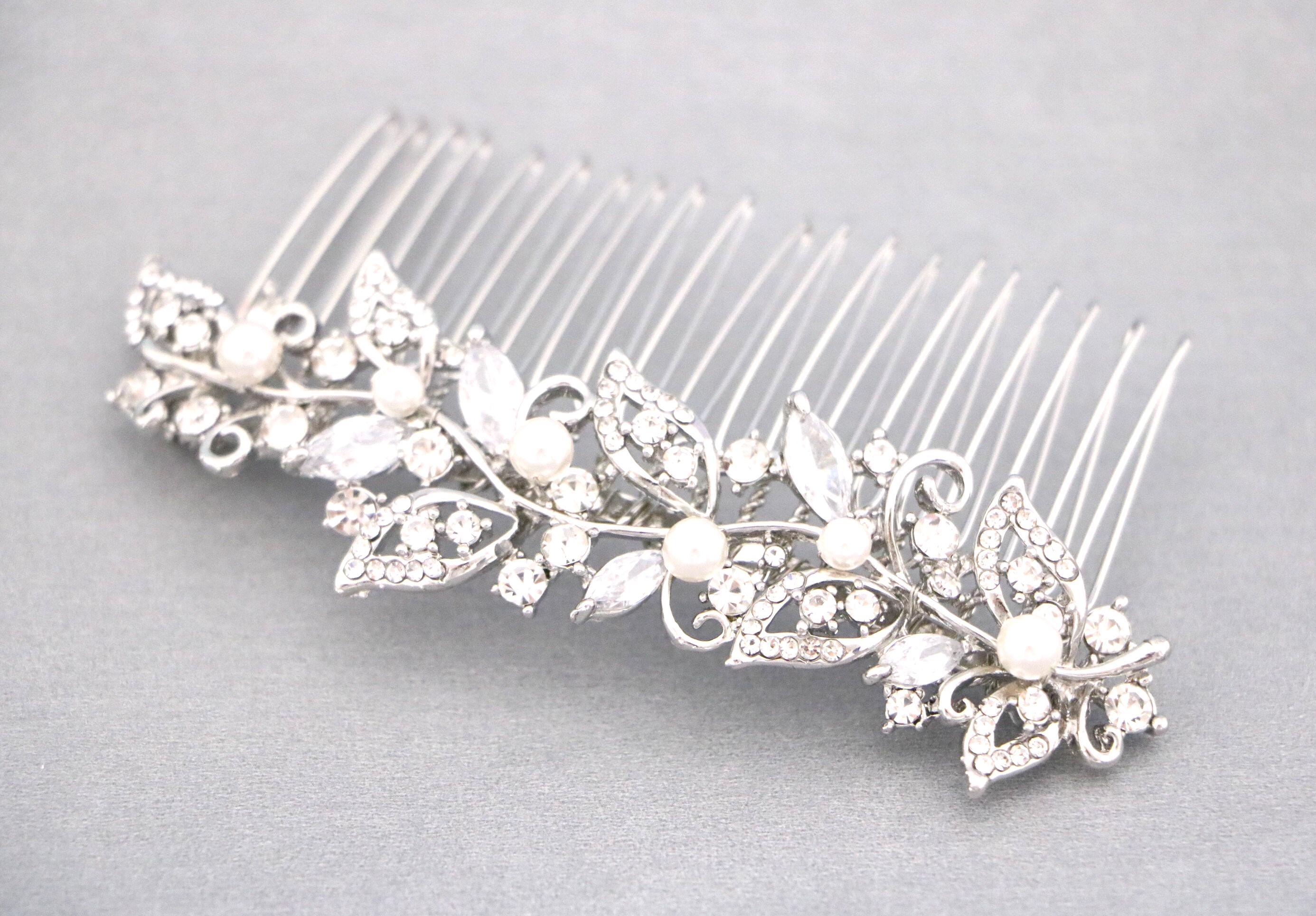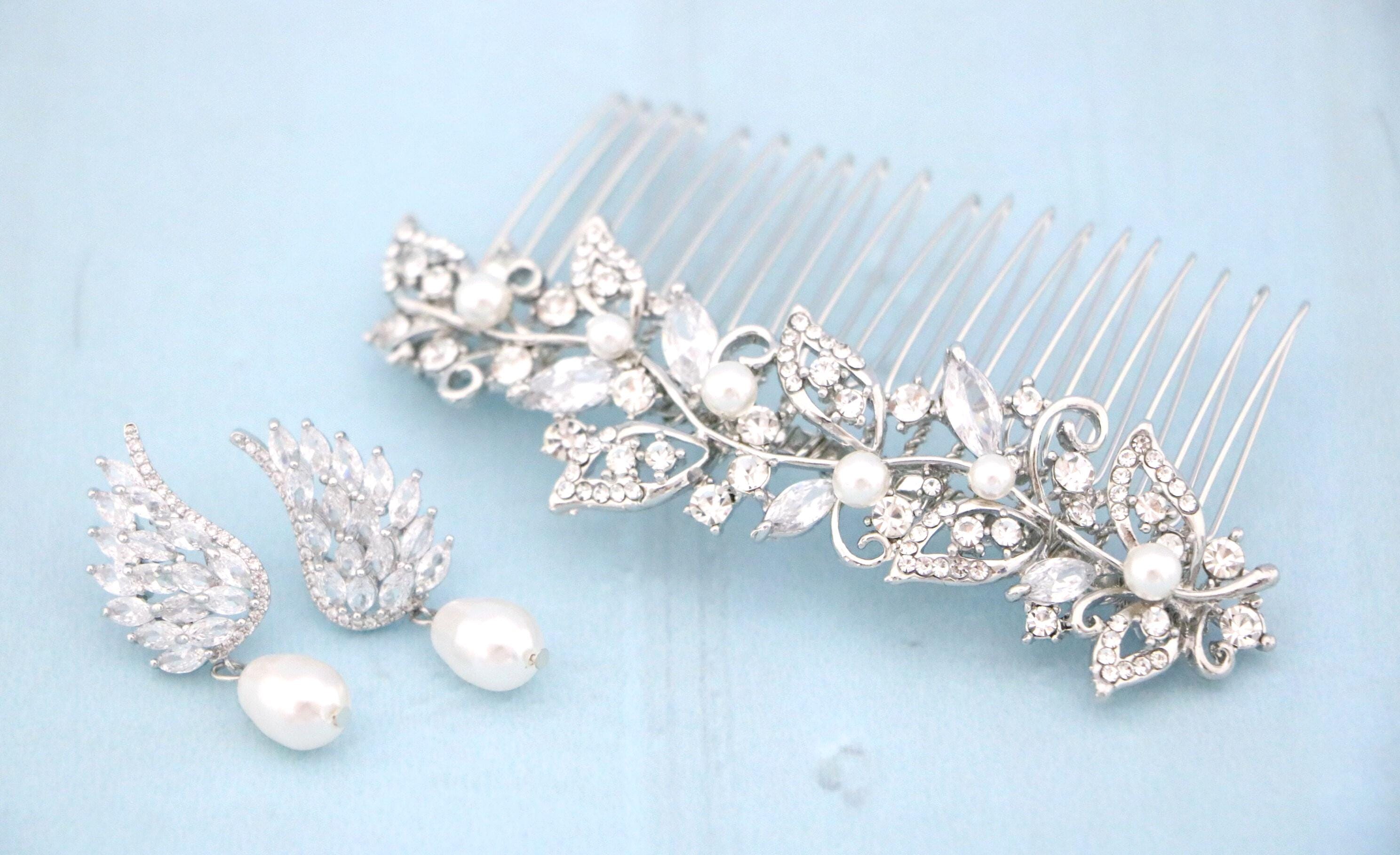 Crystal wedding comb, bridal crystal hair comb, bridal hair comb, wedding hair accessory, wedding comb, crystal comb Wedding earrings pearl drop Bridal earrings