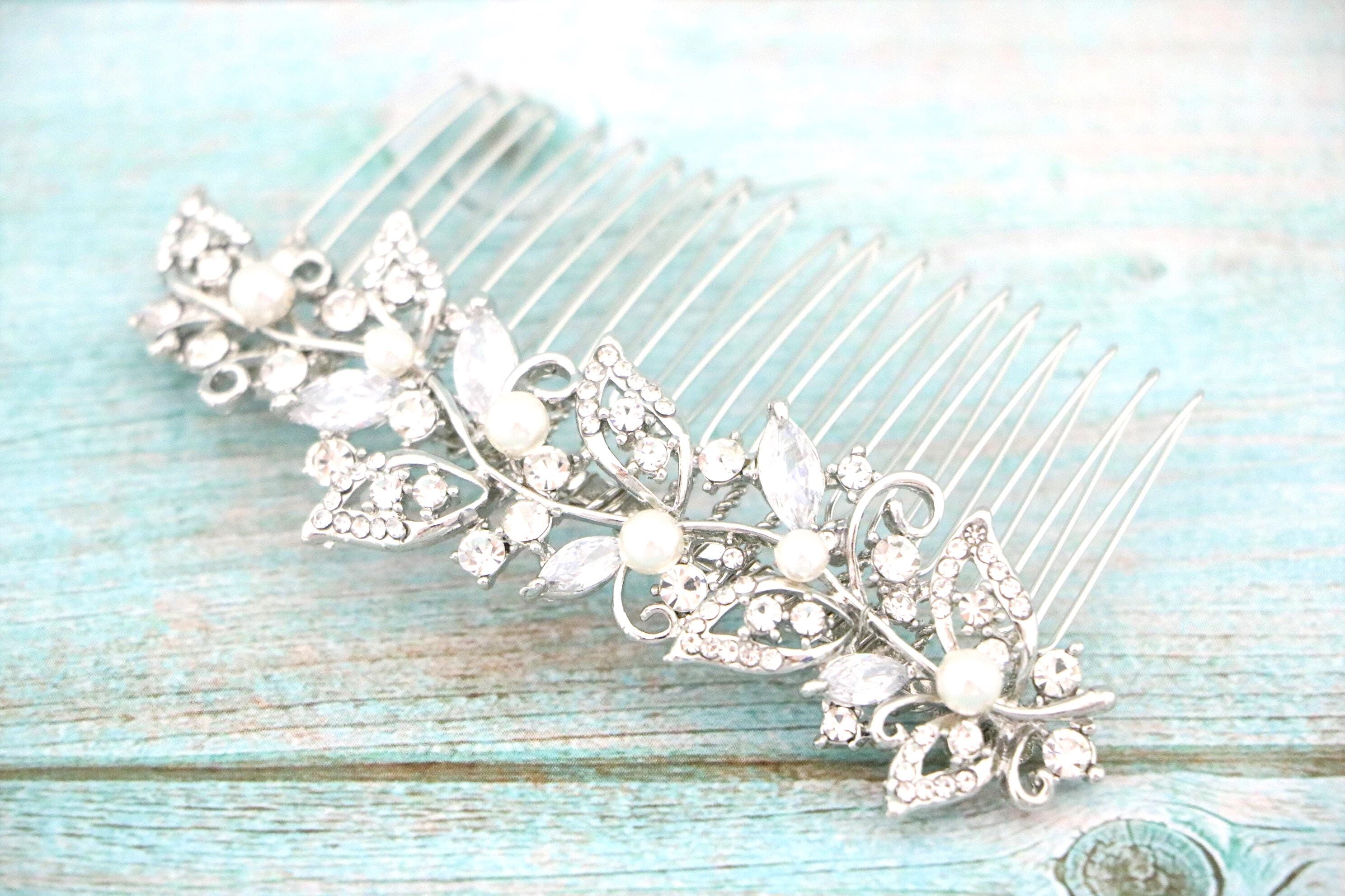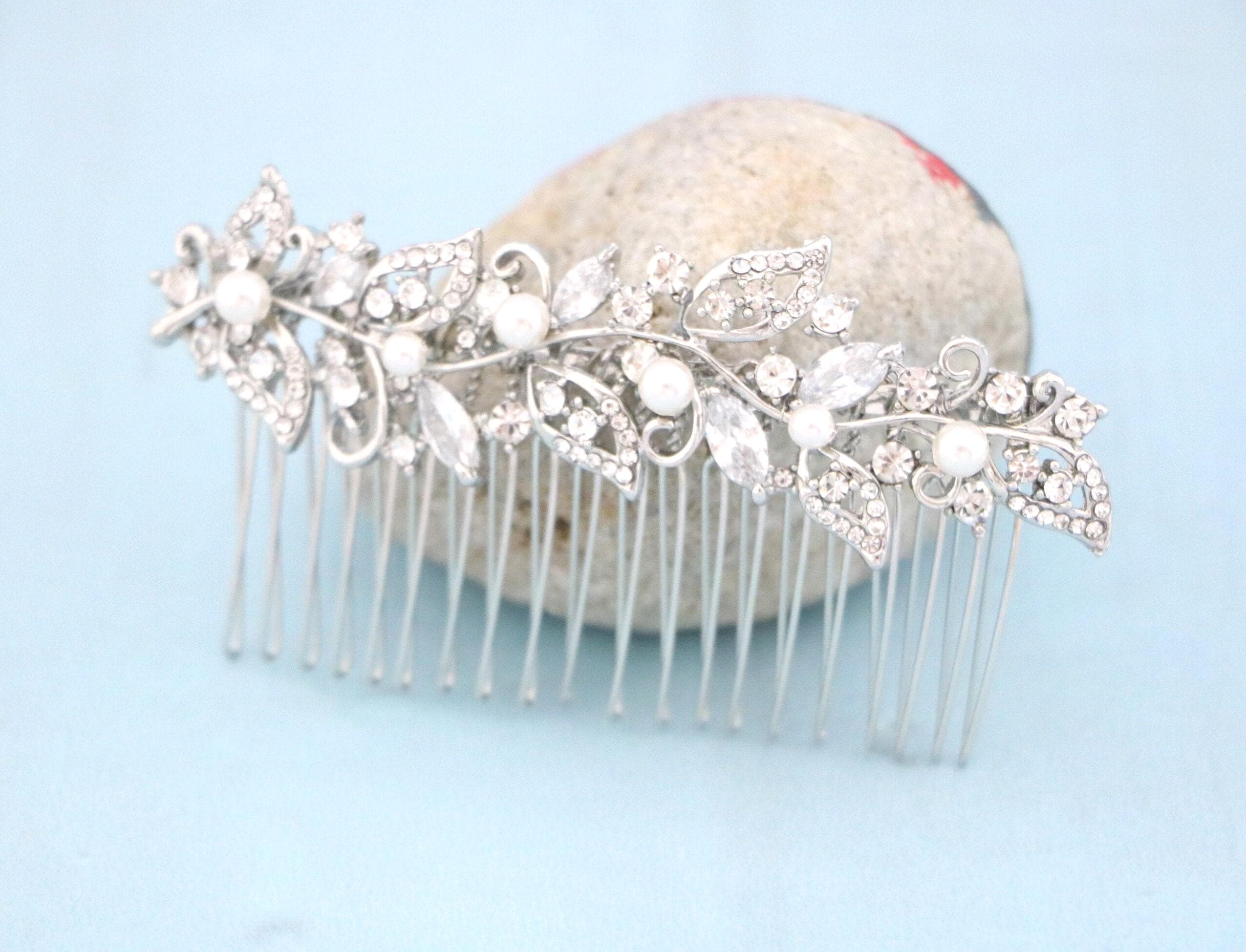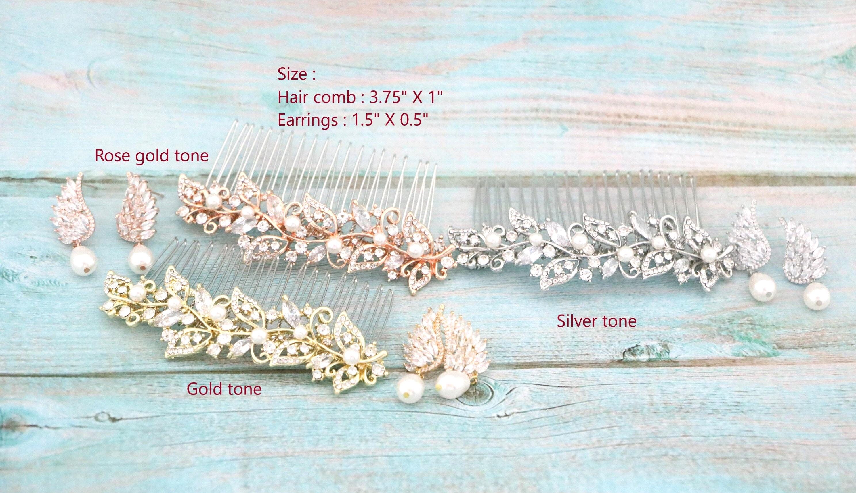 Hair comb : The rhinestone part measures approximately 3.75 X 1 inches.