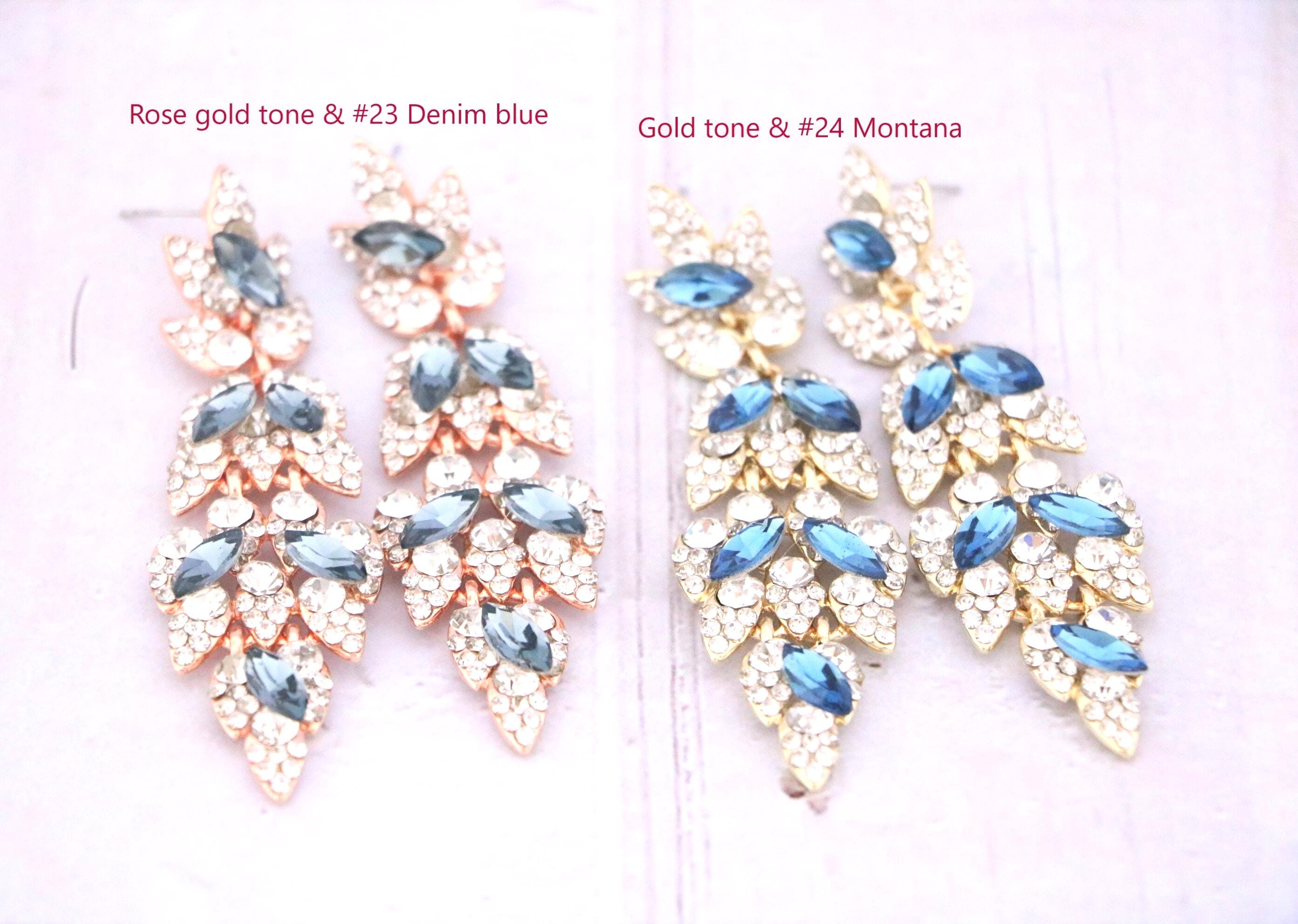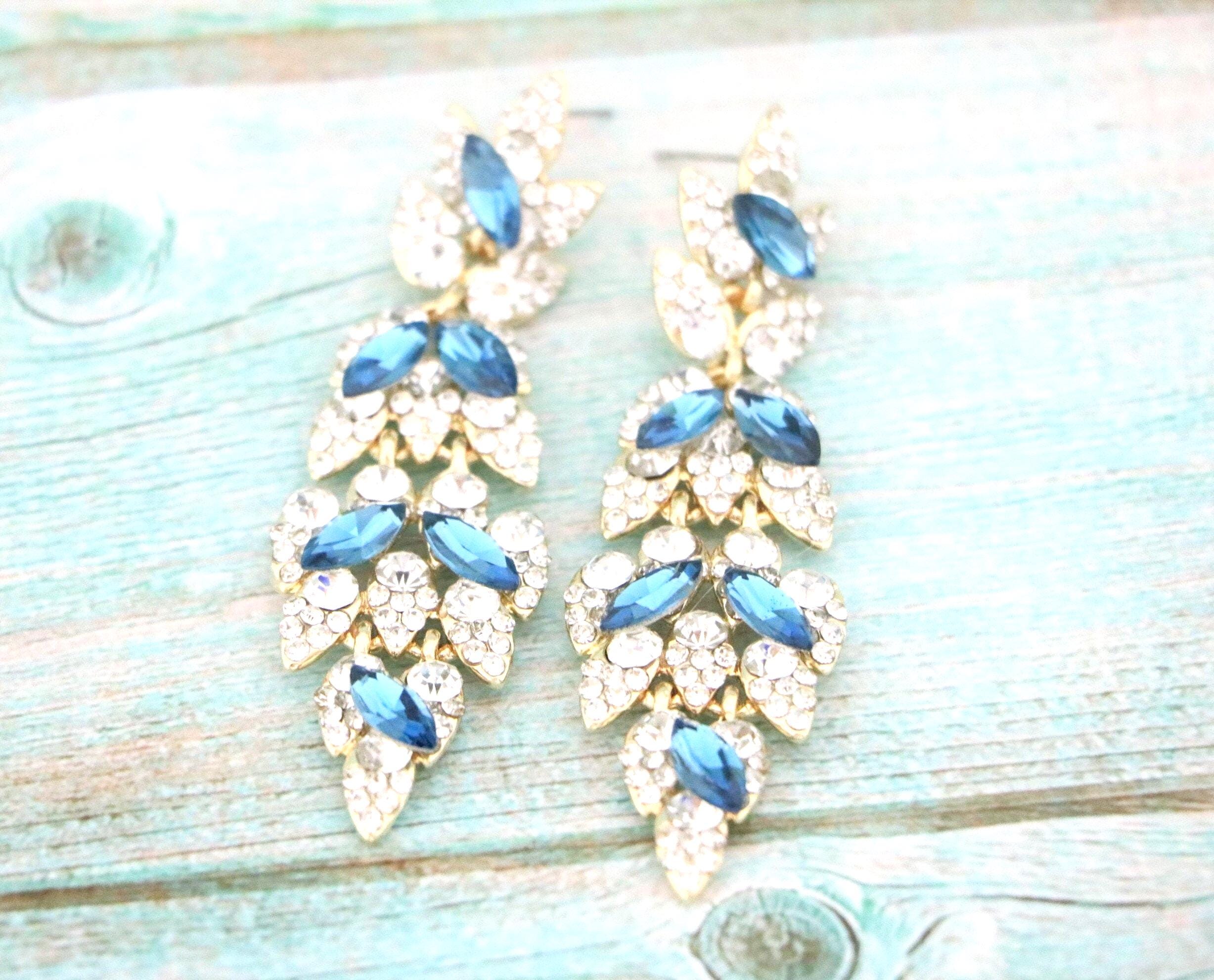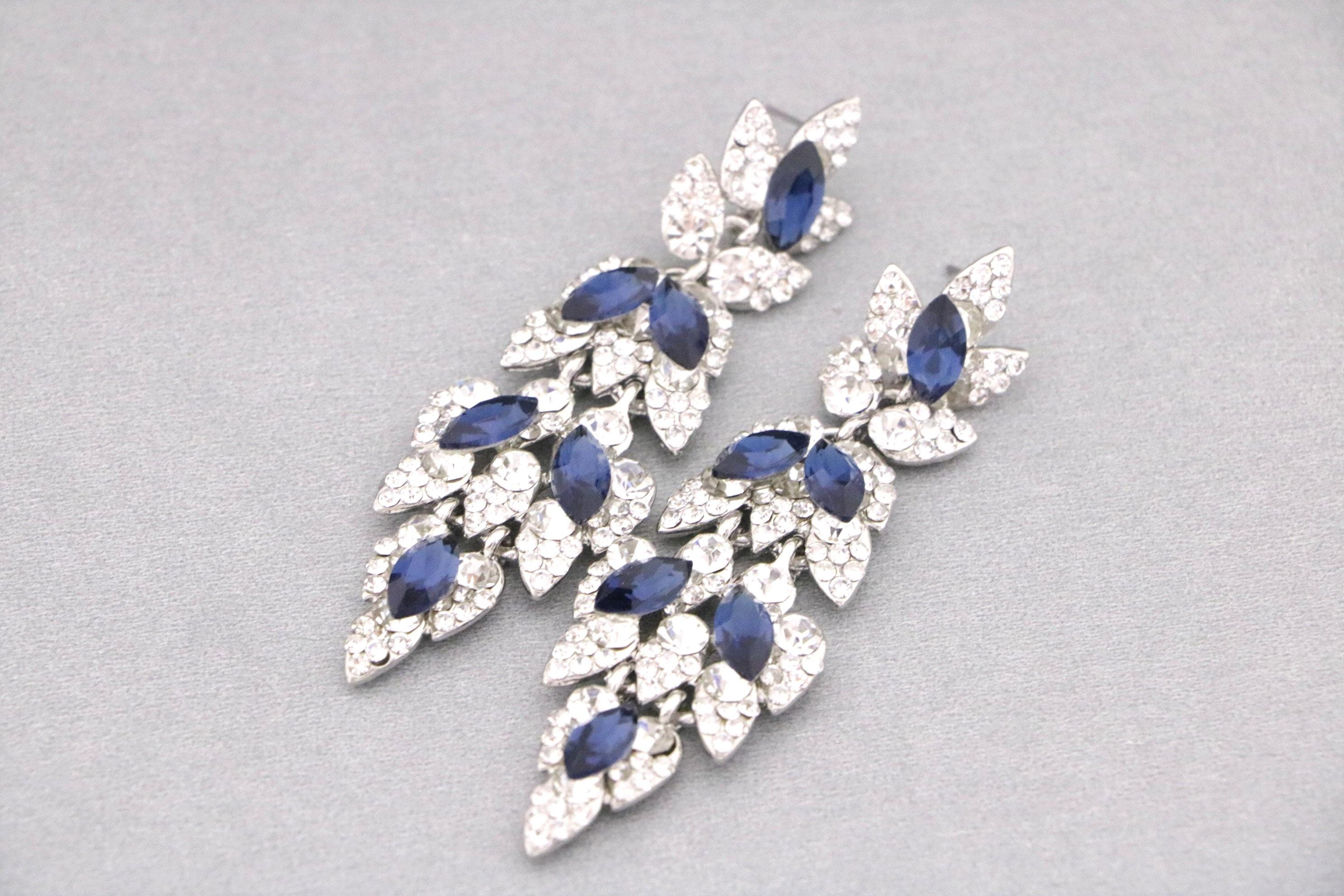 Navy blue earrings, crystal earrings, cluster earrings, bridal something blue earrings, bridesmaid gift, dark blue
