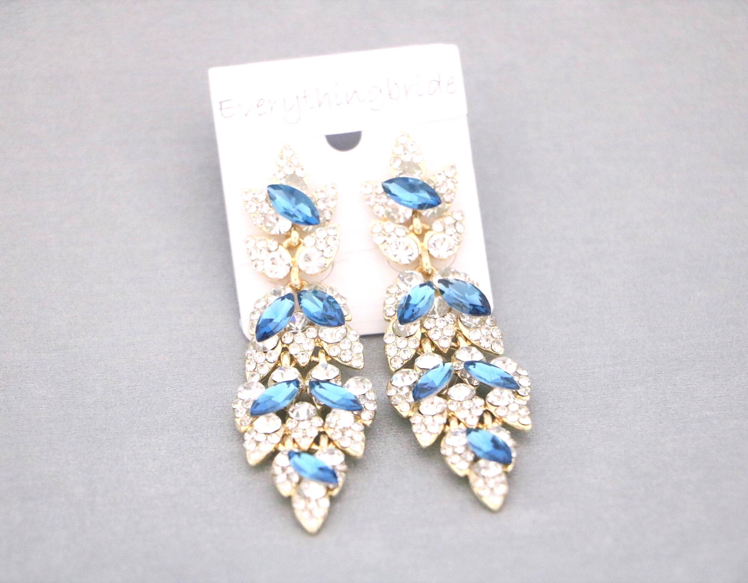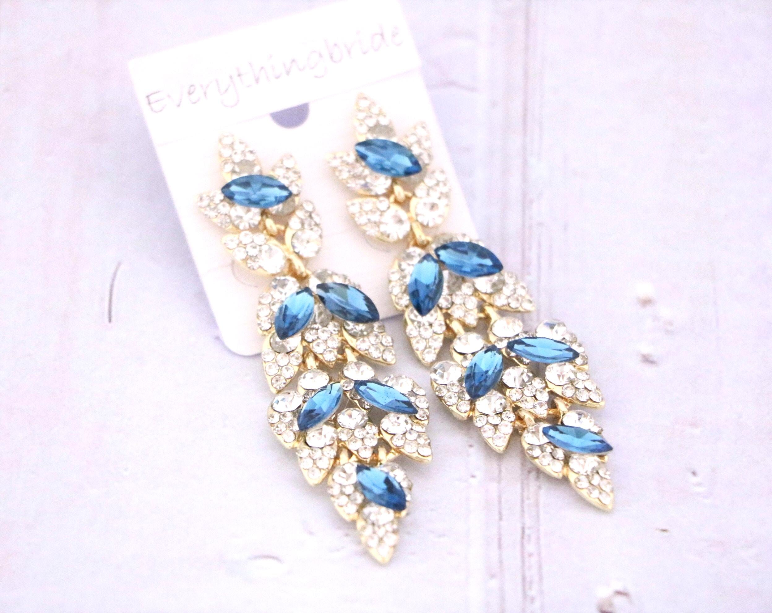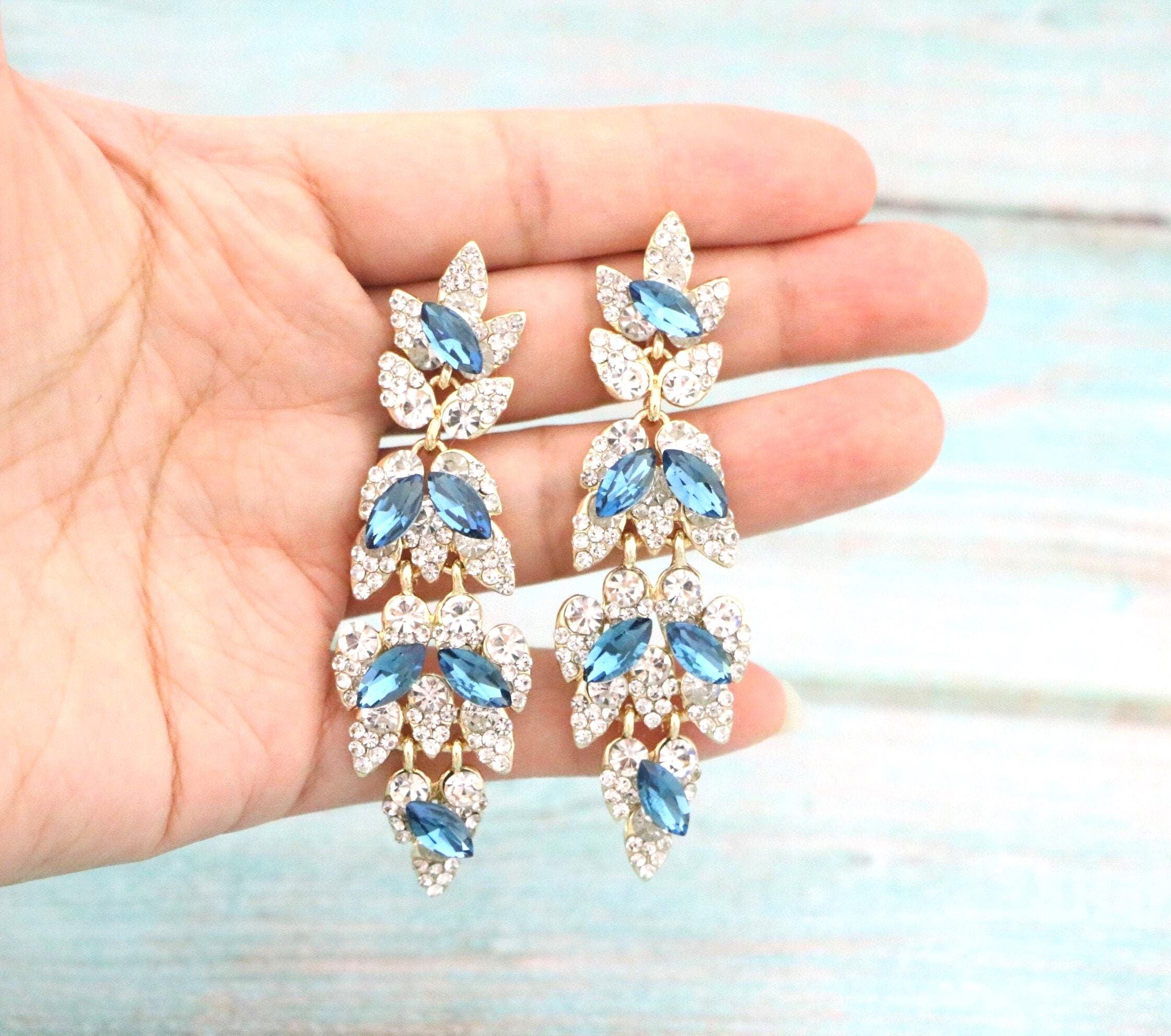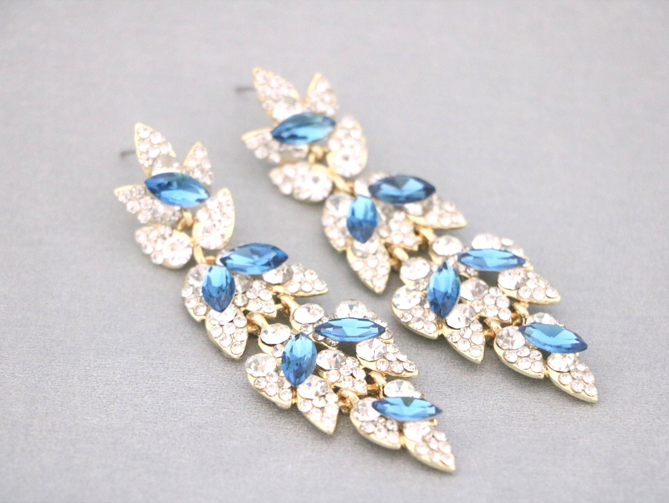 Navy blue earrings, crystal earrings, cluster earrings, bridal something blue earrings, bridesmaid gift, dark blue