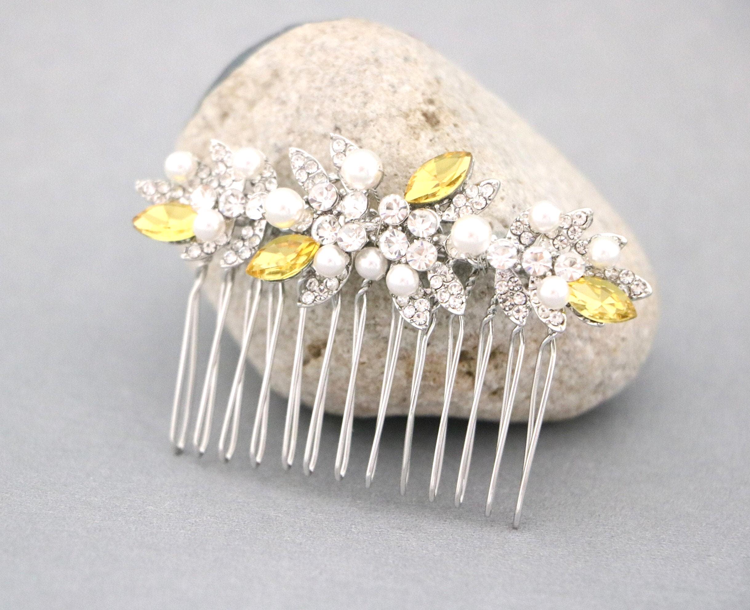 This beautiful Clear rhinestone and Montana Crystal hair comb is a perfect compliment for the wedding party and can easily fit into any hair style. The Rhinestone part measured approximately 2.75 X 1 inches.
