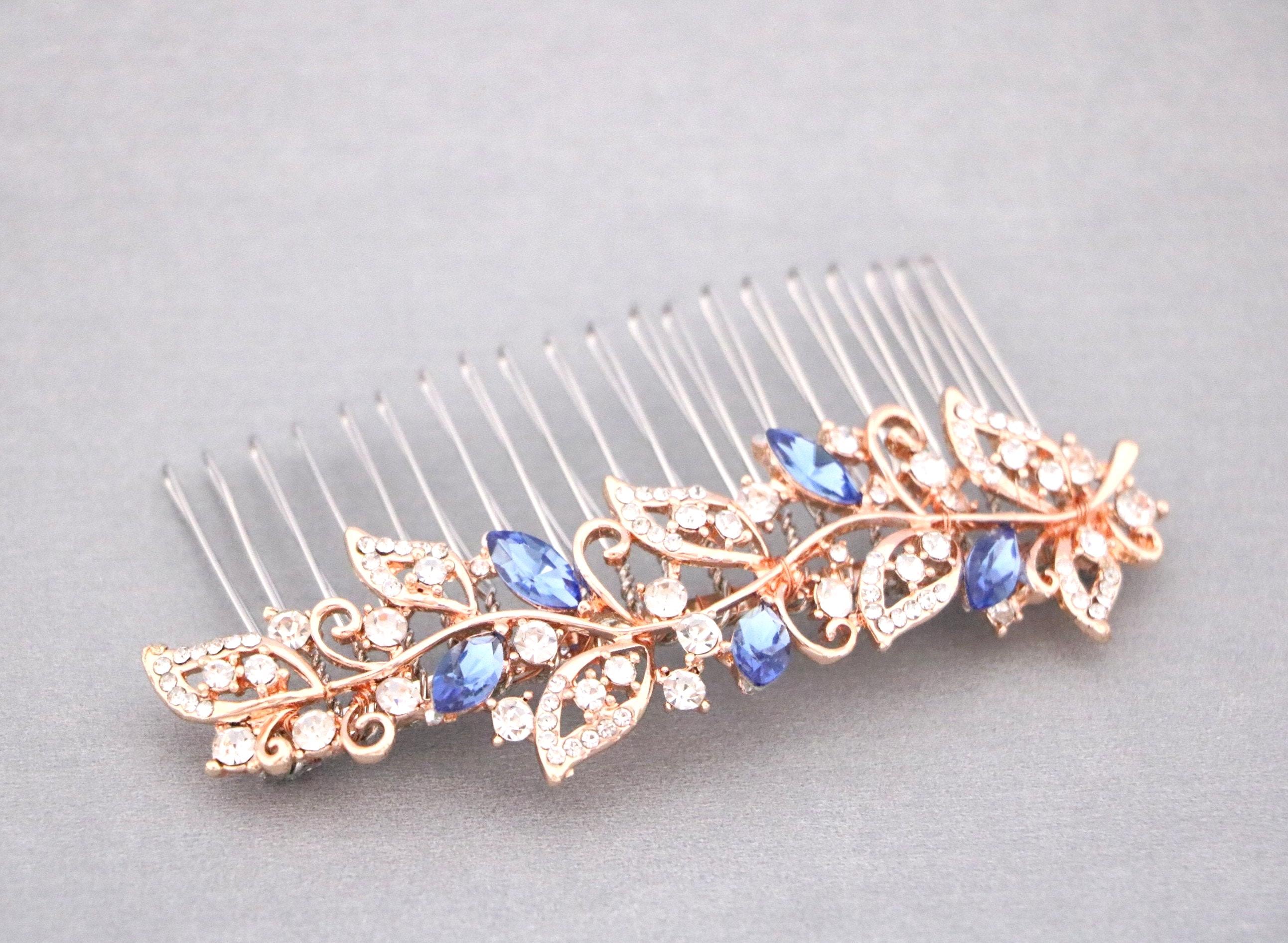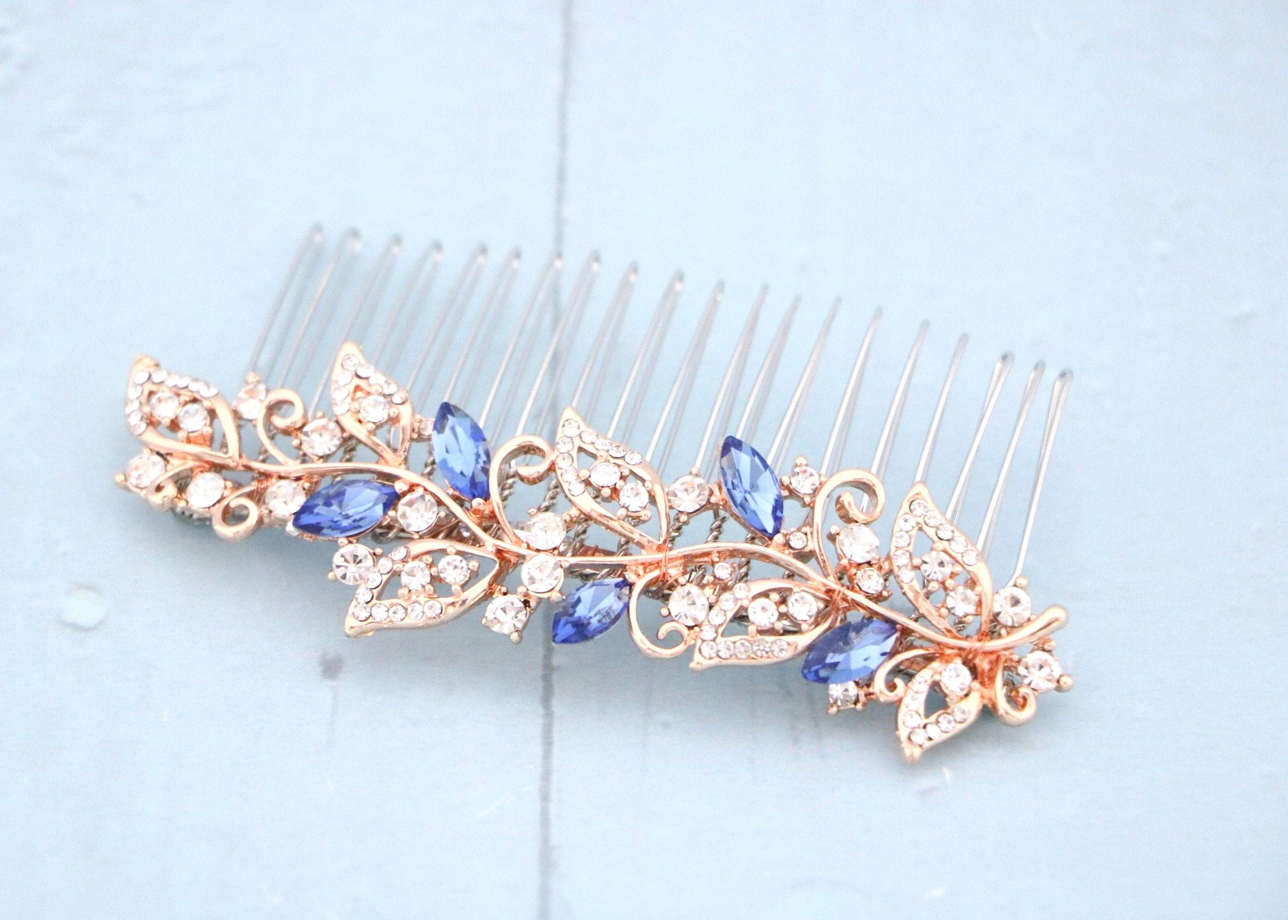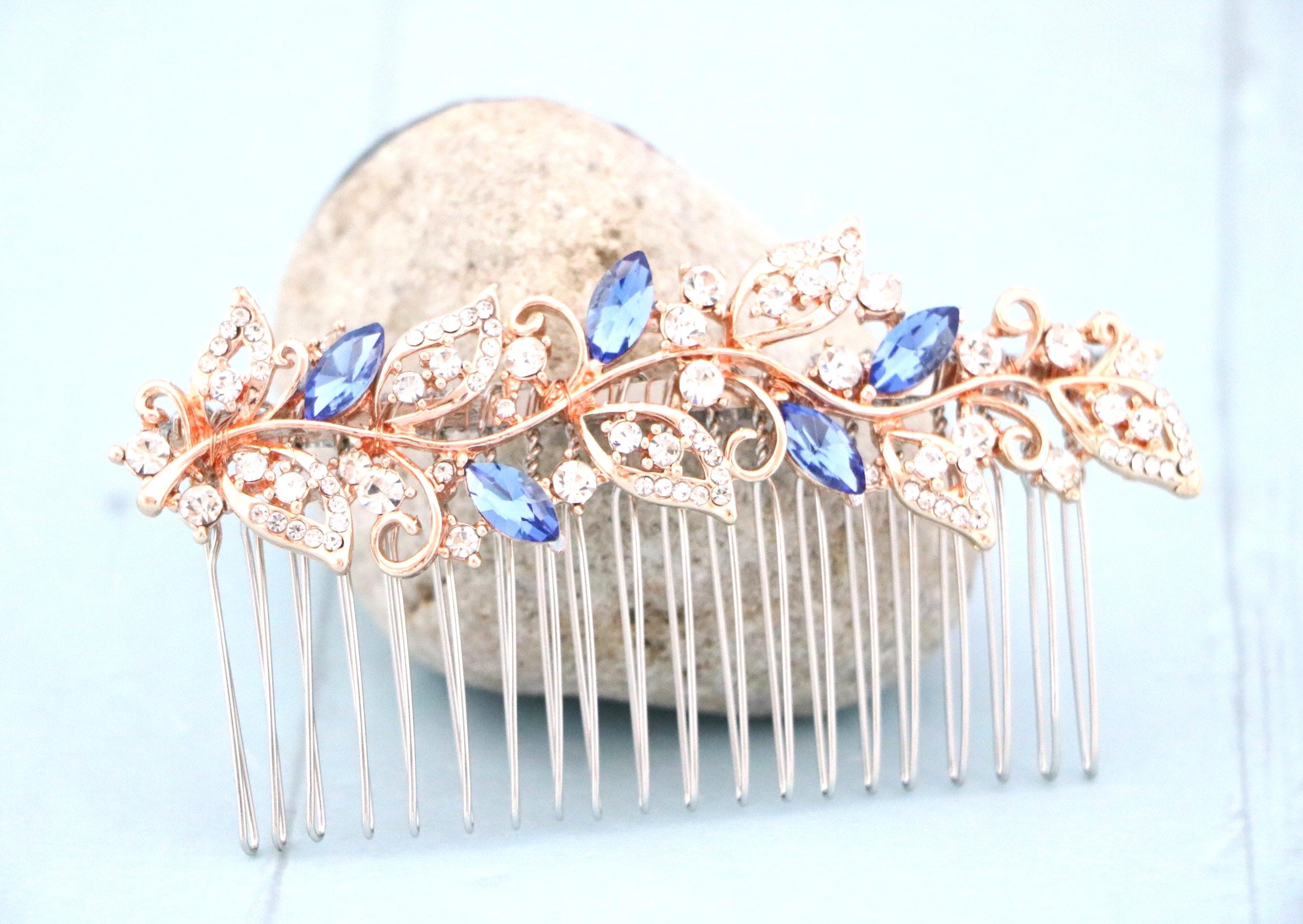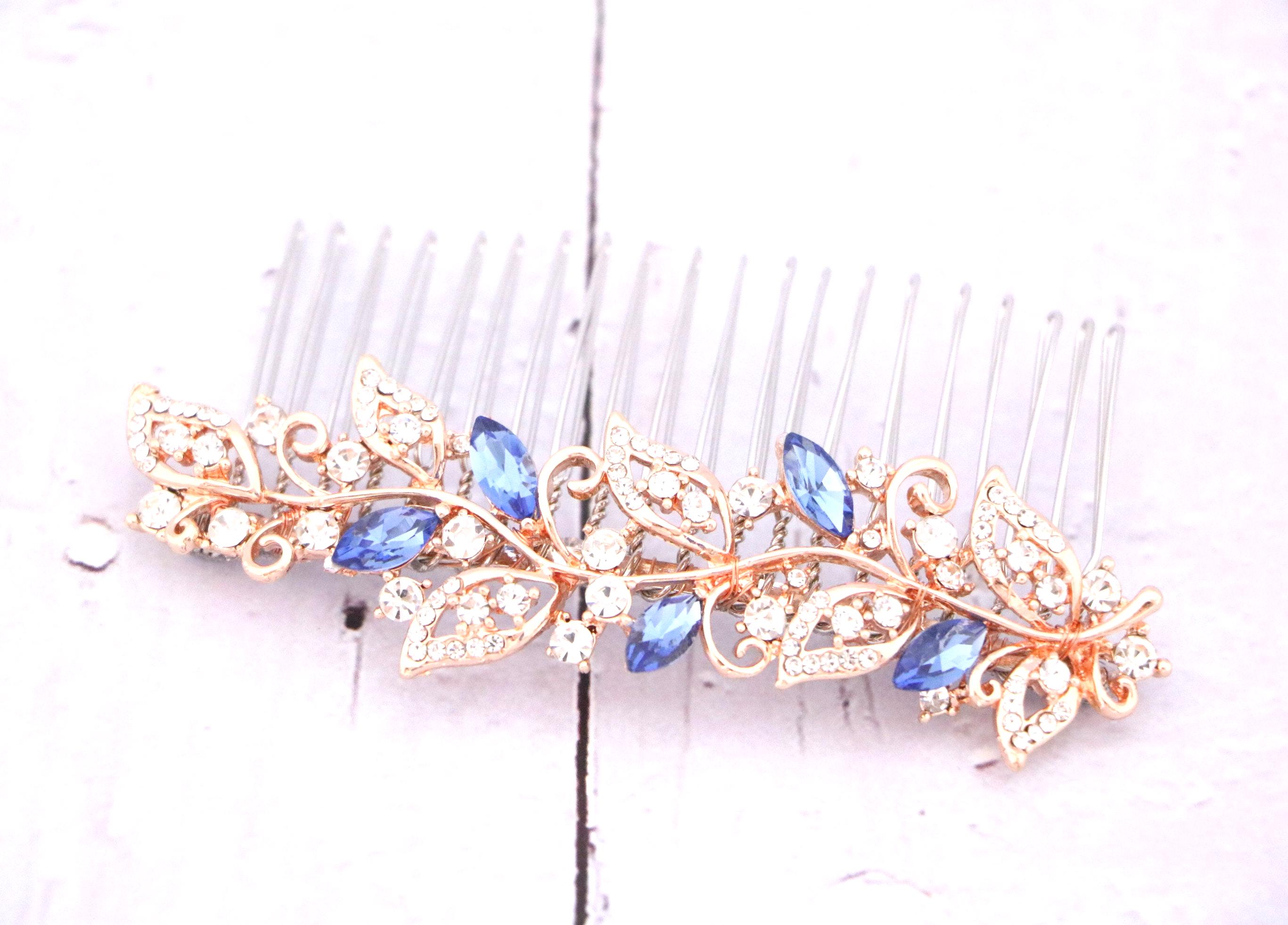 Blue bridal hair comb Something blue hair comb Sapphire blue Crystal hair comb Royal blue wedding Rhinestone hair comb Navy blue hair piece