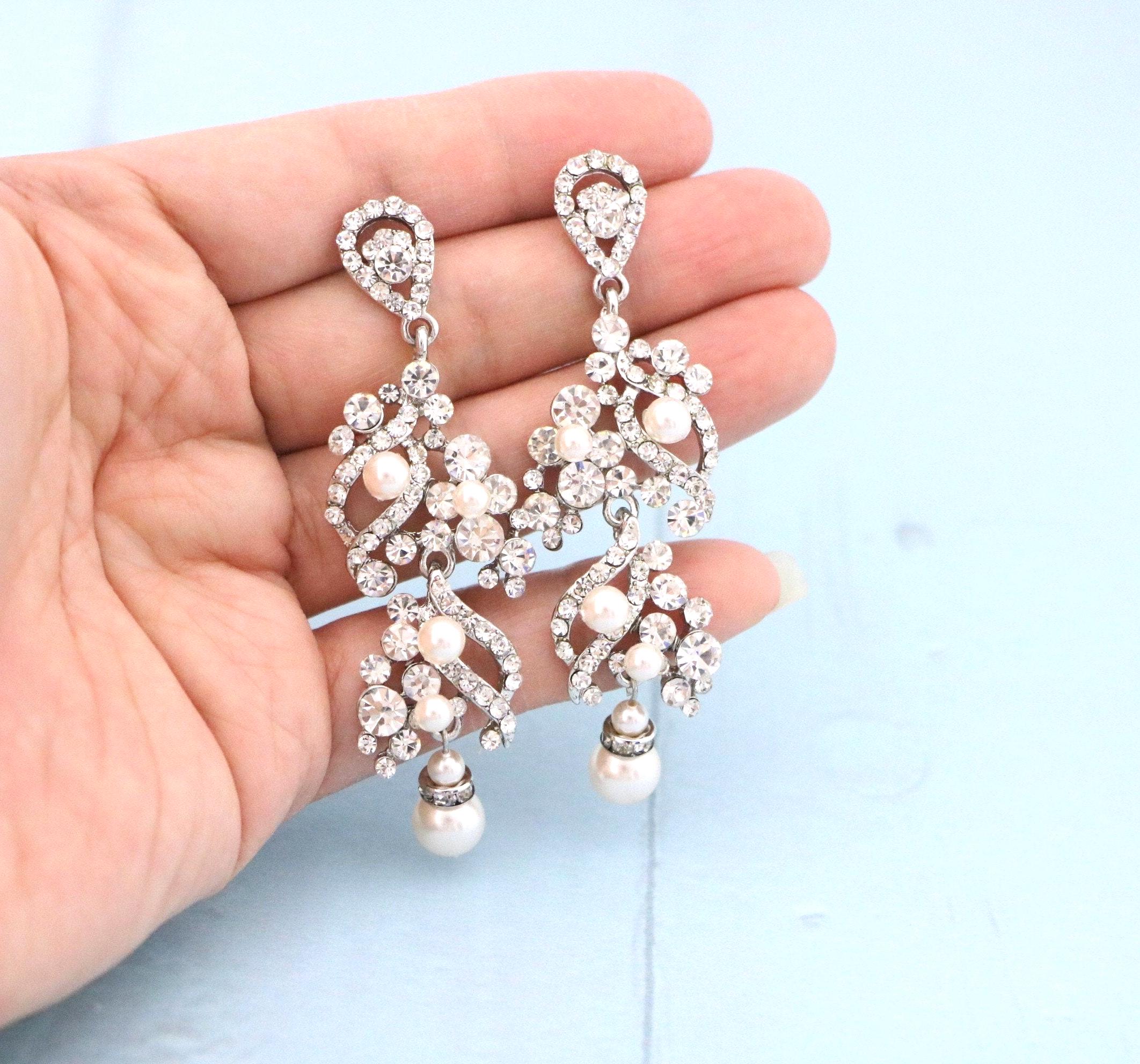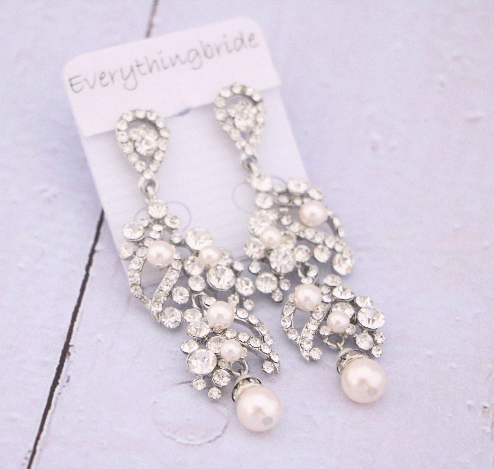 This vintage inspired stunning Pearl and Rhinestone earring is beautiful addition to your wedding day.
