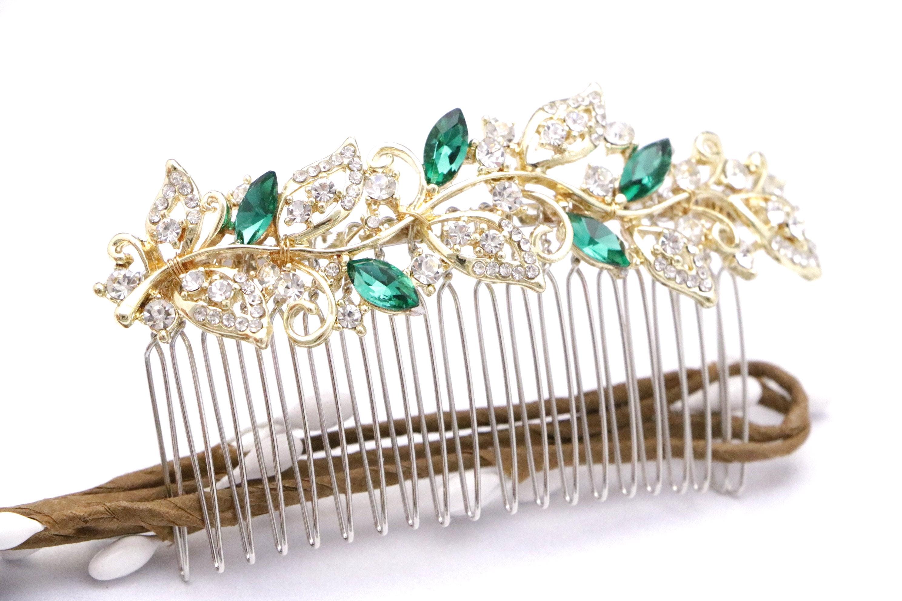This sparkle rhinestone hair comb features a very beautiful vintage style rhinestone piece. Rhinestone piece can set on a metal barrette or on a metal hair comb. The rhinestone part measures approximately 3.75 X 1 inches.