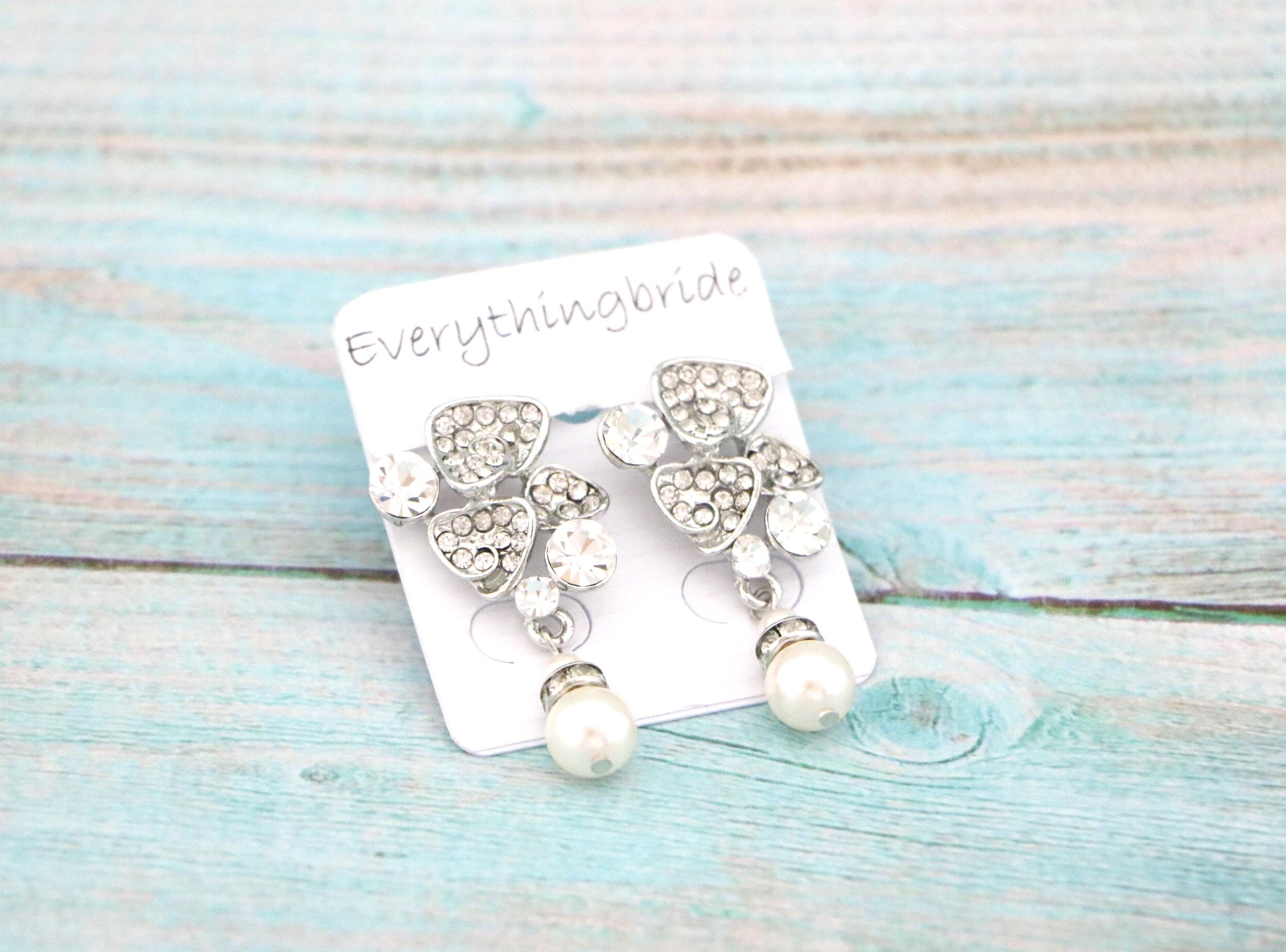 This vintage inspired stunning Pearl and Rhinestone earring is beautiful addition to your wedding day.