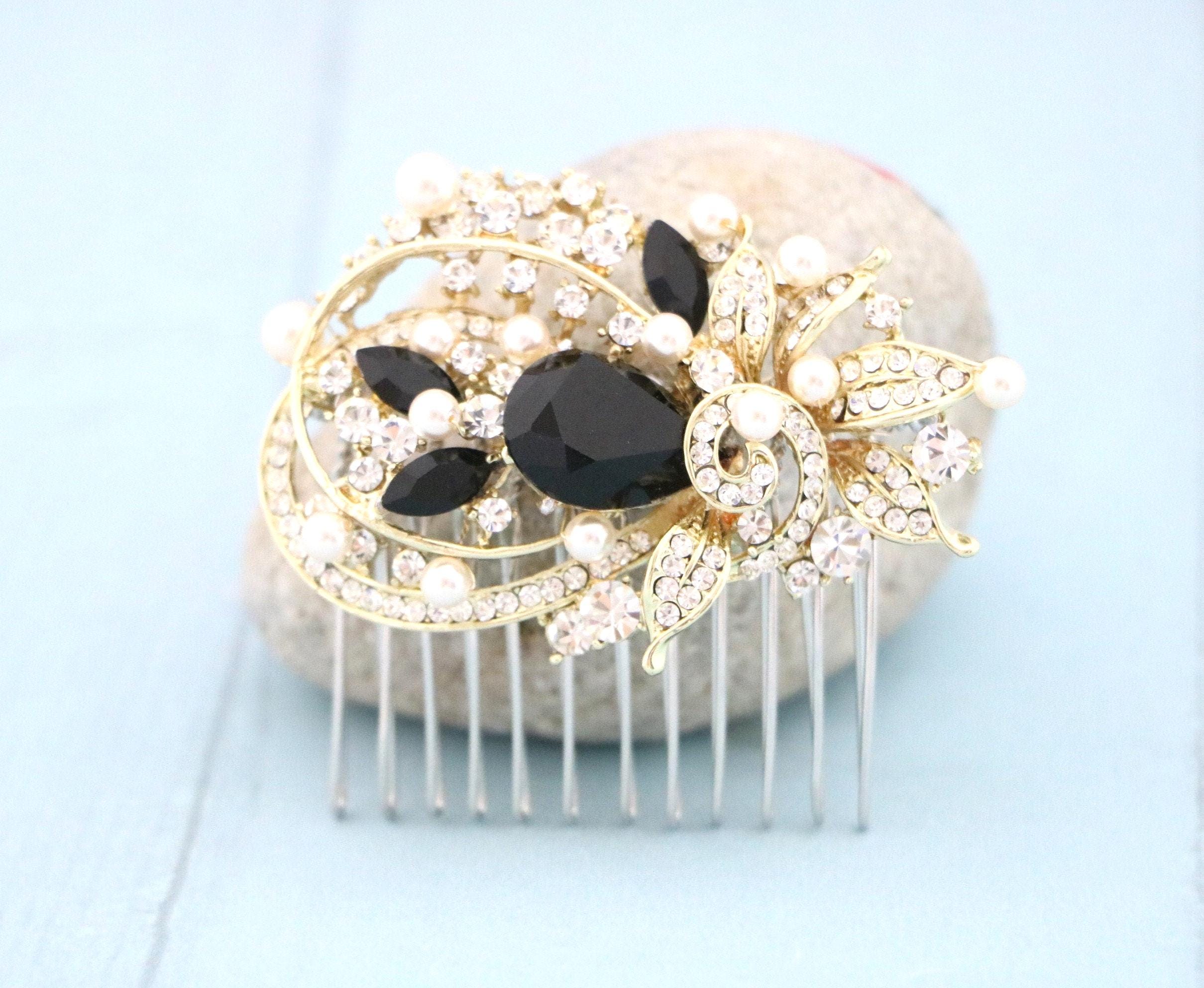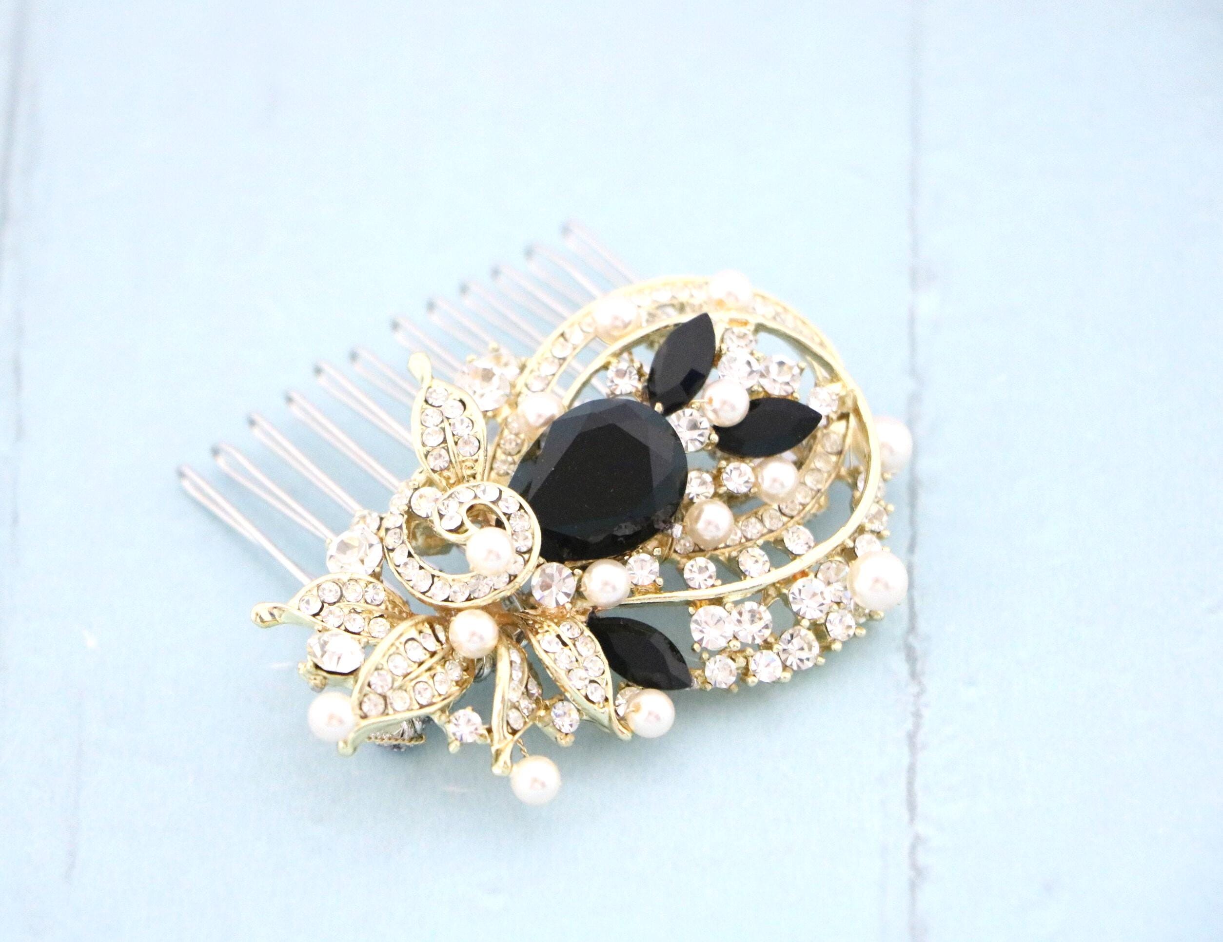 Bridal Hair Comb Gold Plate Black Gold Bridal Headpiece Rhinestone Bridal Hair Comb Weddings