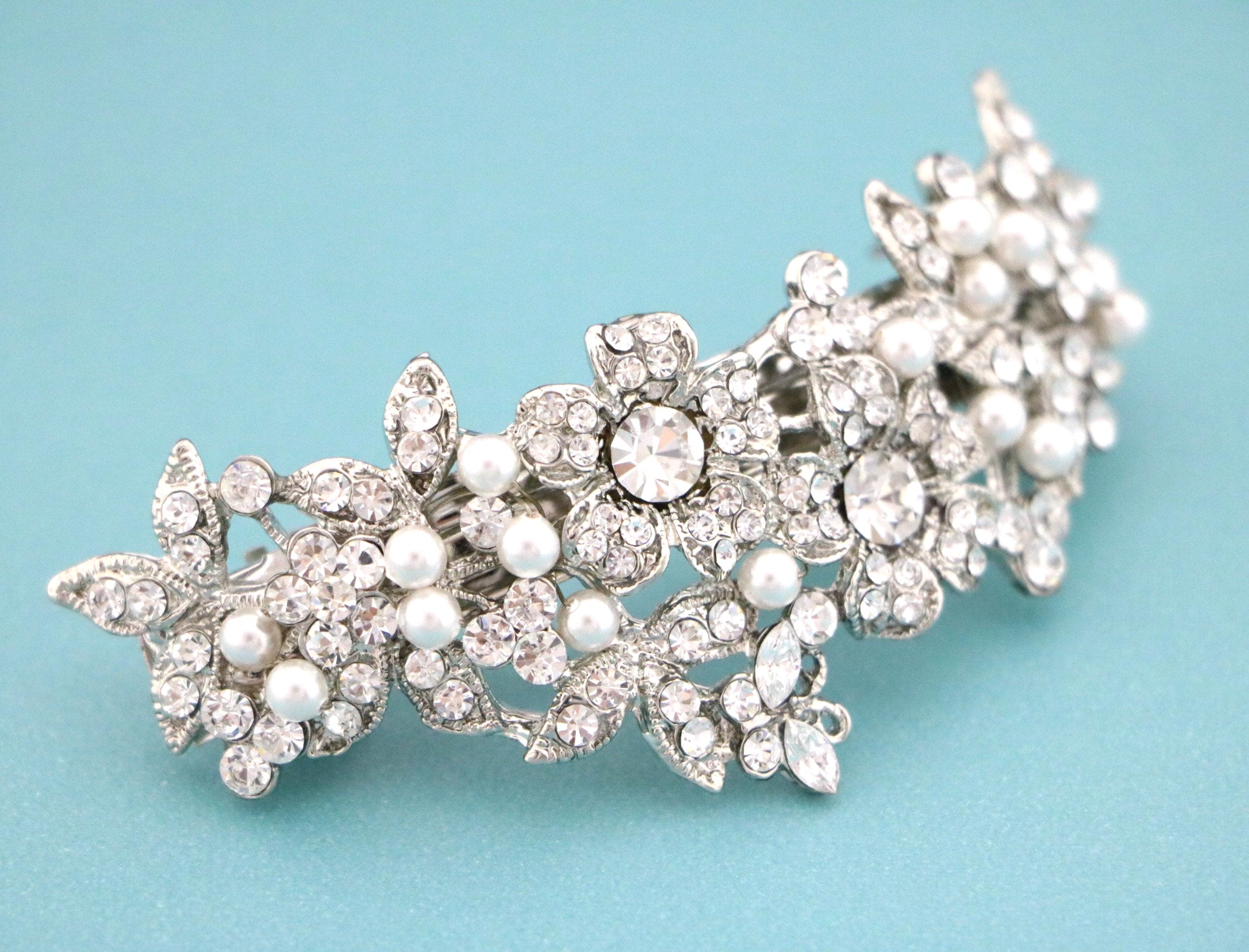 Bridal Rhinestone Crystal Barrette, Bridal Comb Crystal, Wedding Crystal Hair Comb, Hair Barrette, Wedding Accessory,Barrette Clip, Wedding hair comb,Swarovski pearl hair comb hair clip