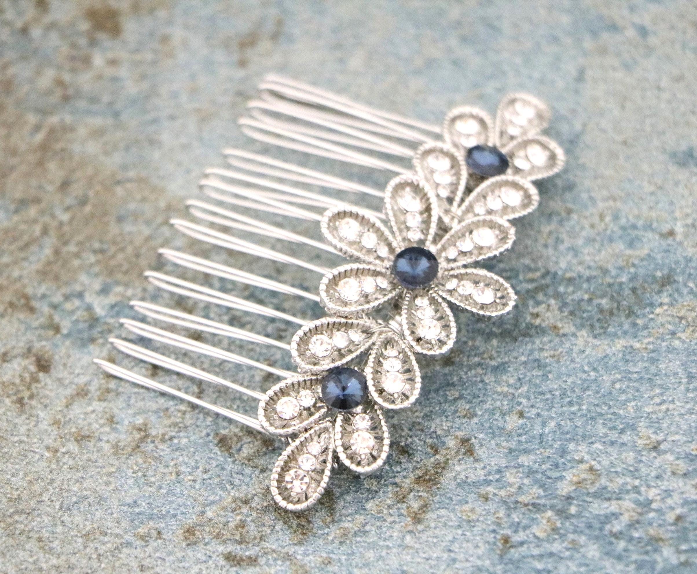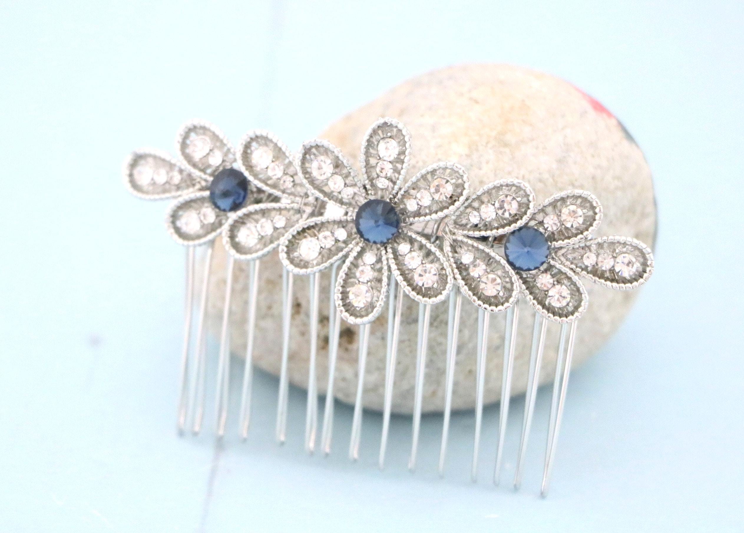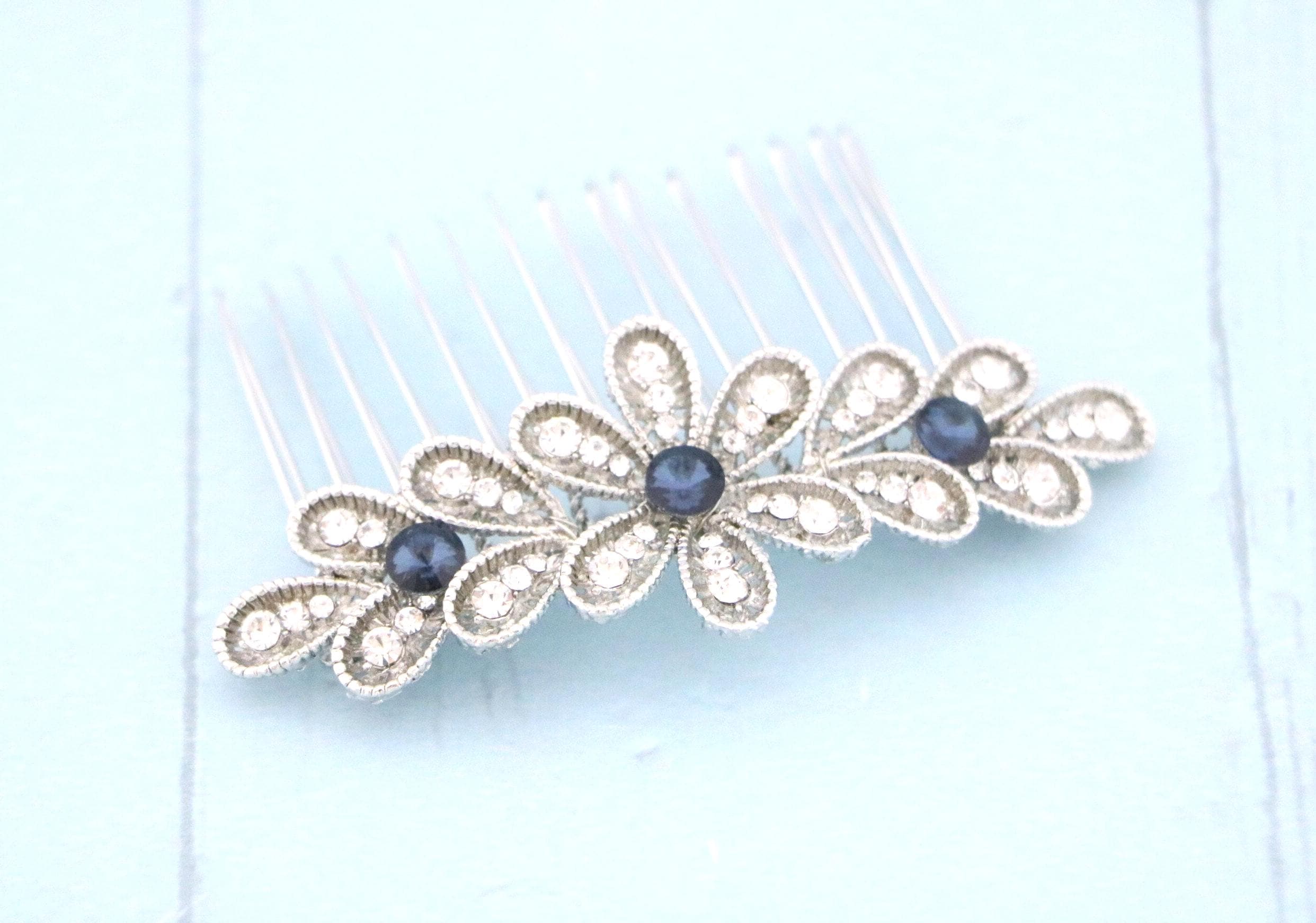 Bridal Hair Comb, Navy blue Hair Comb, Wedding Hair Accessory, Wedding headpiece, Crystal hair comb, Statement head piece, Sapphire hair comb