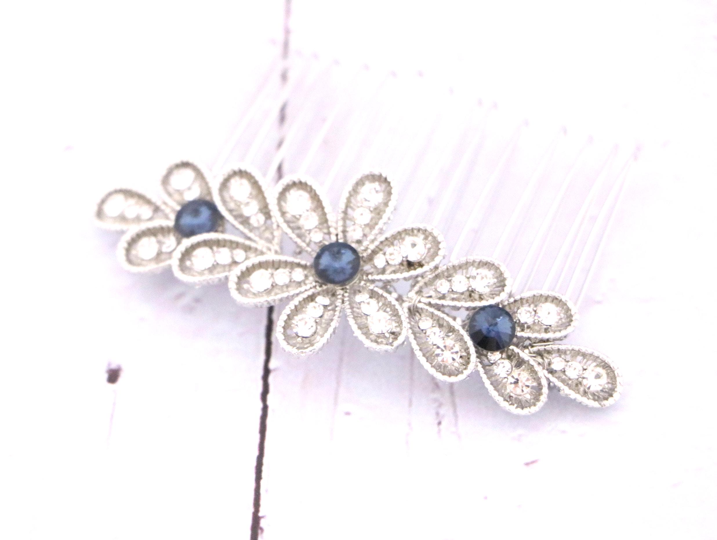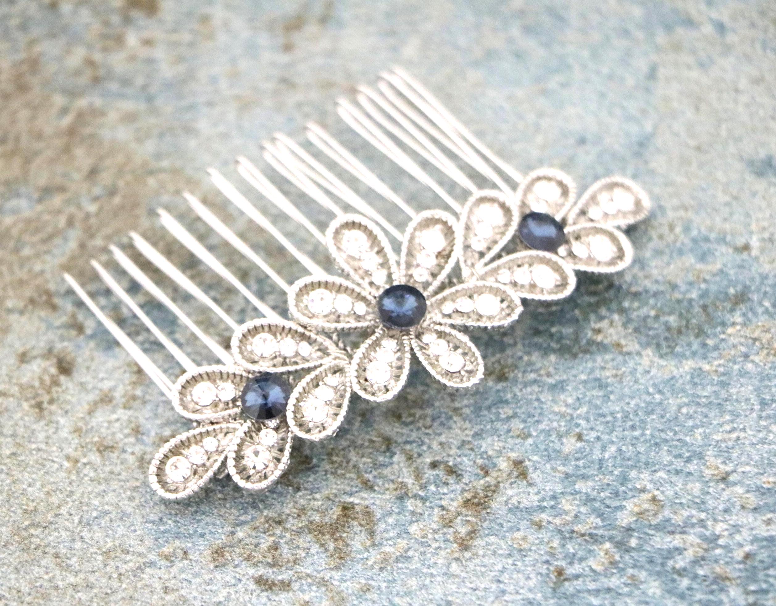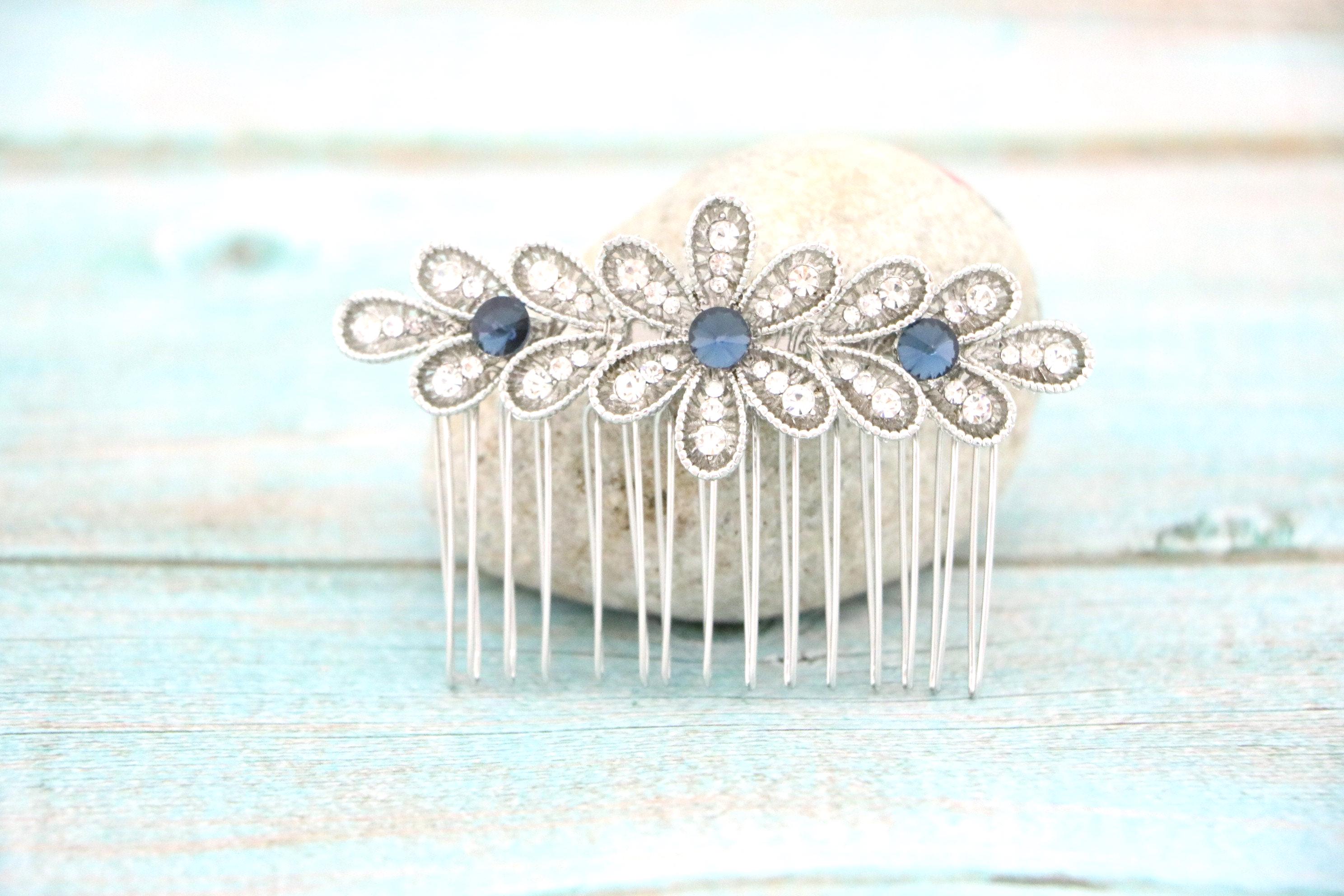 Bridal Hair Comb, Navy blue Hair Comb, Wedding Hair Accessory, Wedding headpiece, Crystal hair comb, Statement head piece, Sapphire hair comb