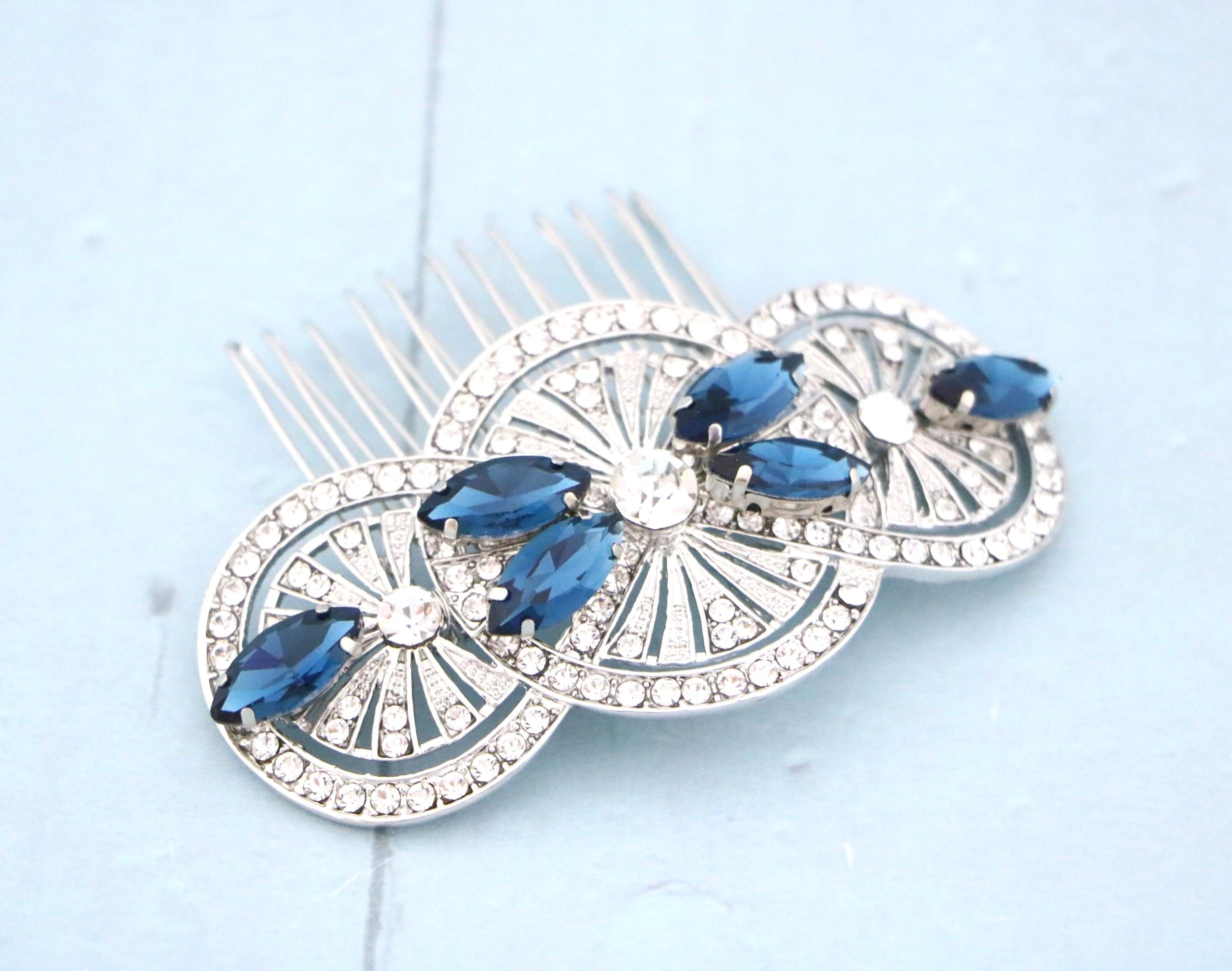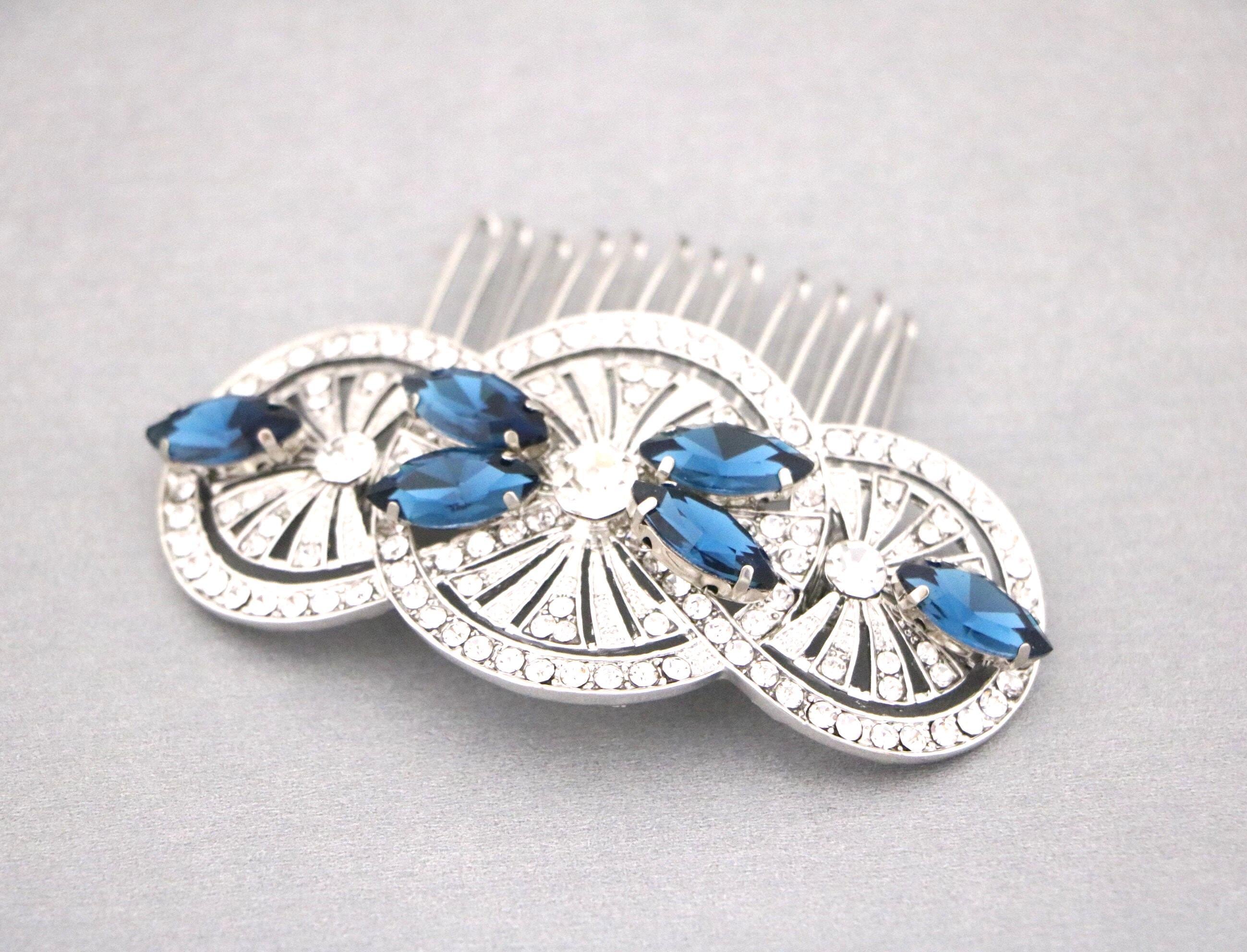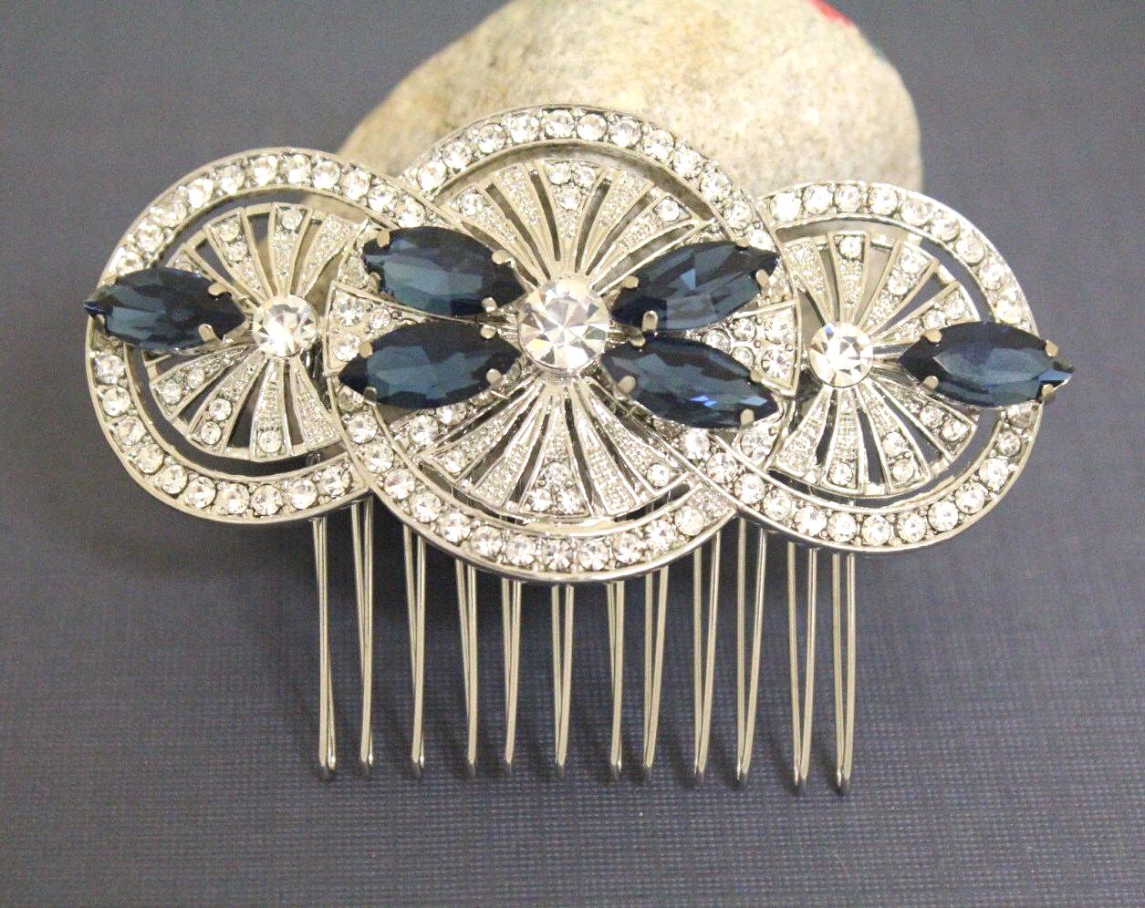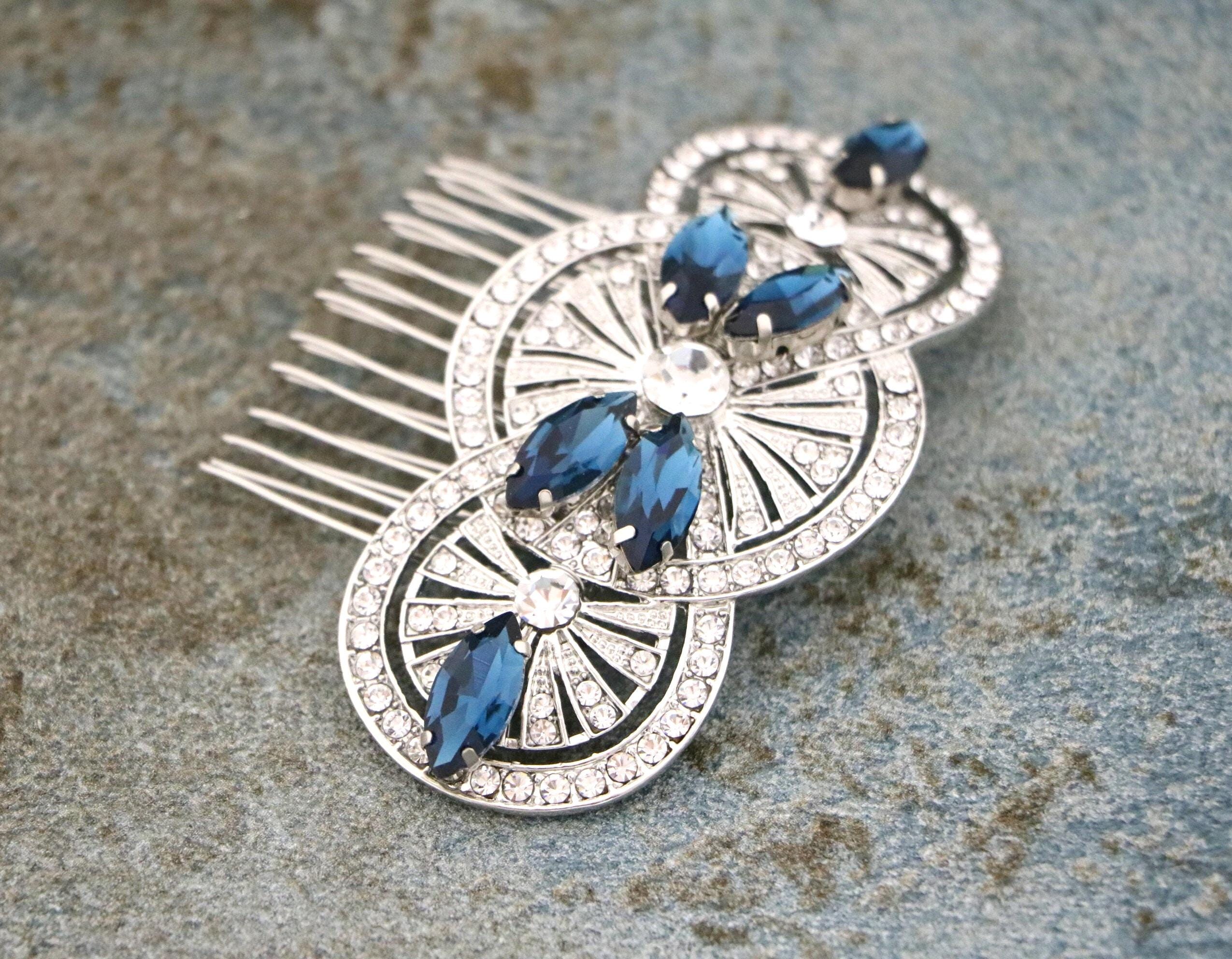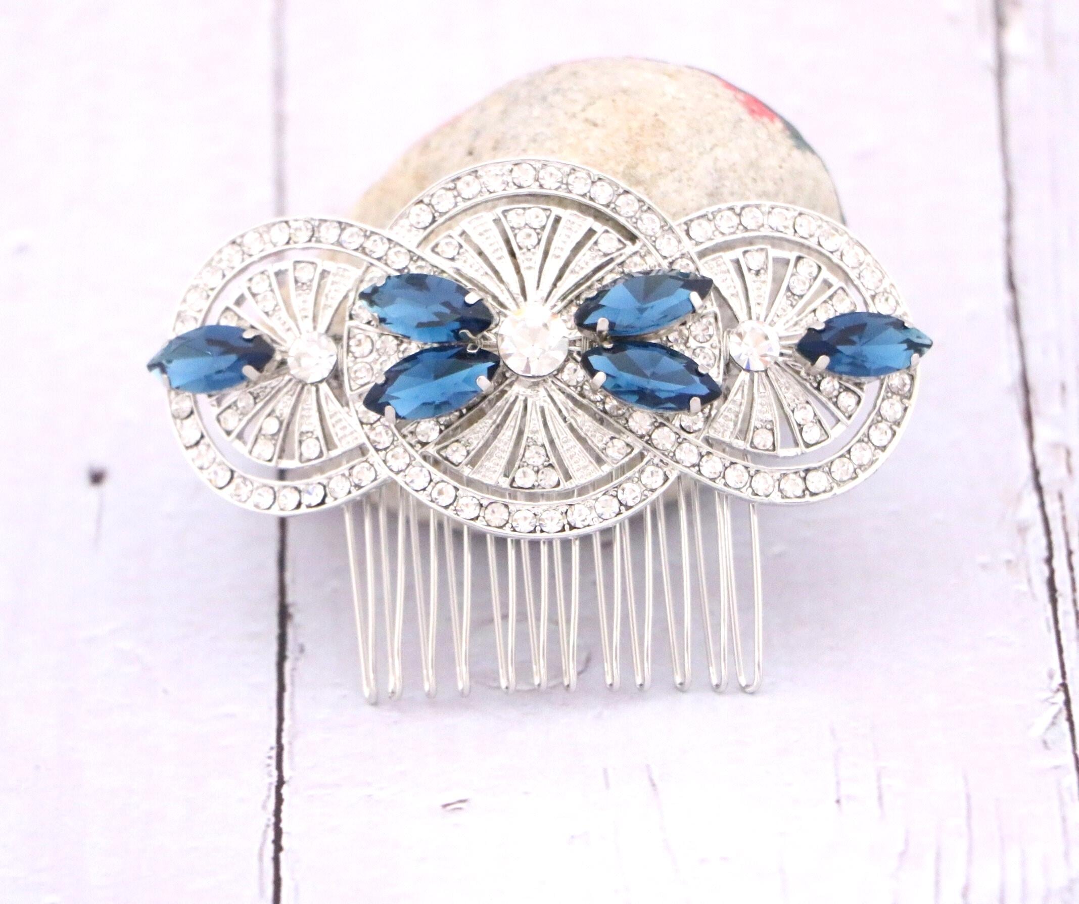 Bridal Hair Comb, Blue Navy Crystal Hair Comb, Blue Navy Hair Comb, Bridal Hair Accessories, Blue Hair Comb, Bridal Navy Blue Hair Comb