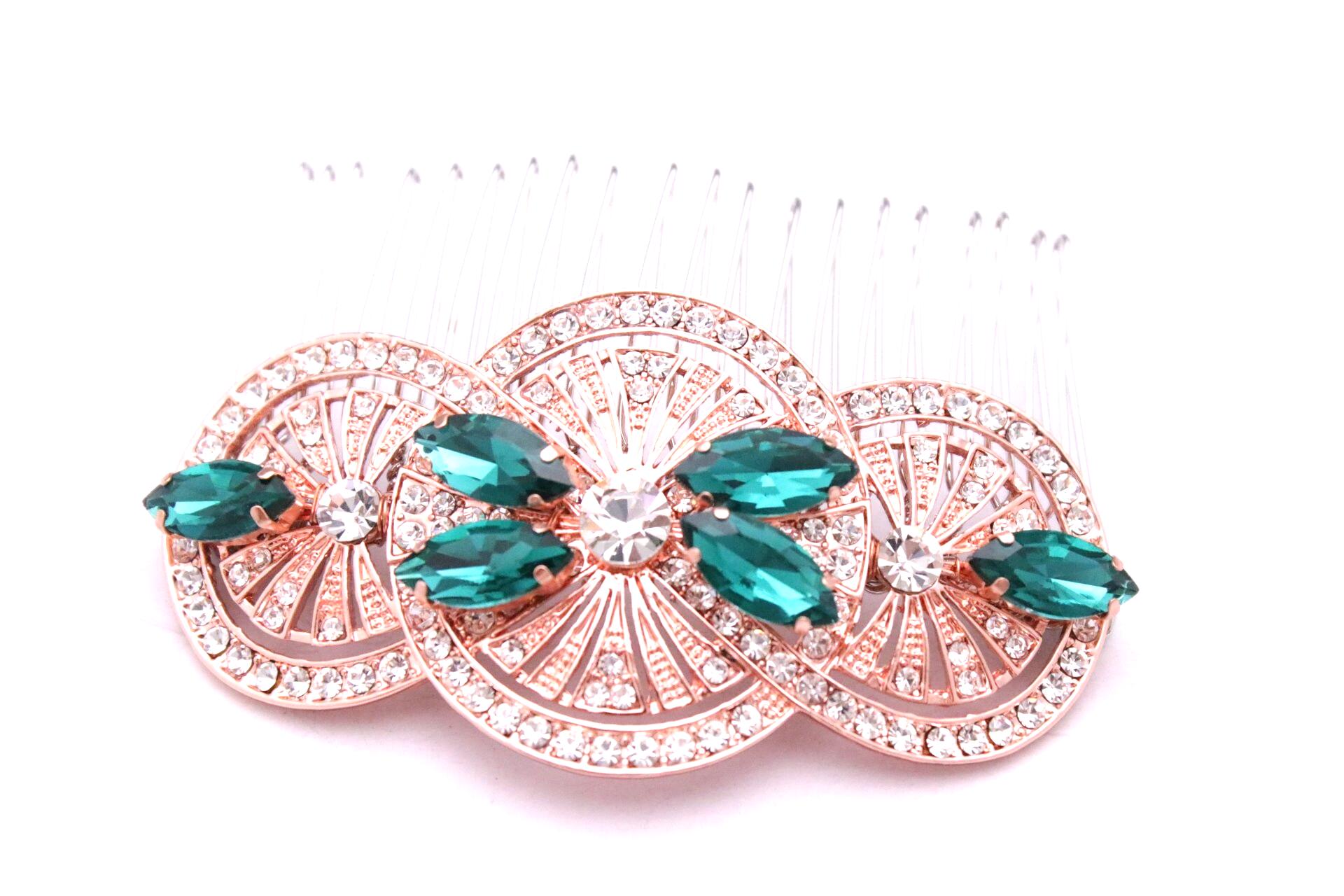 This beautiful Clear rhinestone and Montana Crystal hair comb is a perfect compliment for the wedding party and can easily fit into any hairstyle. The Rhinestone part measured approximately 3.25 X 1.25 inches.