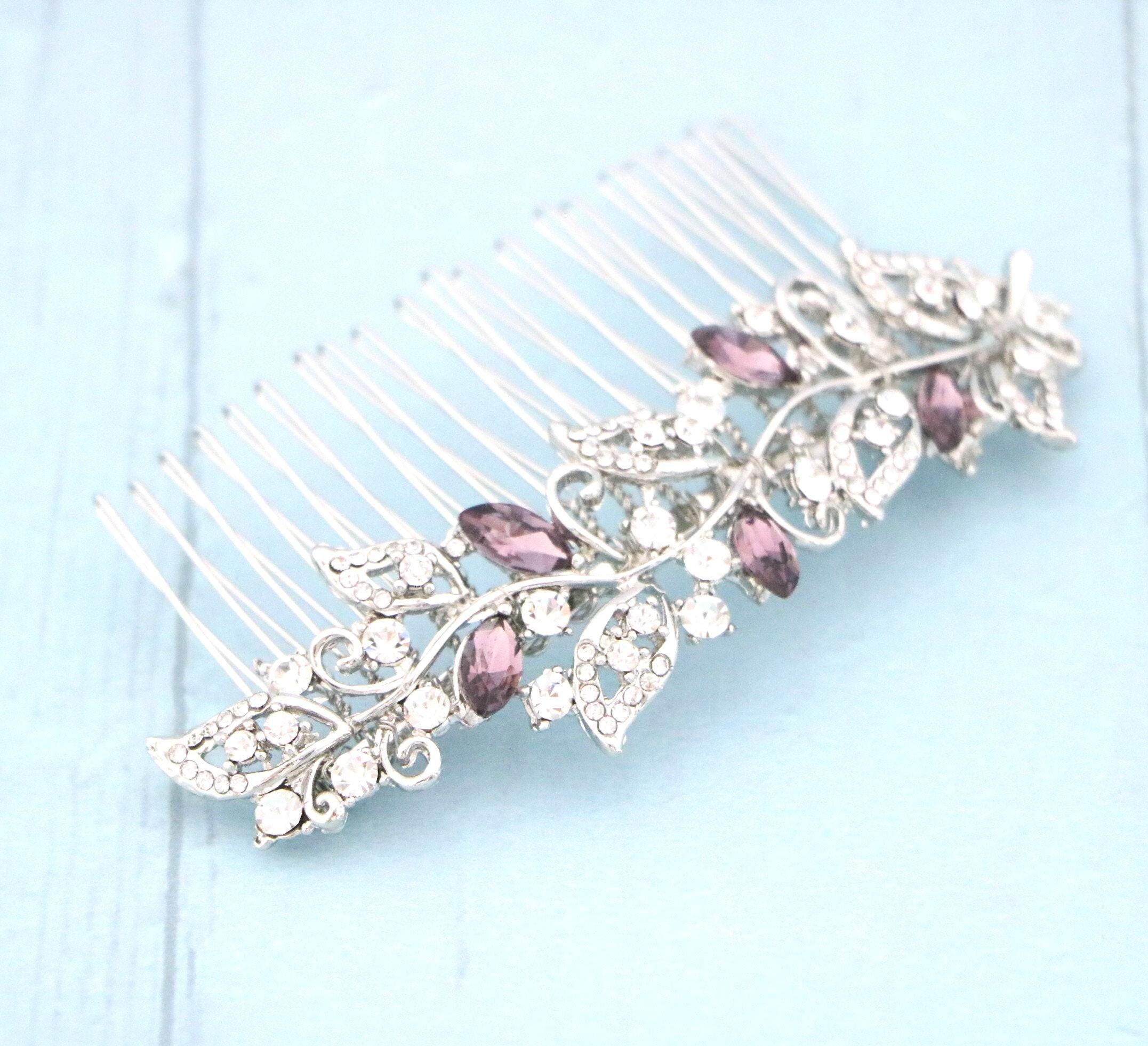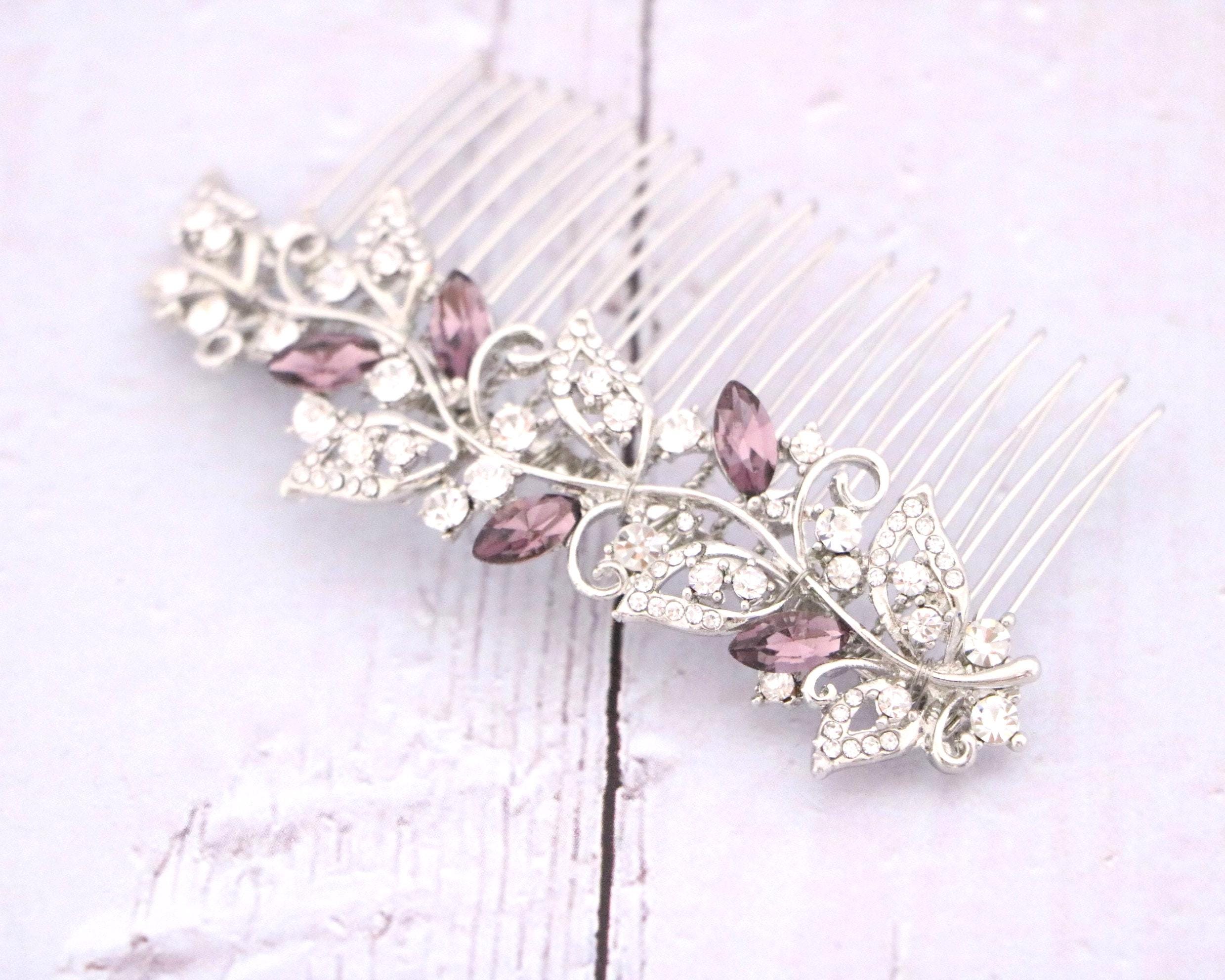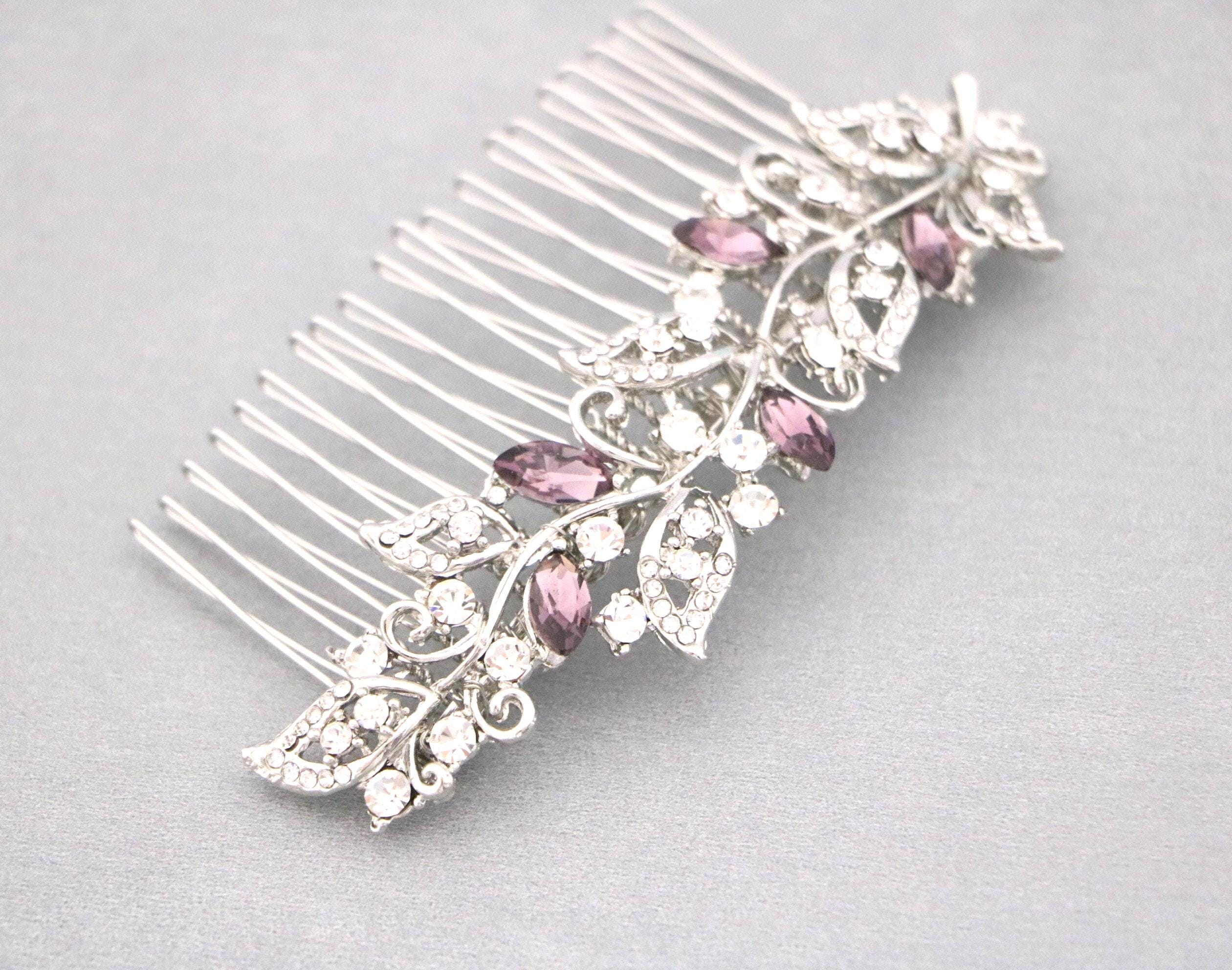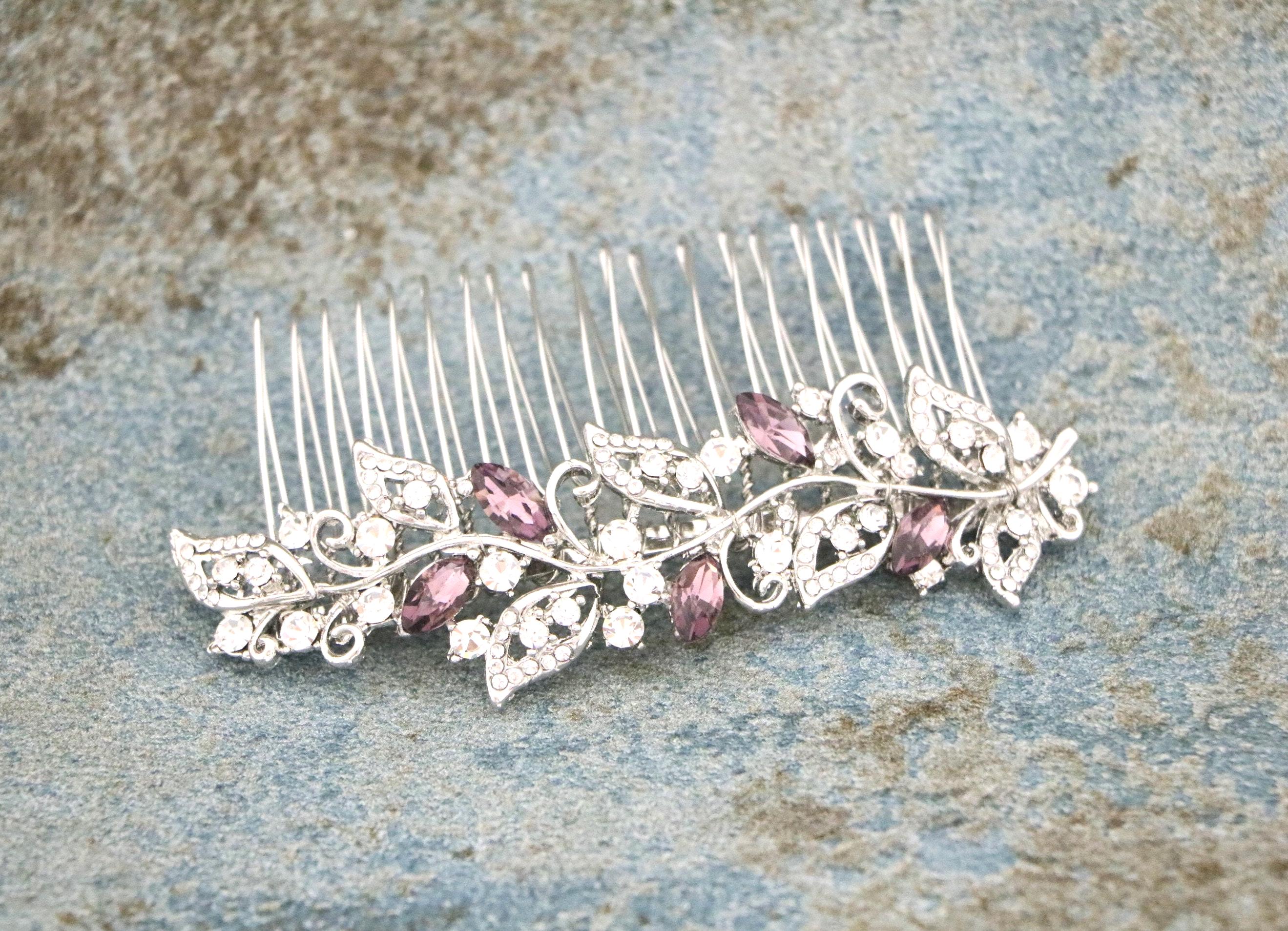 Bridal Hair Comb, PURPLE Wedding Hair Comb, Swarovski Crystal Hair Comb, Flower Leaf Hair Comb, Wedding Hair Accessories, Hair Pin