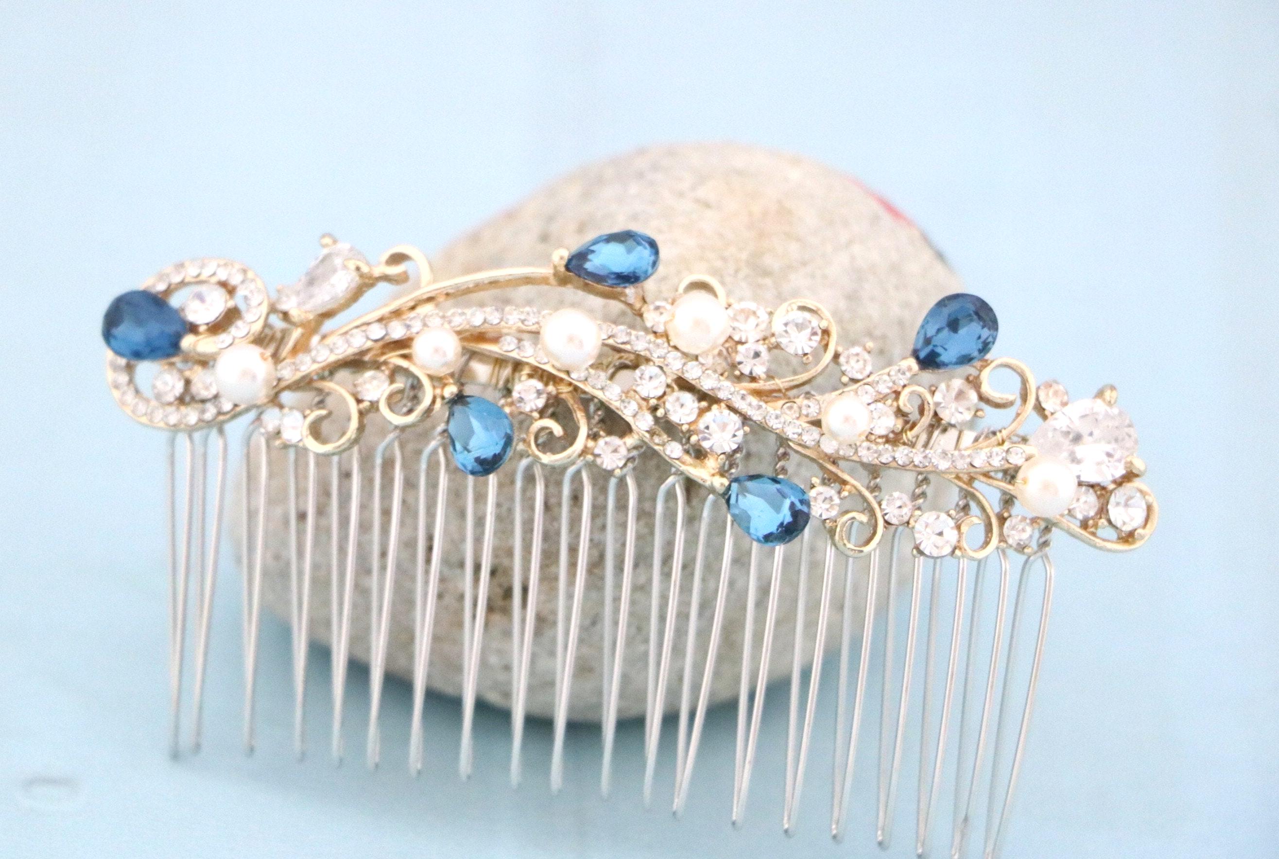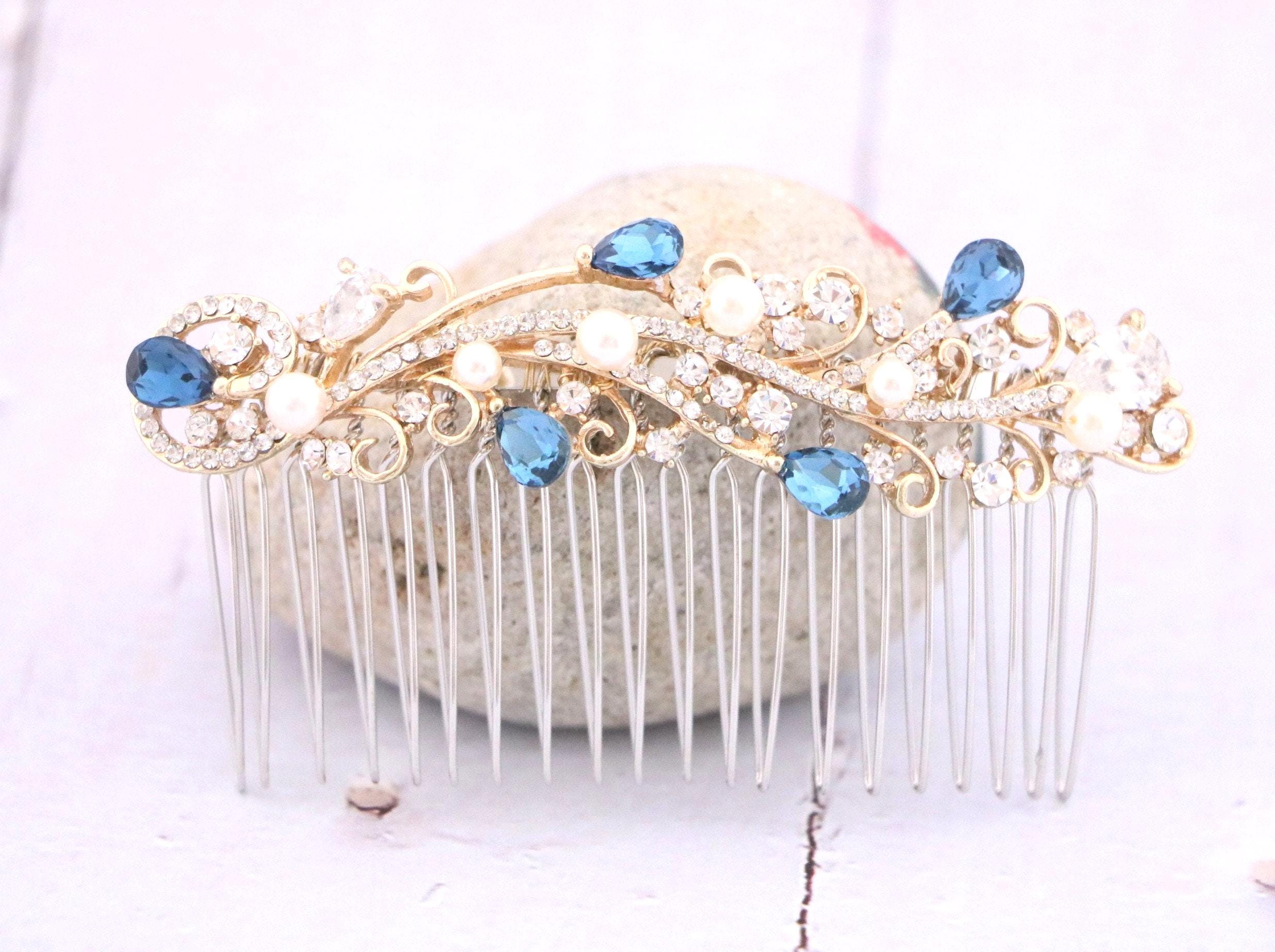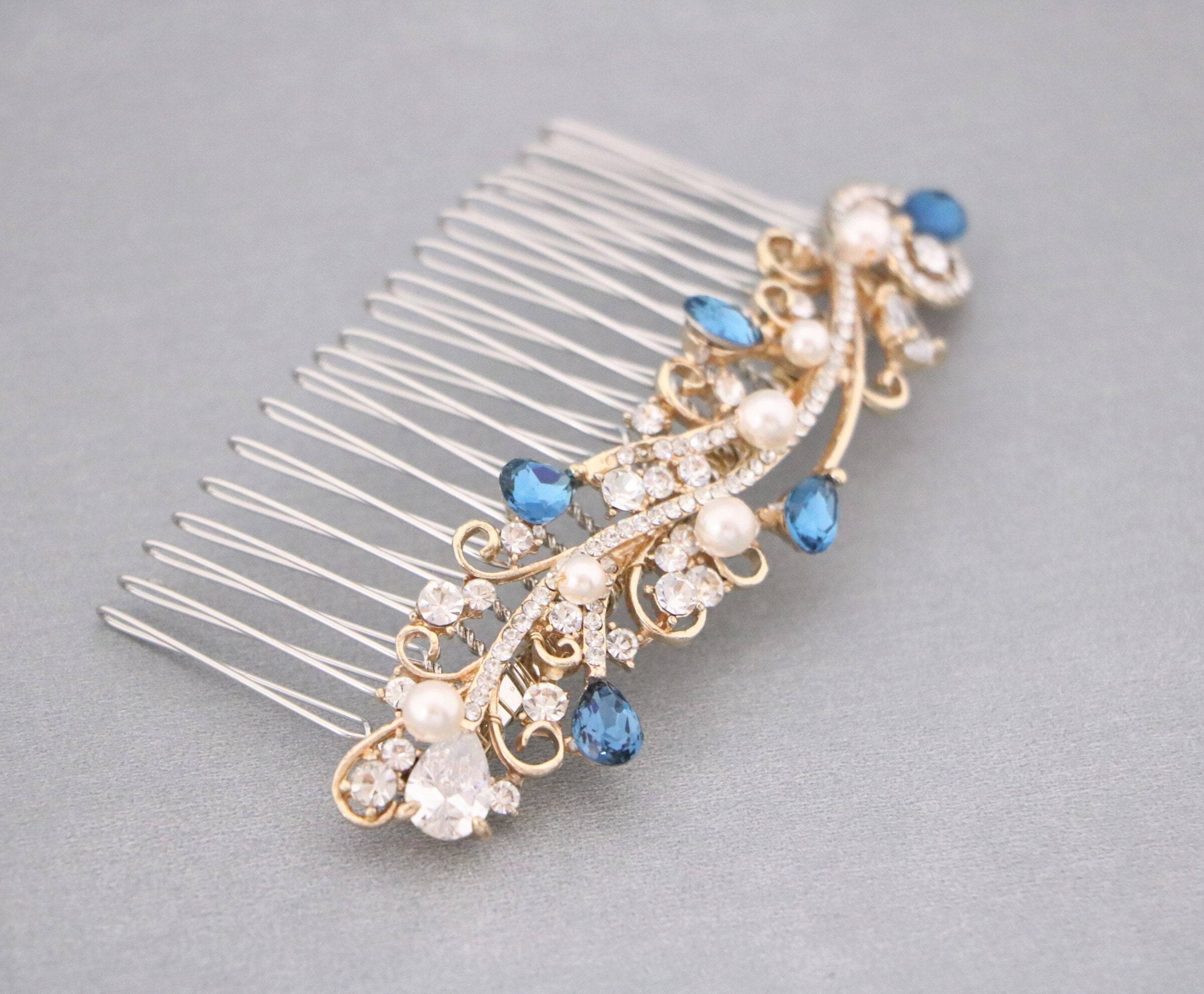 WEDDING Hair Piece Bridal VINE SAPPHIRE Blue or Red, Emerald Green, Purple Teardrop Hair Accessory Prom Pageant