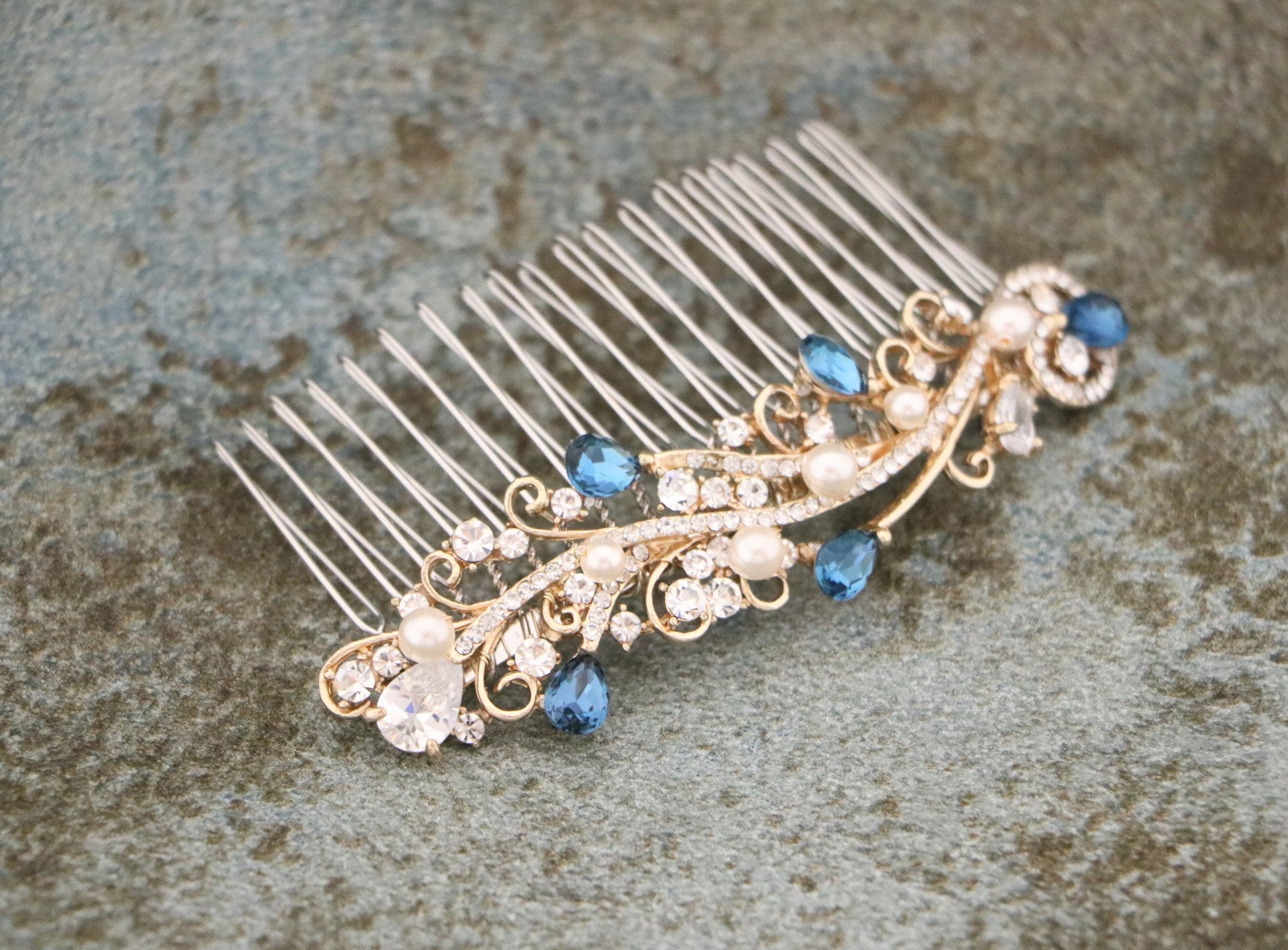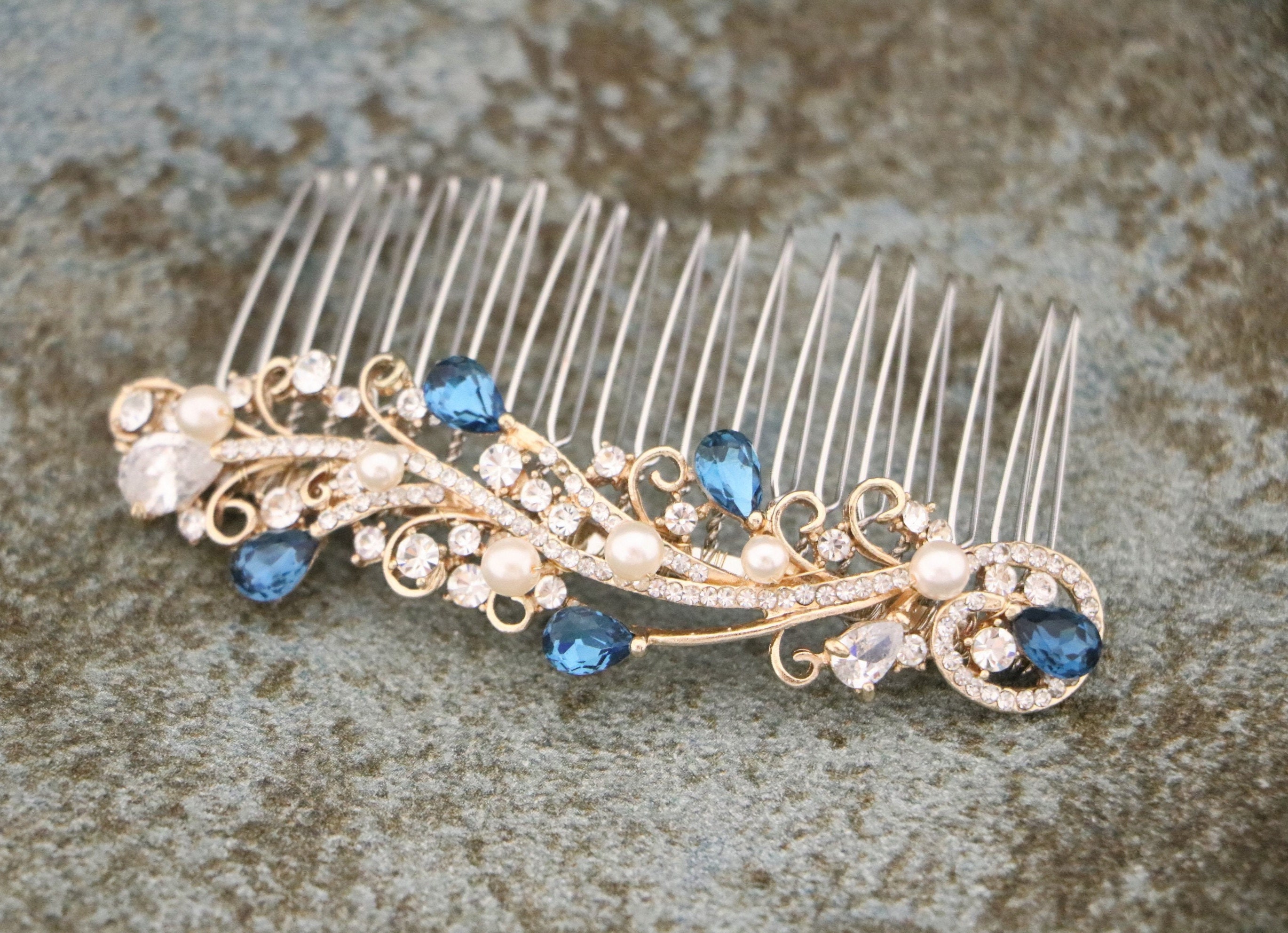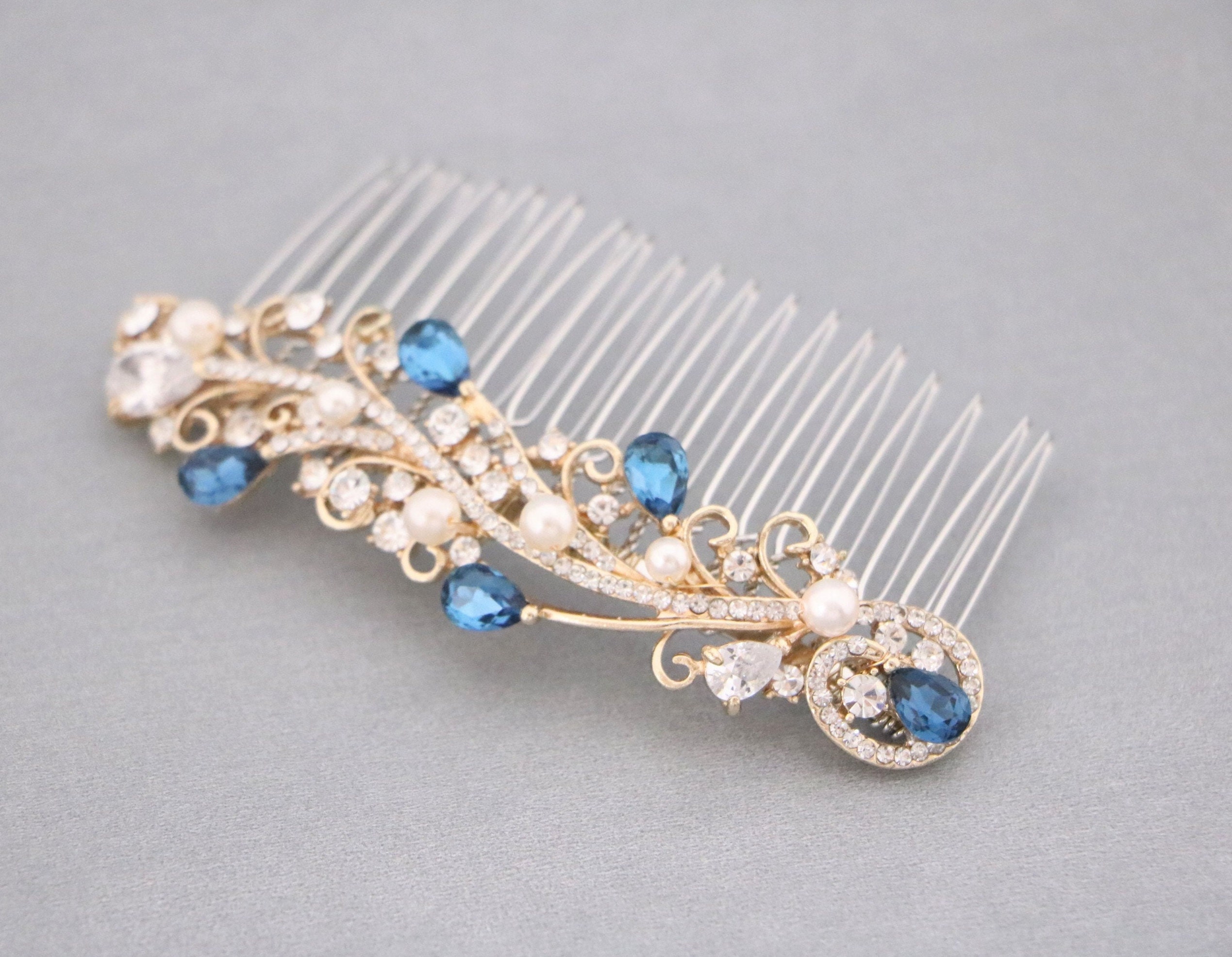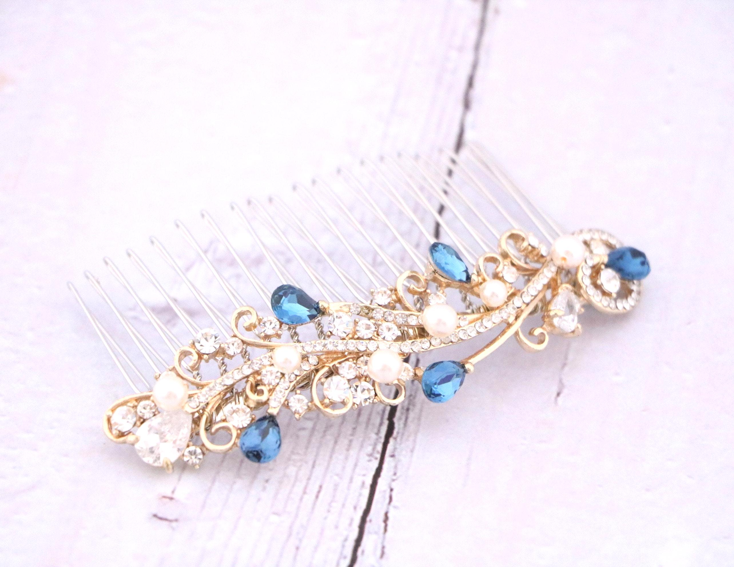 WEDDING Hair Piece Bridal VINE SAPPHIRE Blue or Red, Emerald Green, Purple Teardrop Hair Accessory Prom Pageant