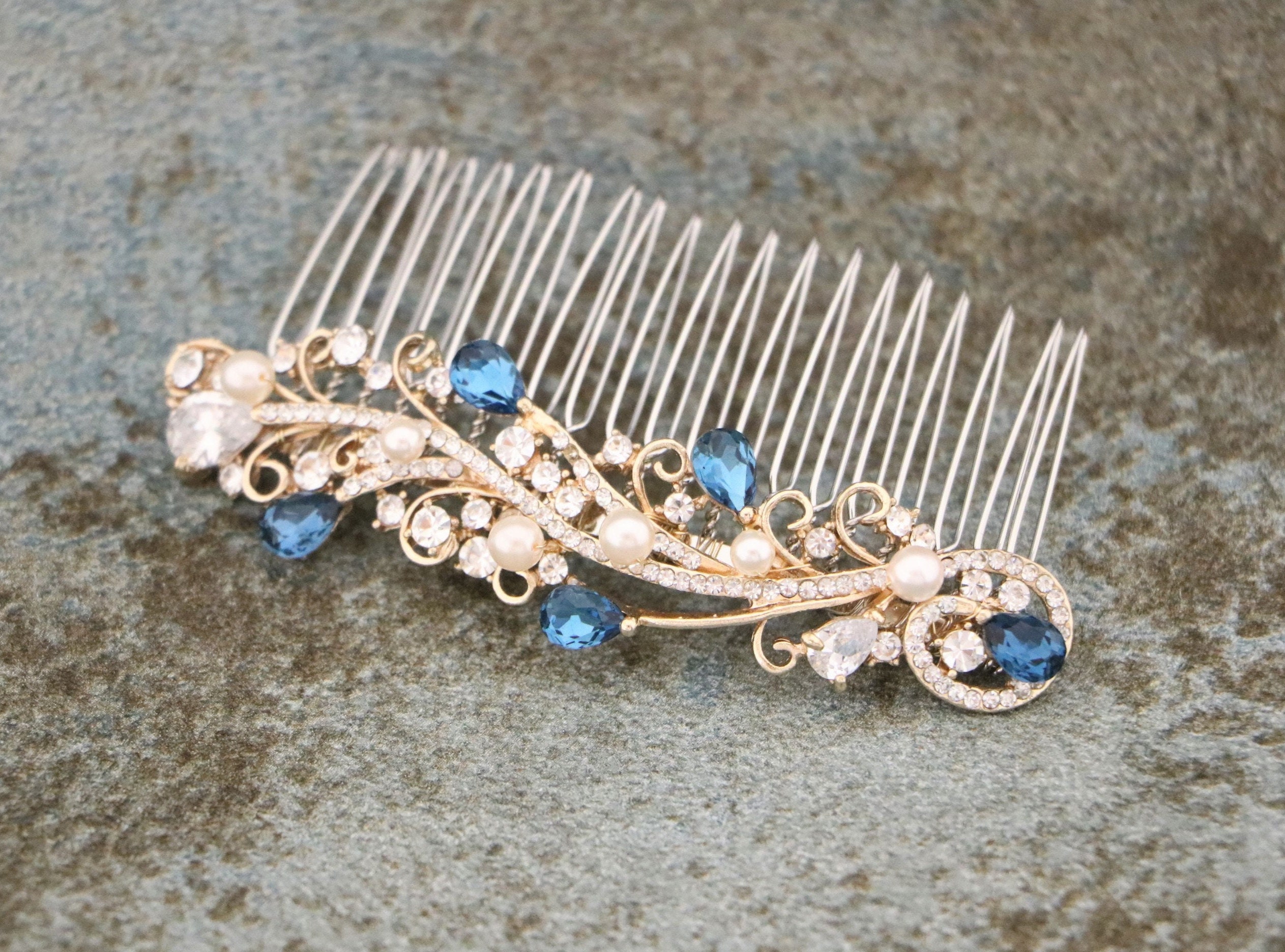 This sparkle rhinestone hair comb features a very beautiful vintage style rhinestone piece. Rhinestone piece can set on a metal barrette or on a metal hair comb. The rhinestone part measures approximately 4 X 0.75 inches.