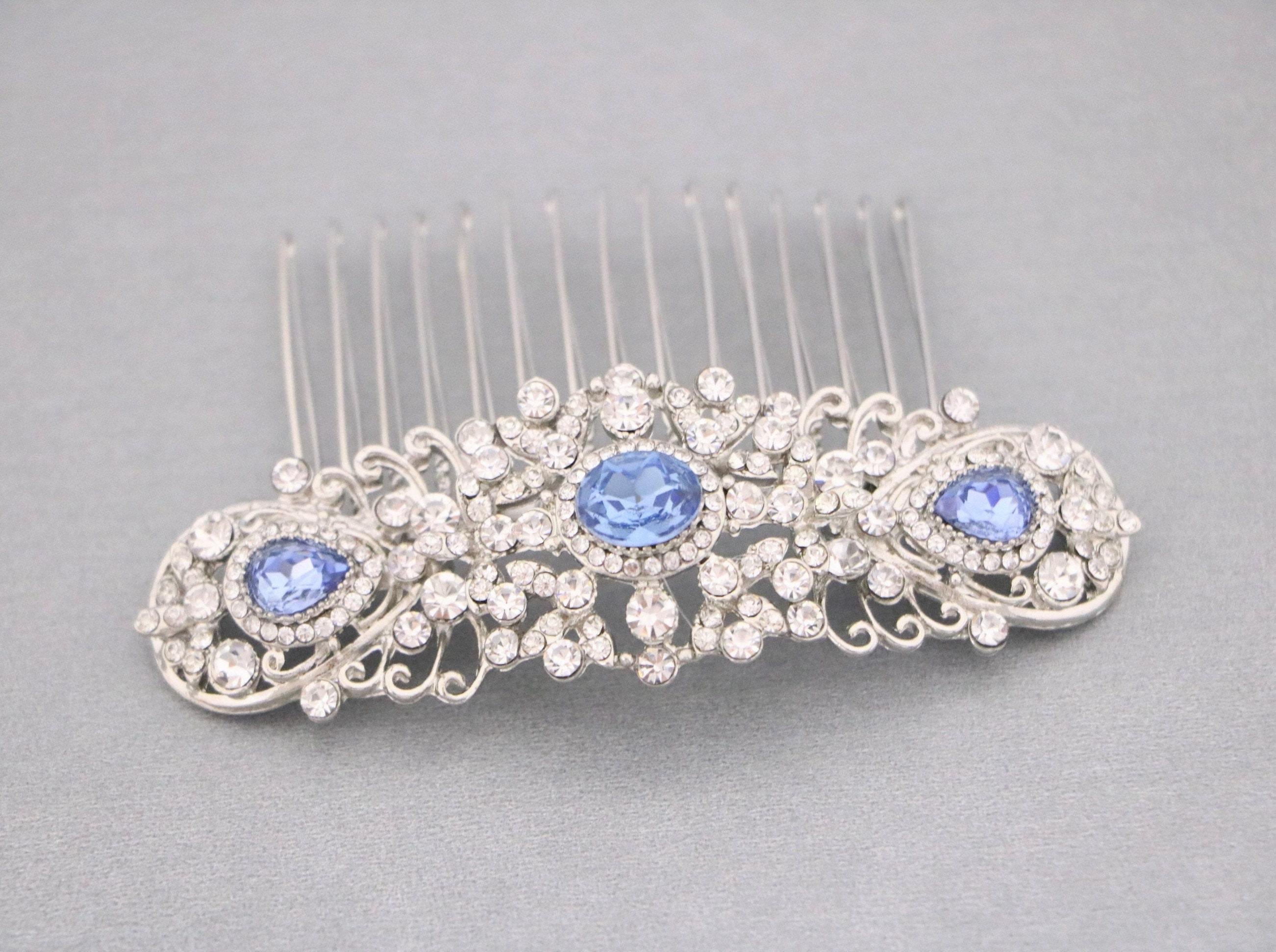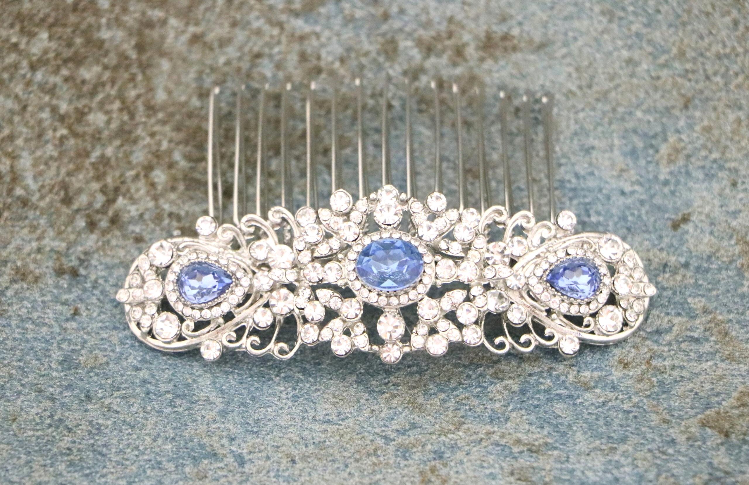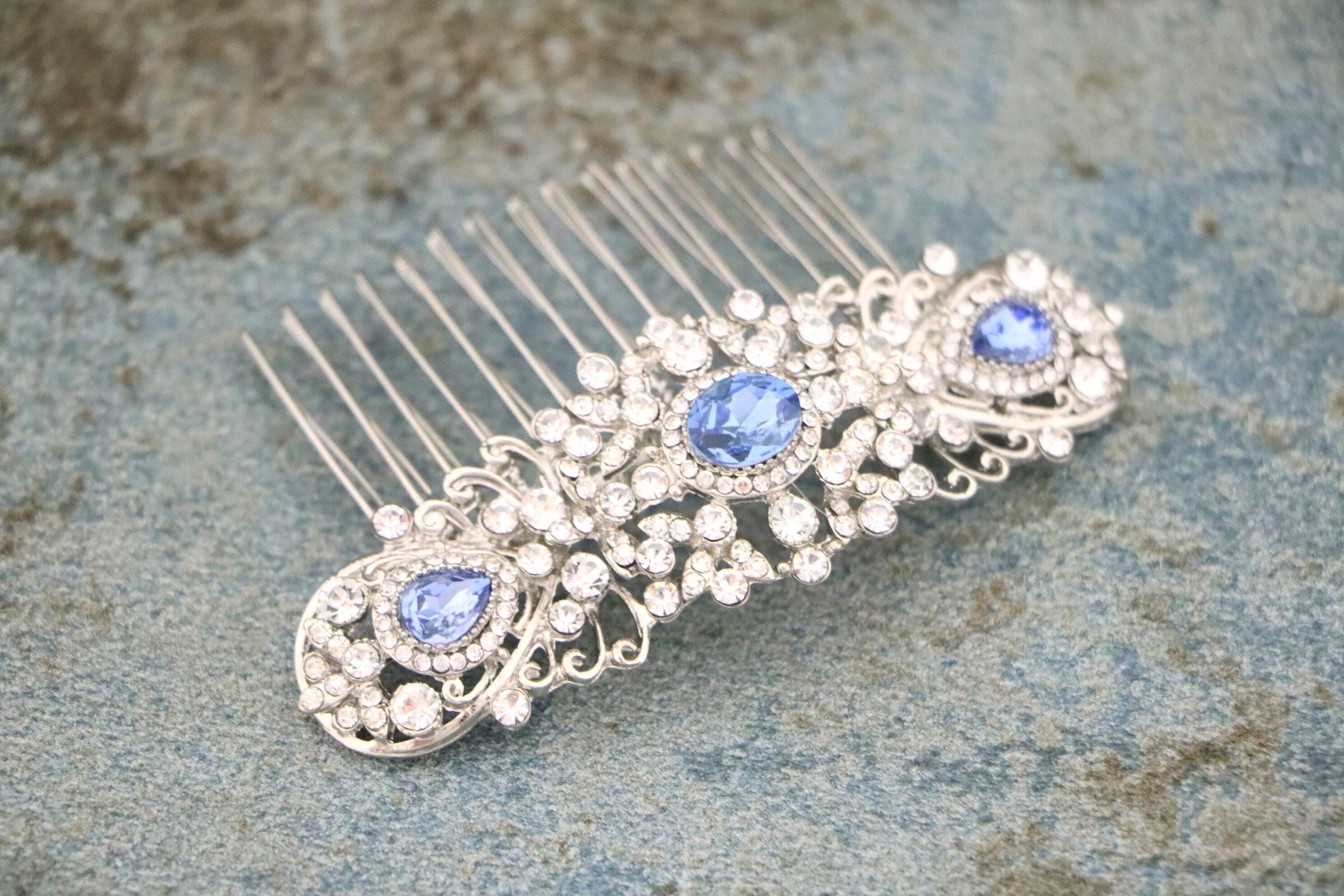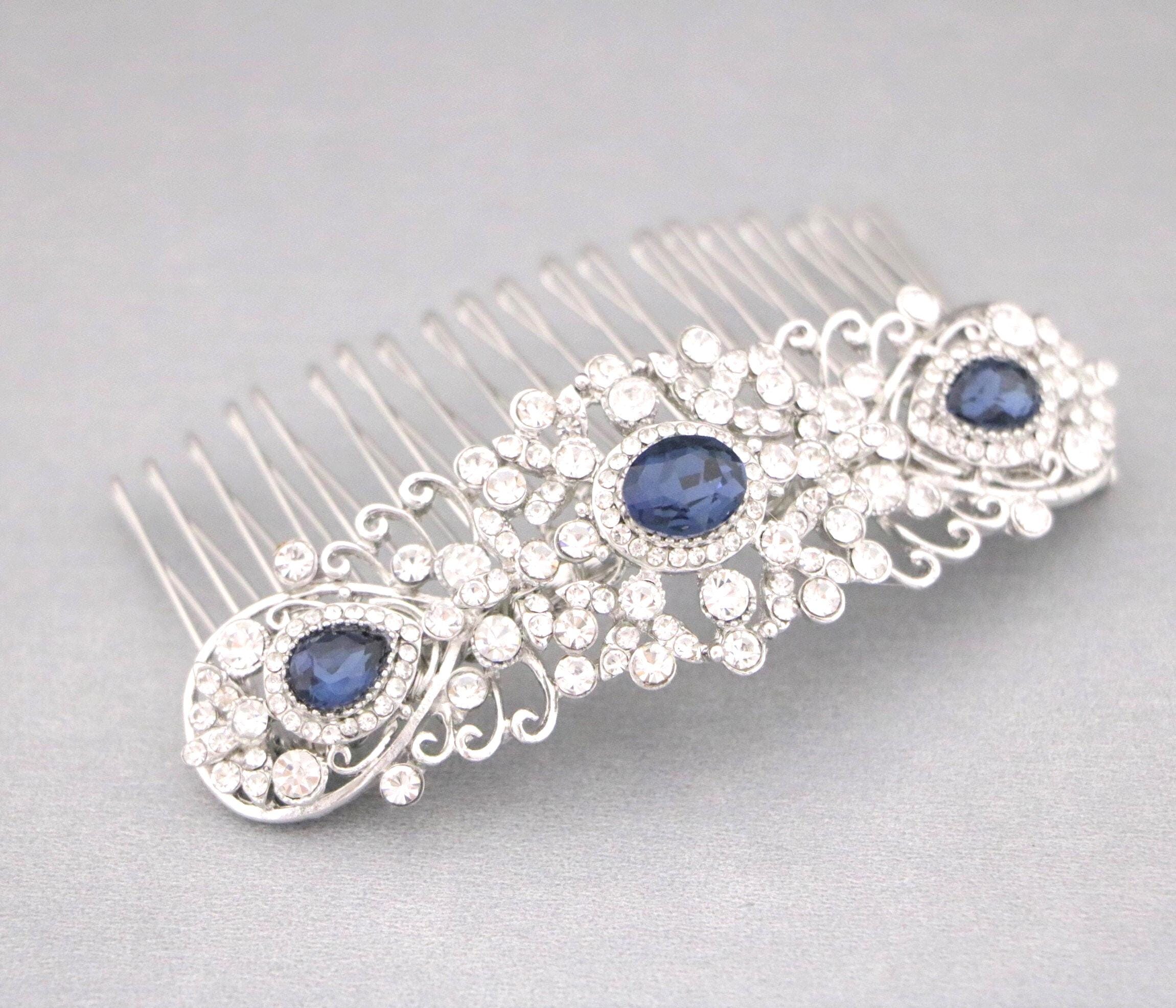 Bridal Hair Comb,Navy blue Hair Comb,Wedding Hair Accessory,Wedding headpiece,Crystal hair comb,Statement head piece,Navy blue Headpiece