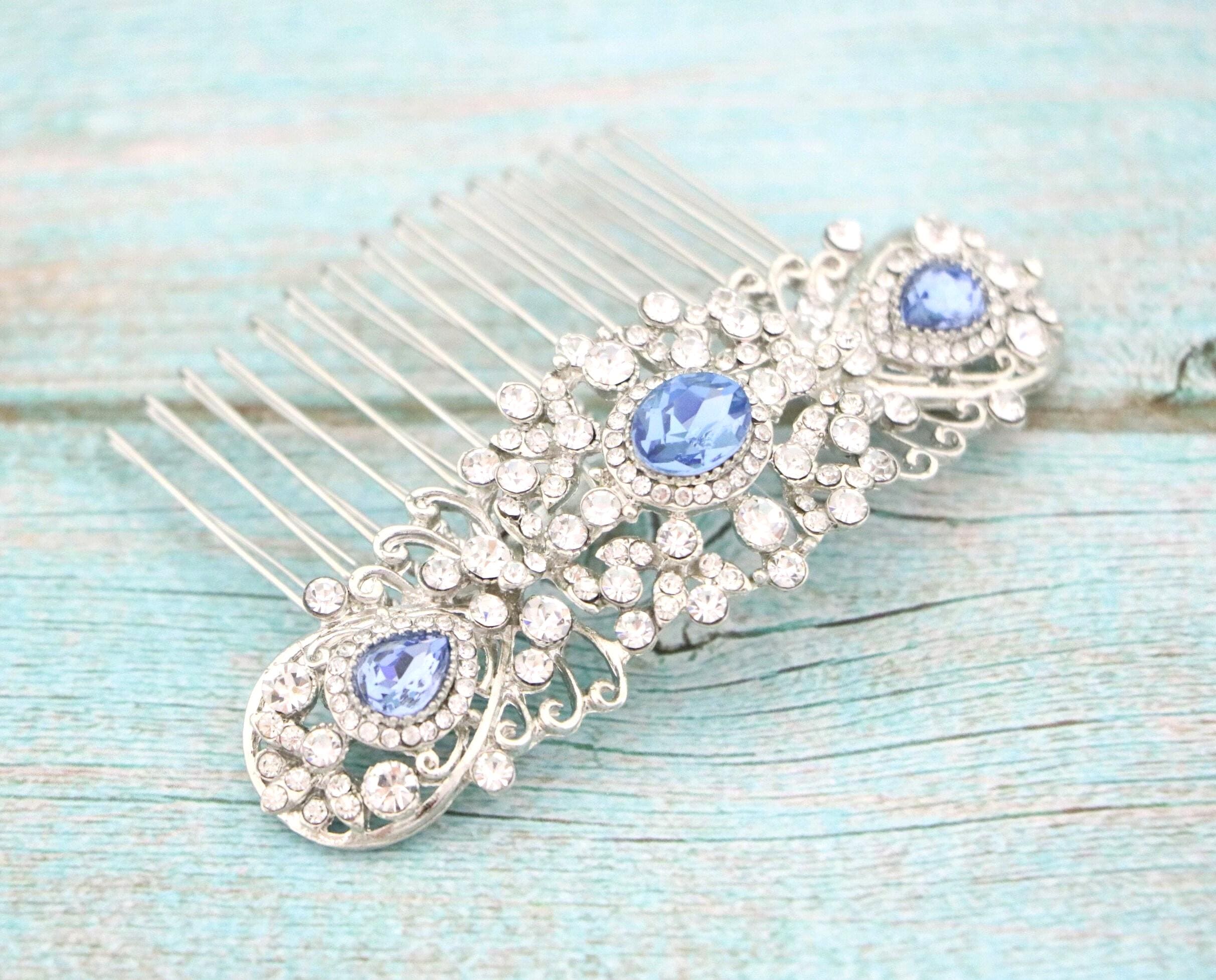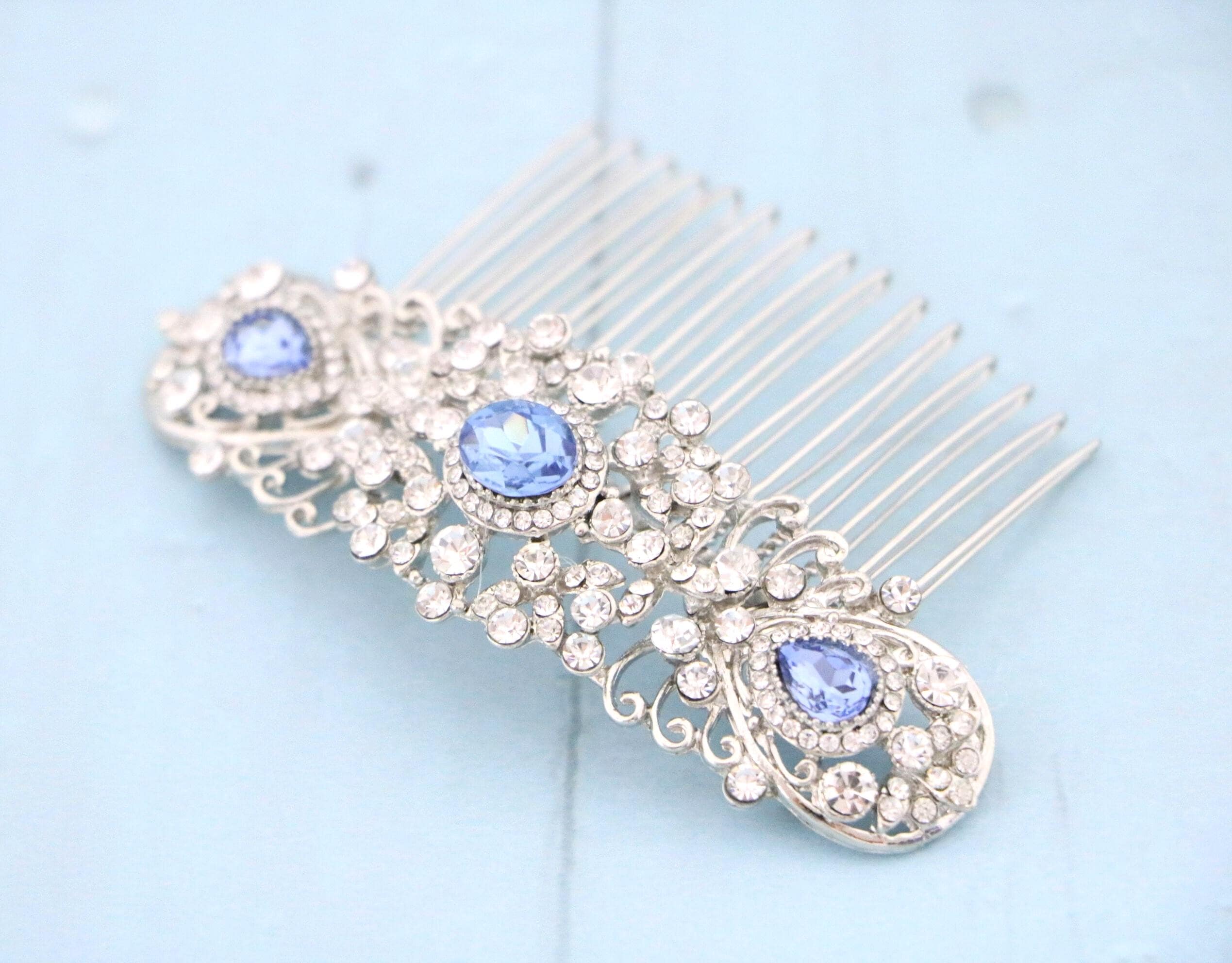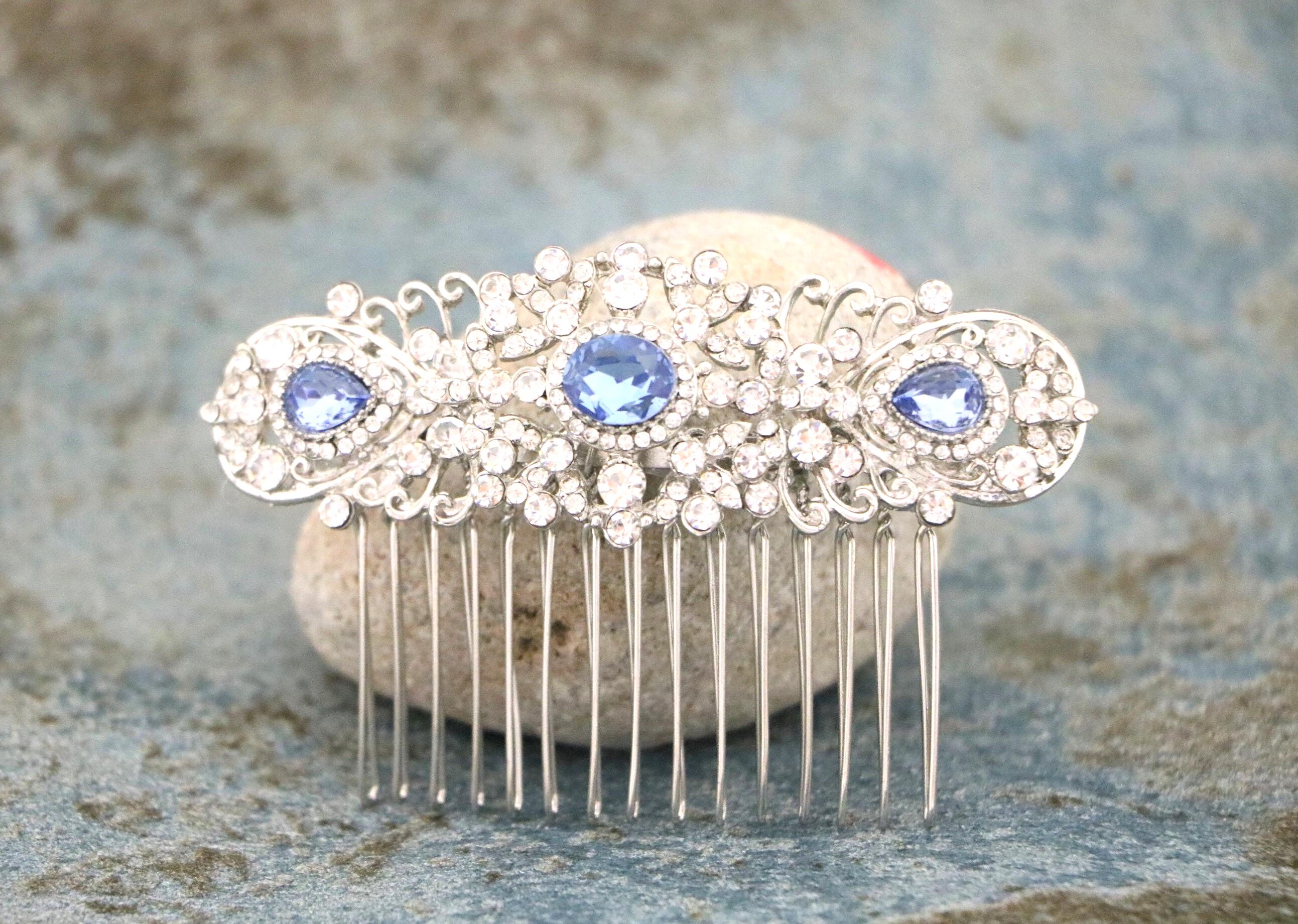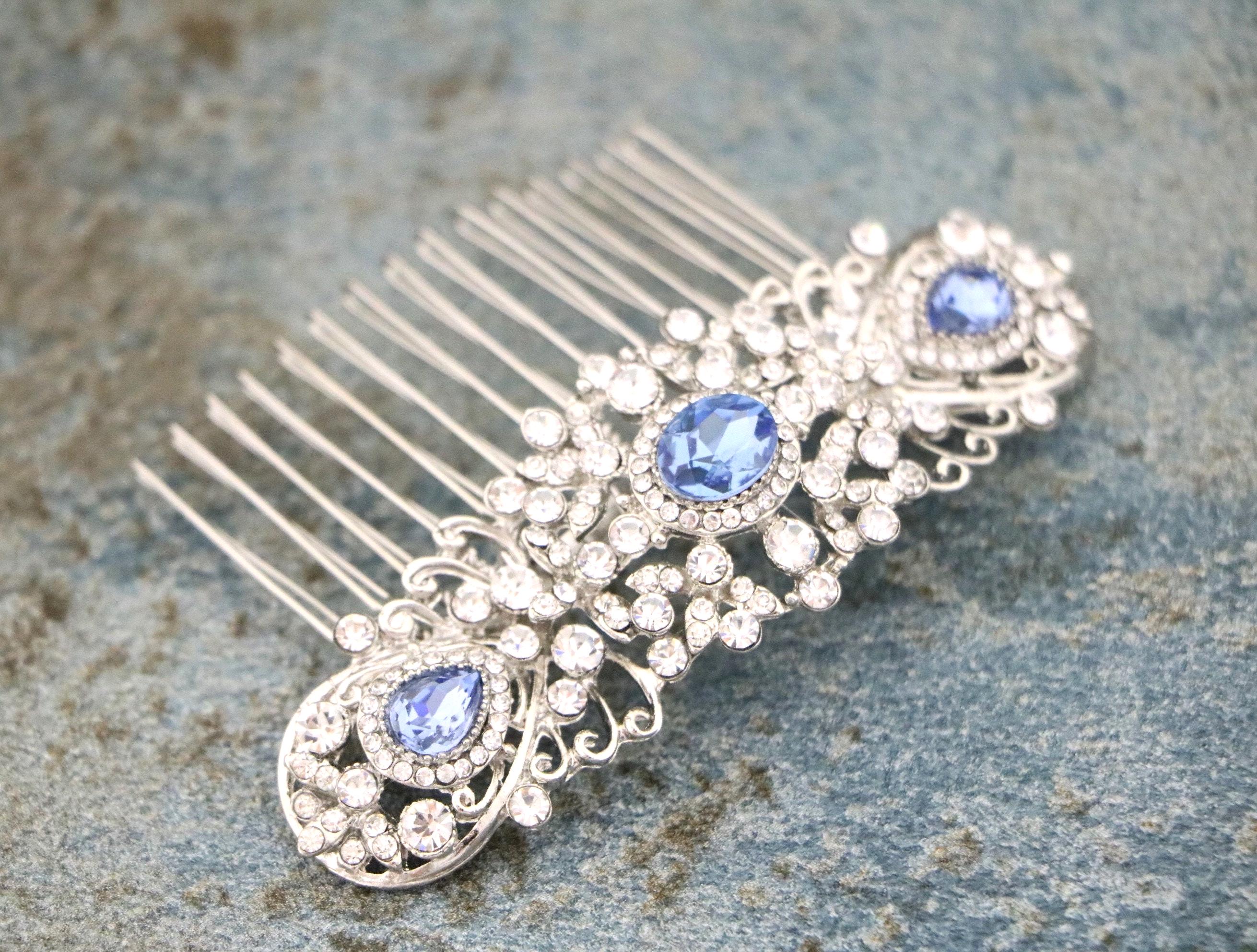 Bridal Hair Comb,Navy blue Hair Comb,Wedding Hair Accessory,Wedding headpiece,Crystal hair comb,Statement head piece,Navy blue Headpiece