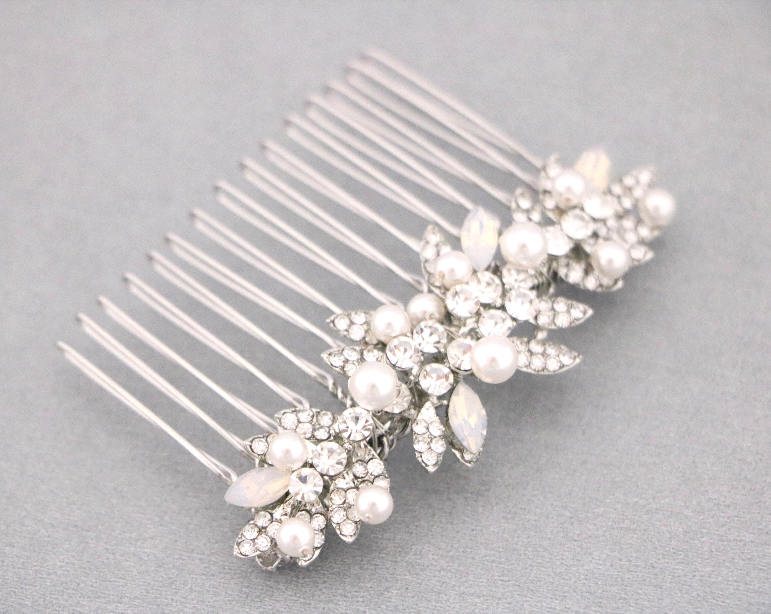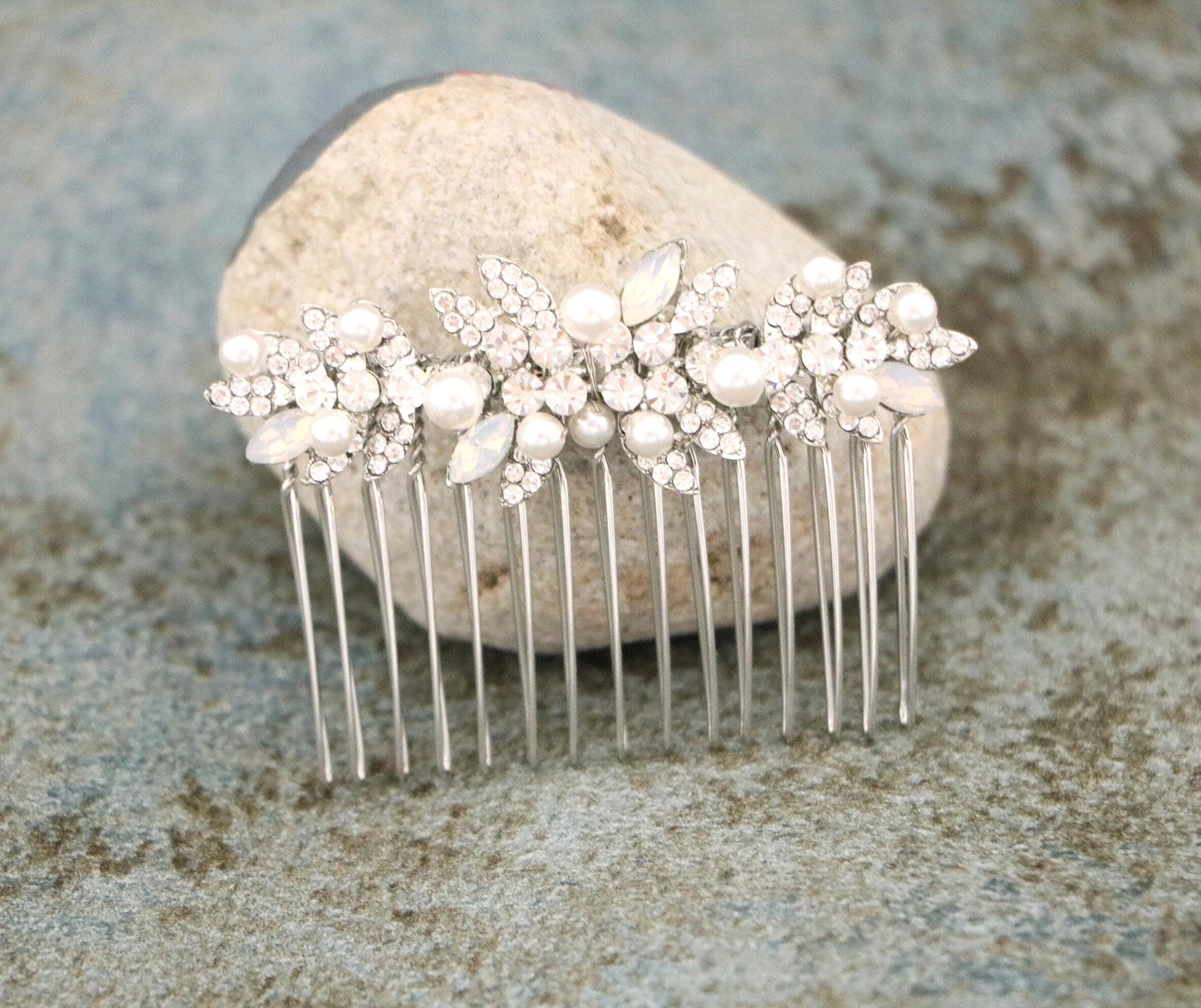 Pearl Bridal Comb, Floral Wedding Comb, Bridal Hair Comb, Wedding Hair Accessory, Crystal Hair Comb, Pearl Comb, Bridal Headpiece