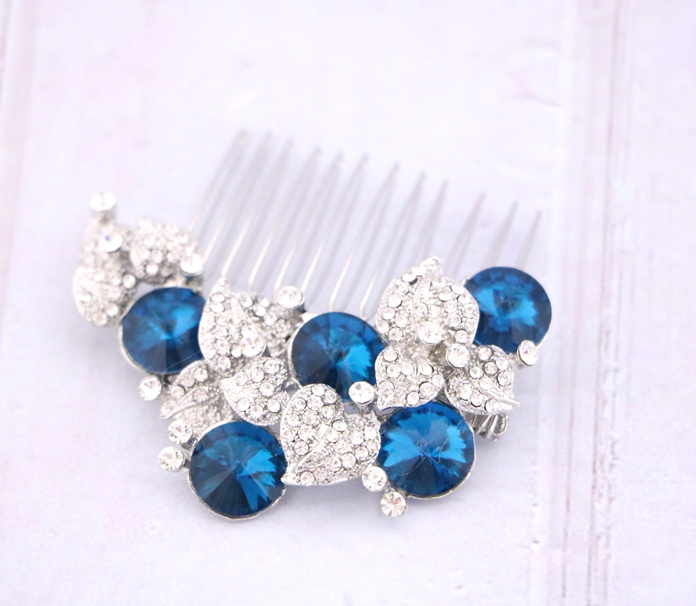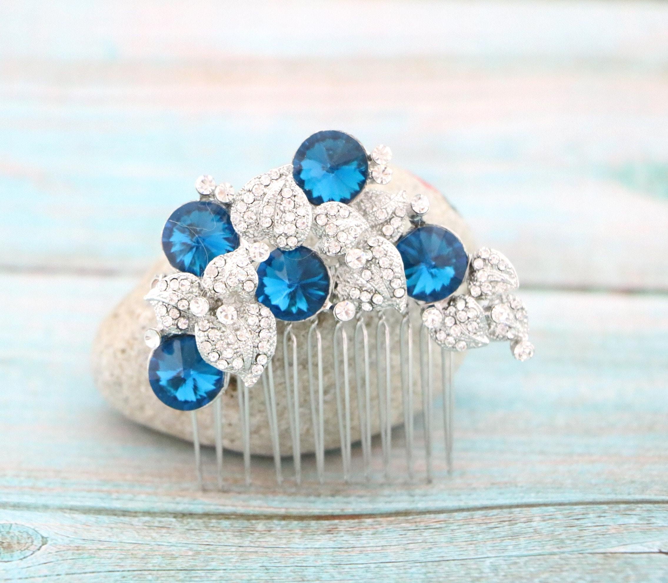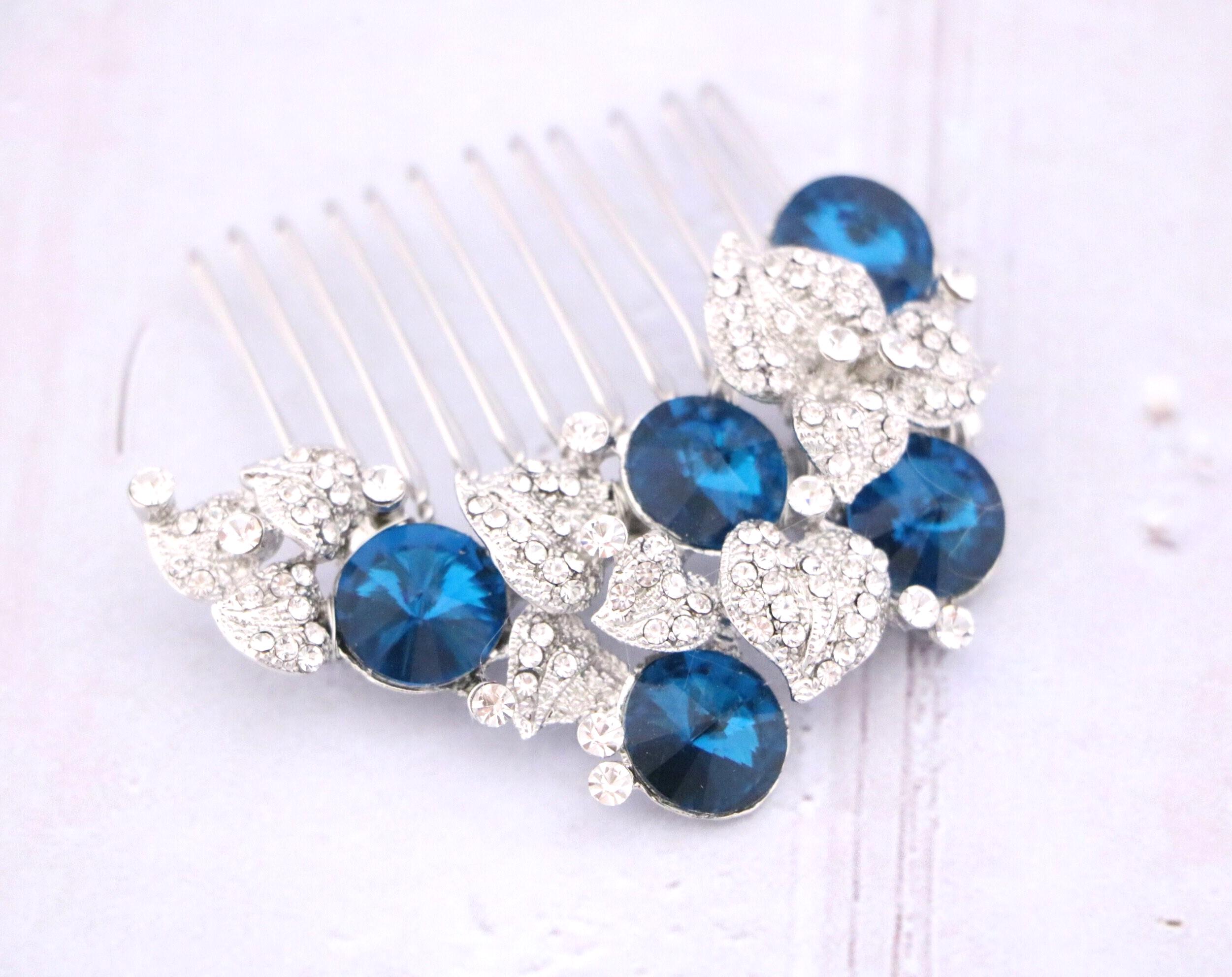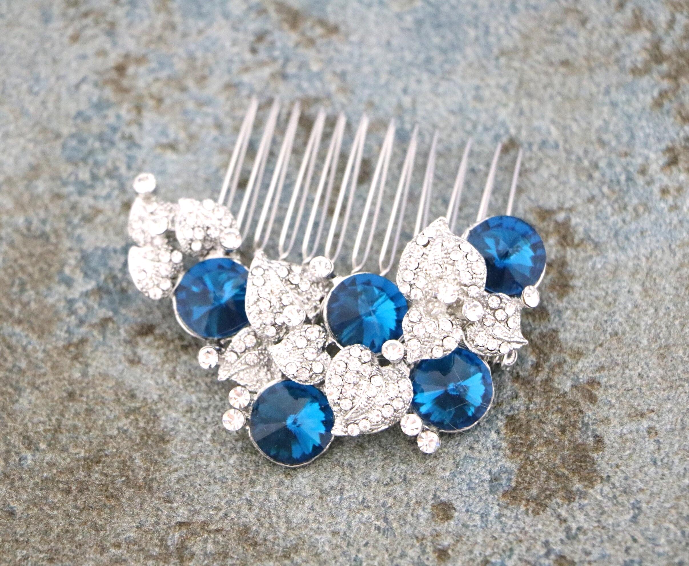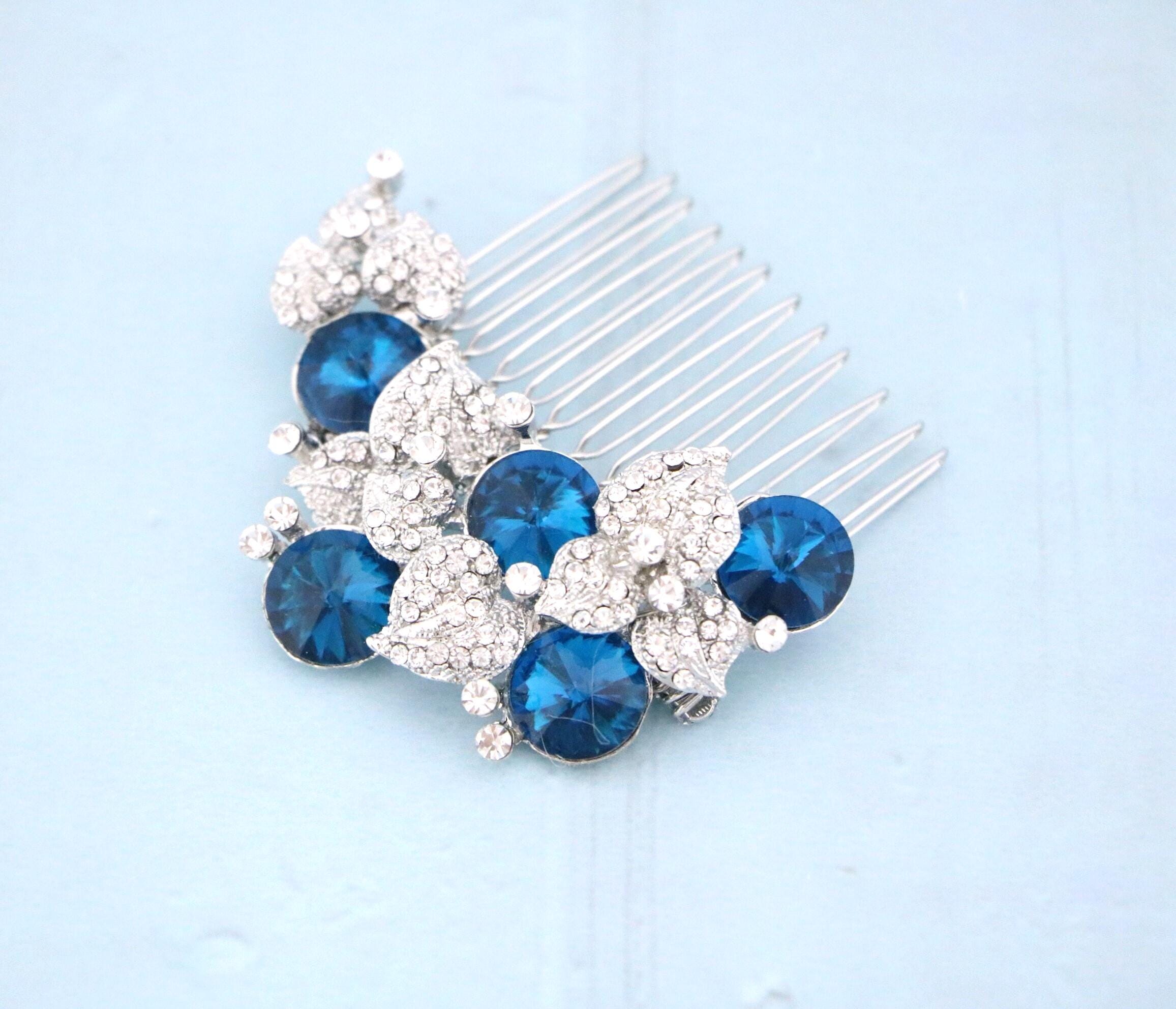 Bridal Hair Comb, Dusty Blue Bridal Hair Comb, Dusty Blue Hair comb, Hair Accessories, Gold Hair Comb, Blue Navy Bridal Silver Hair Comb