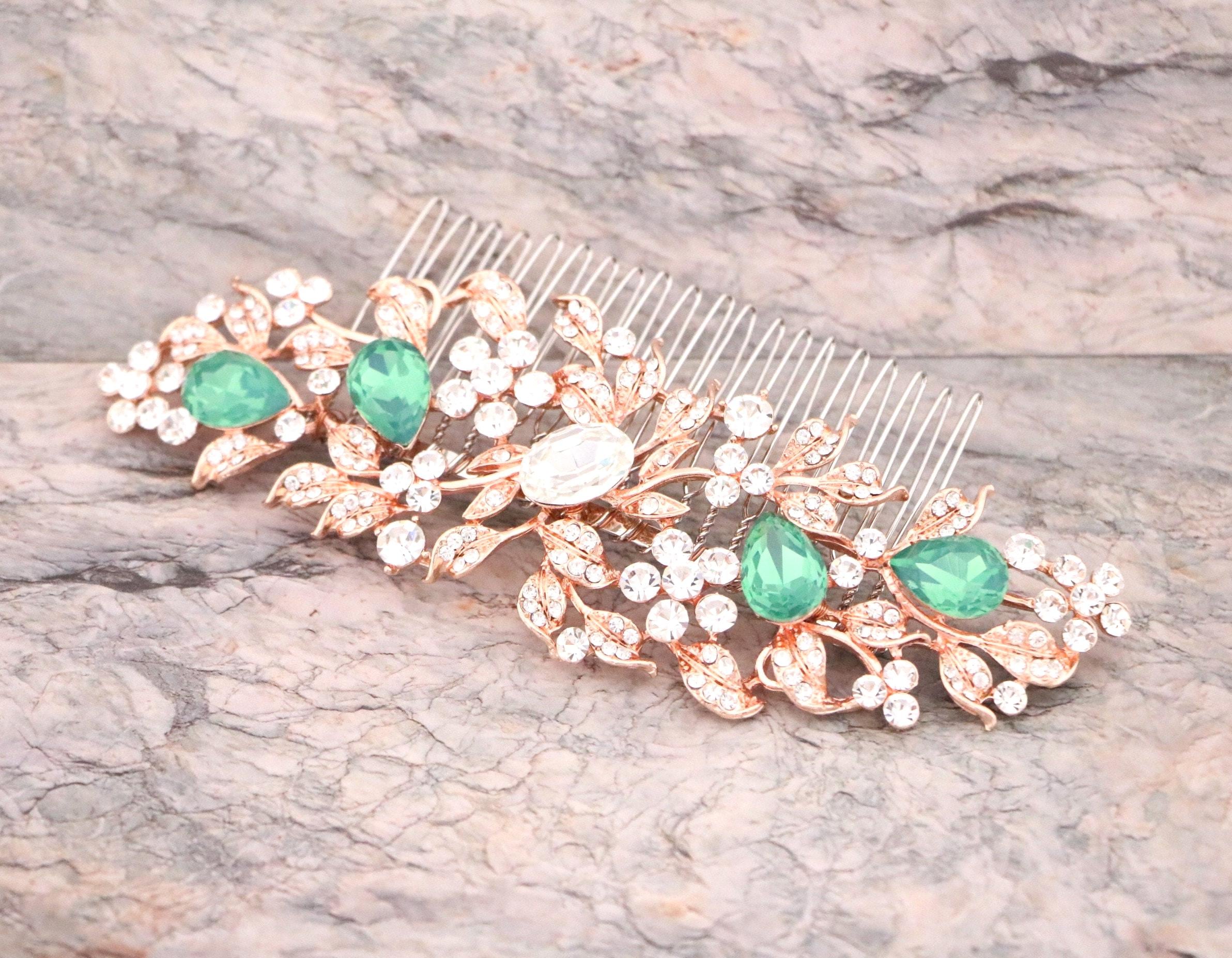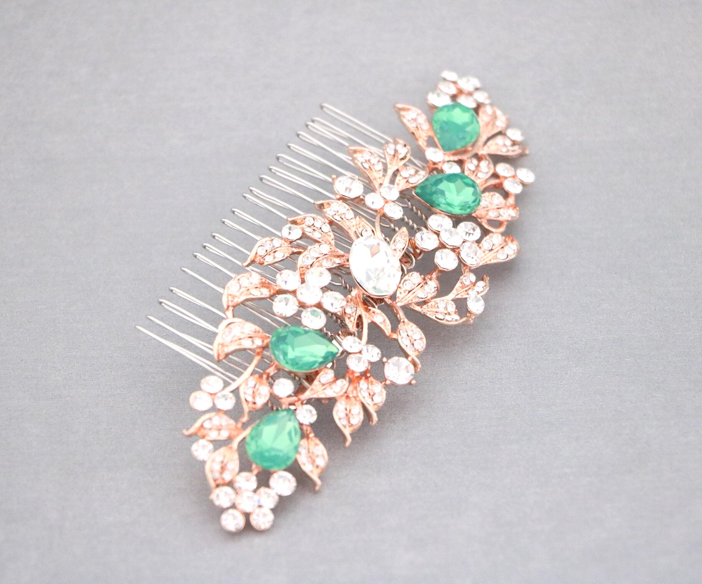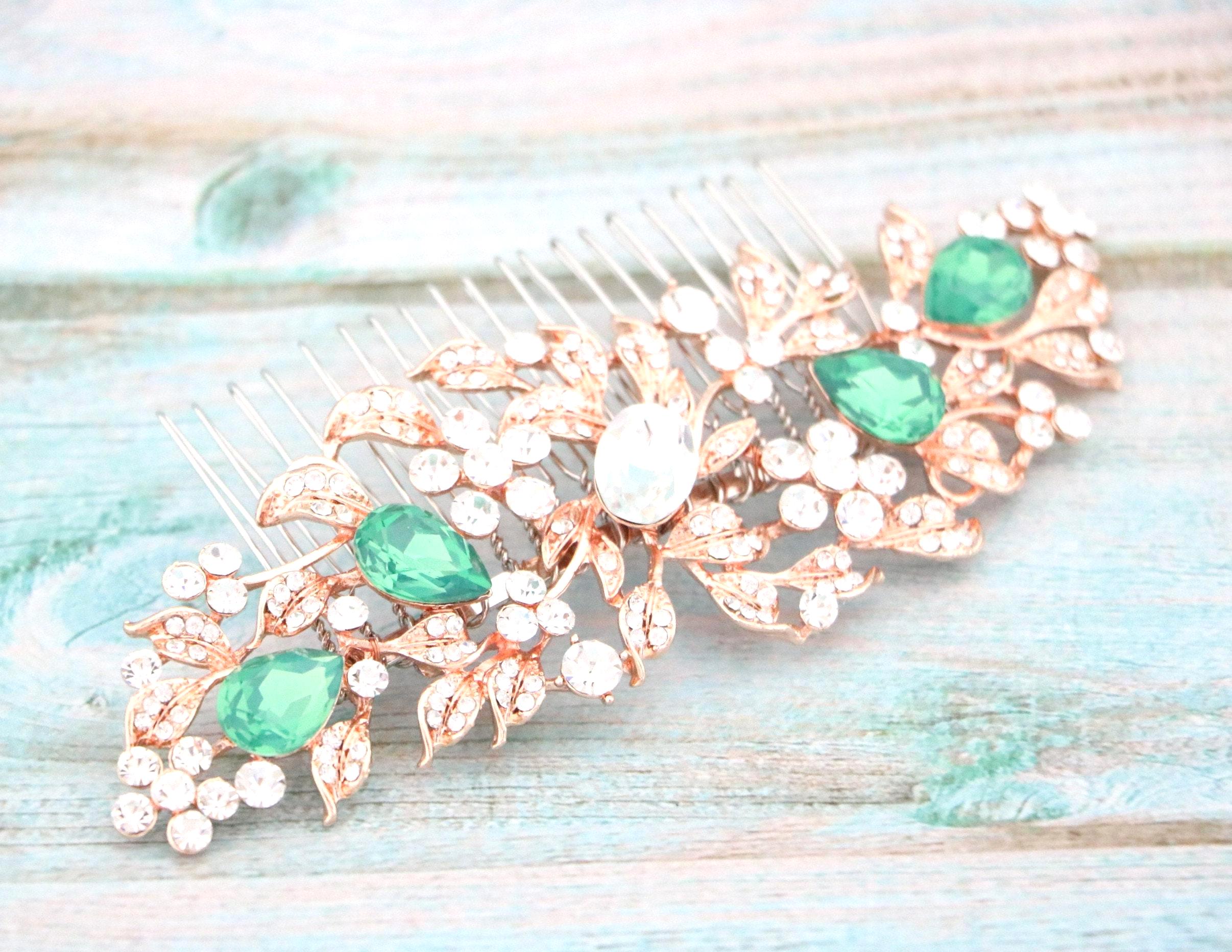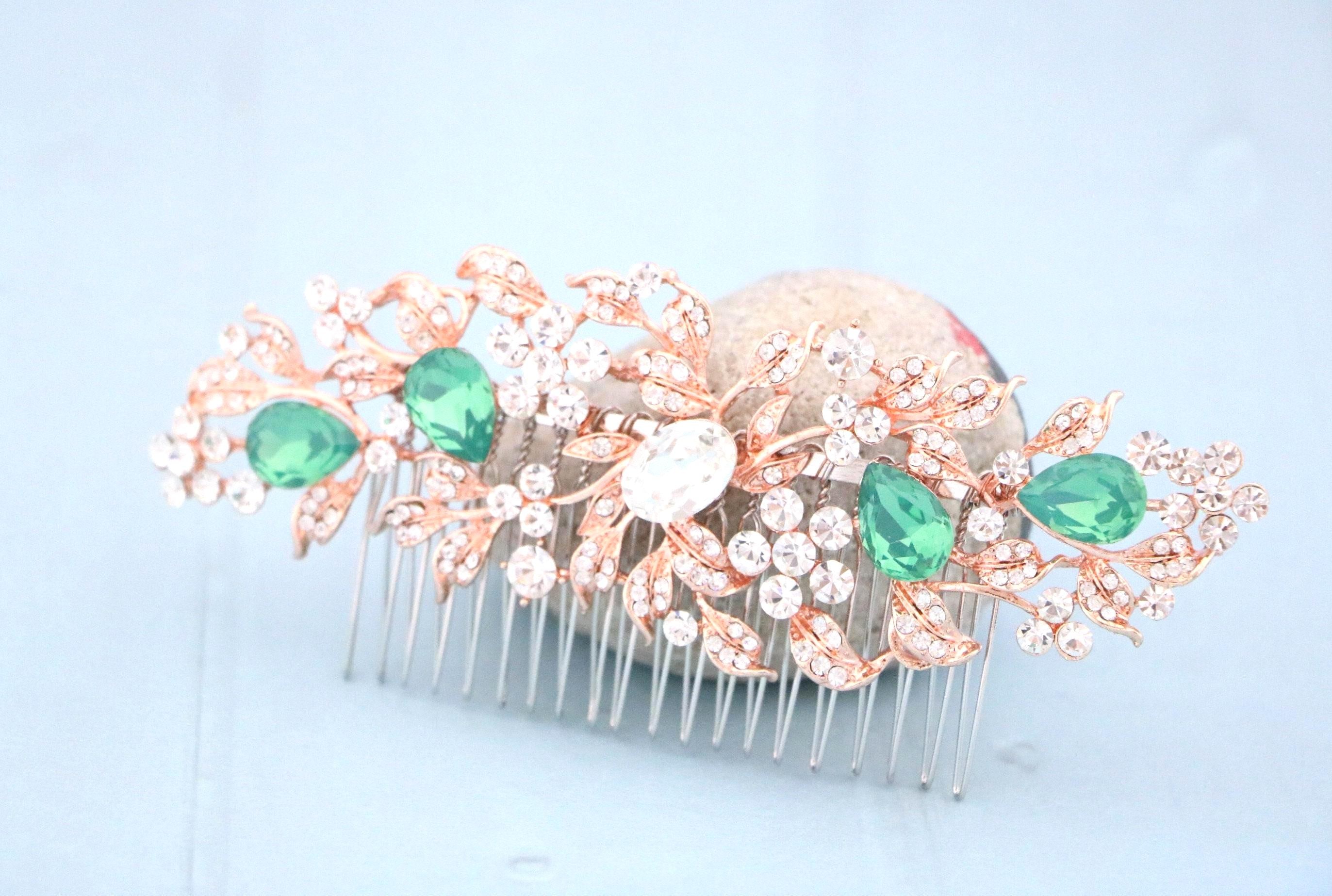 White opal Bridal hair comb, Rose gold hair comb, Crystal Bridal hair piece, Wedding hair accessory, Rose gold hair piece, Comb for Bride