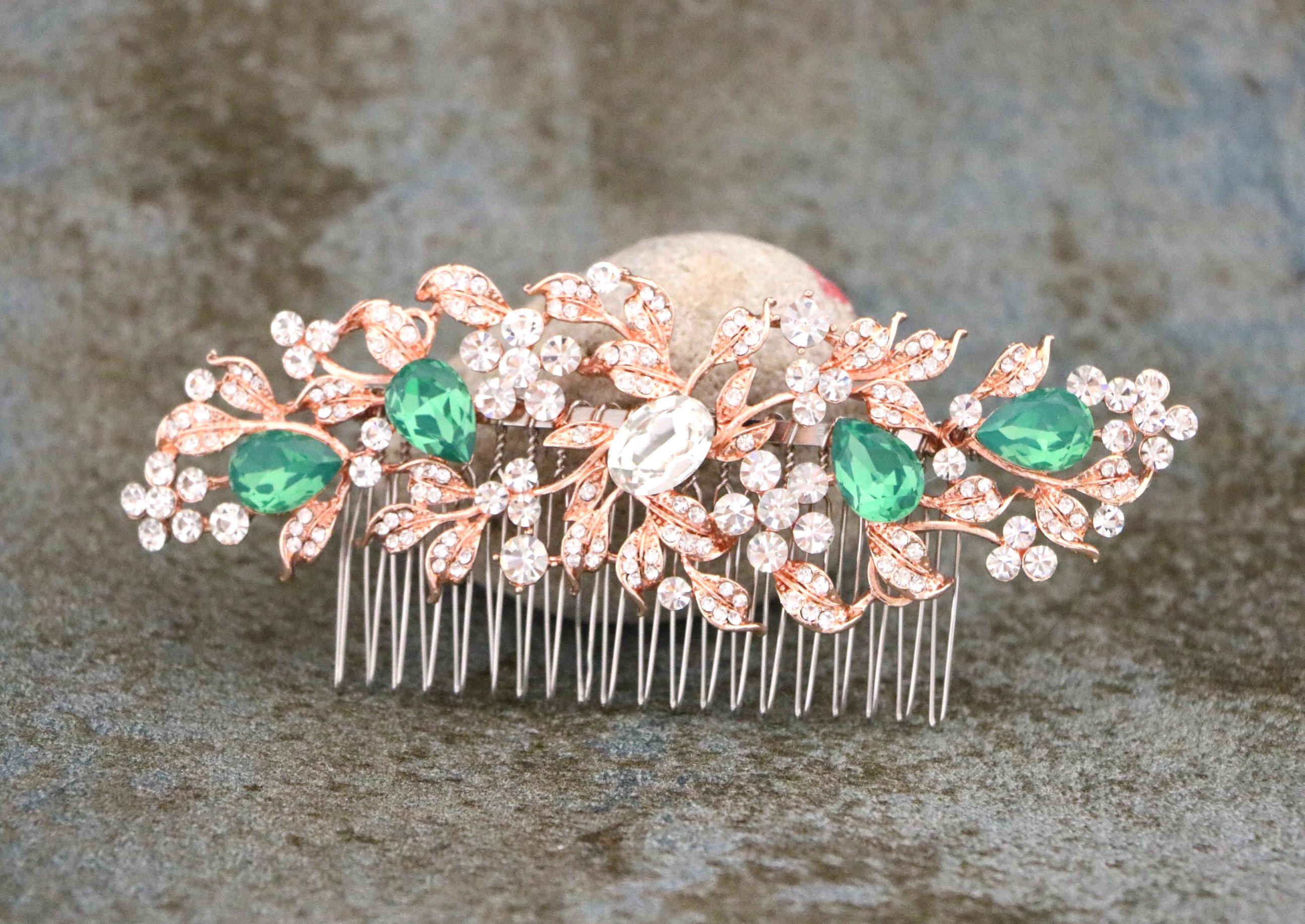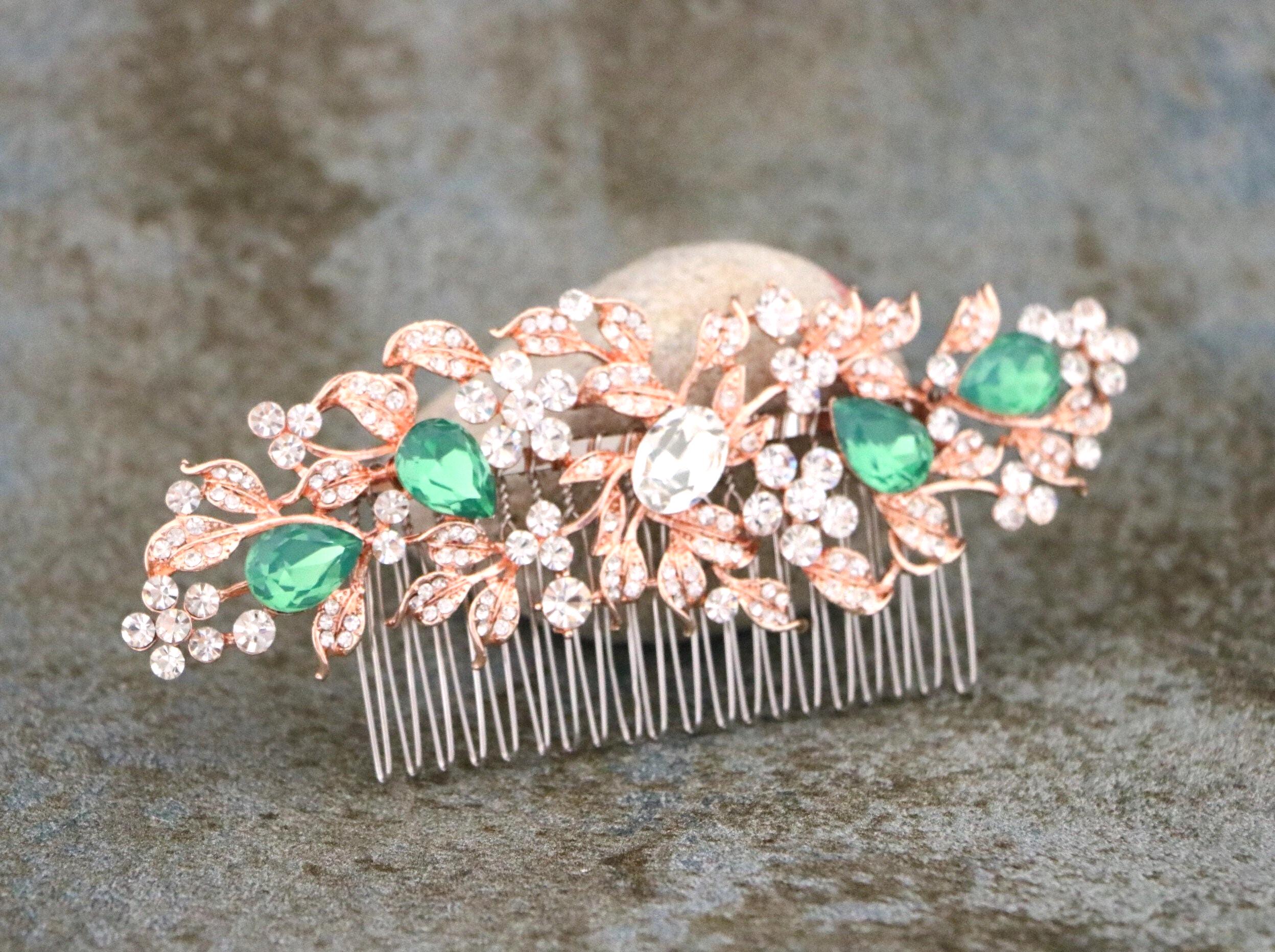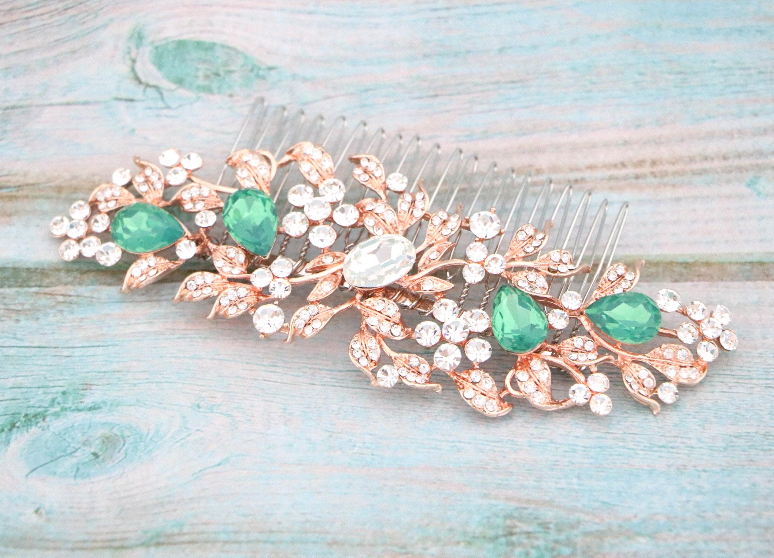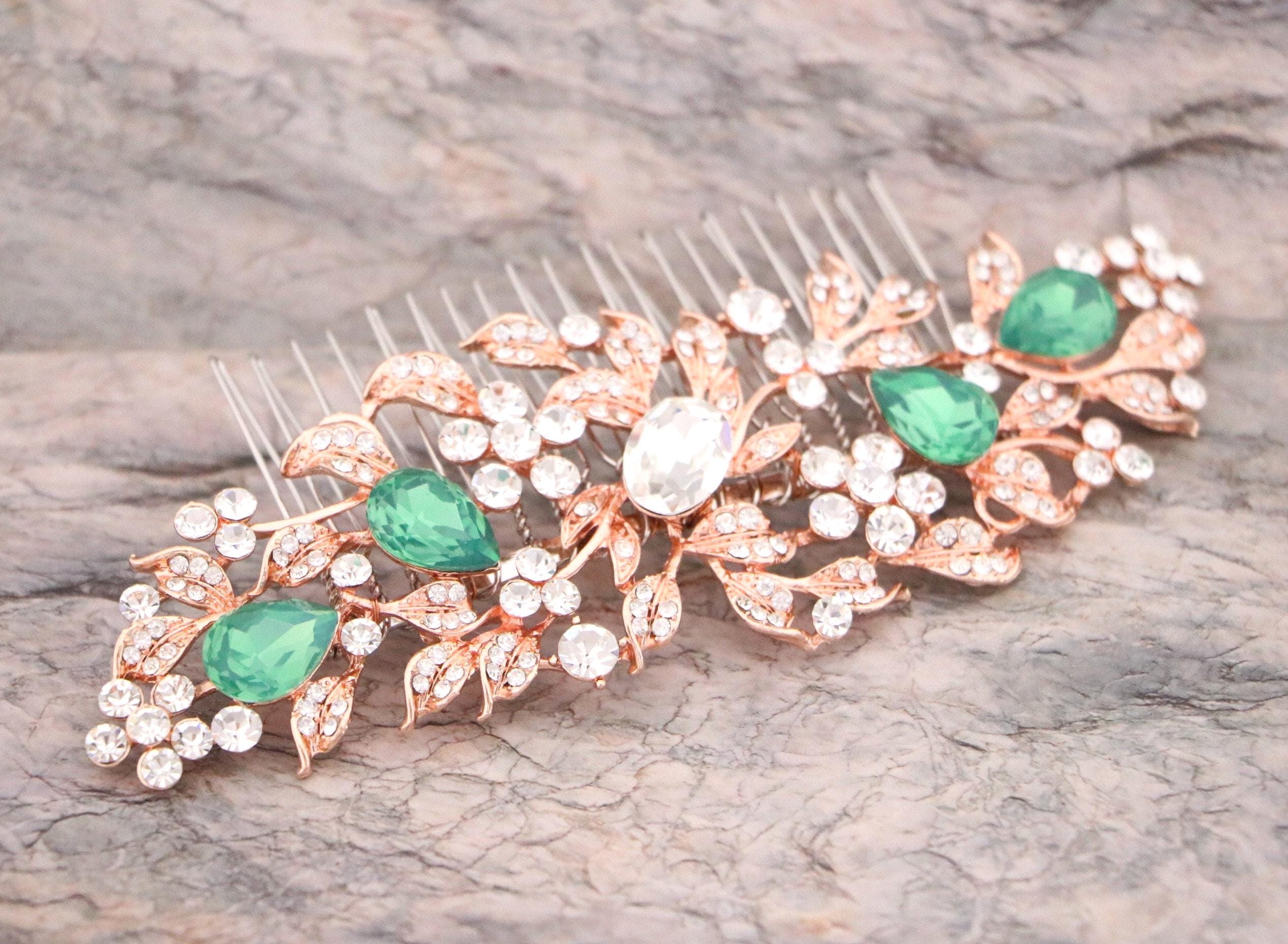 White opal Bridal hair comb, Rose gold hair comb, Crystal Bridal hair piece, Wedding hair accessory, Rose gold hair piece, Comb for Bride