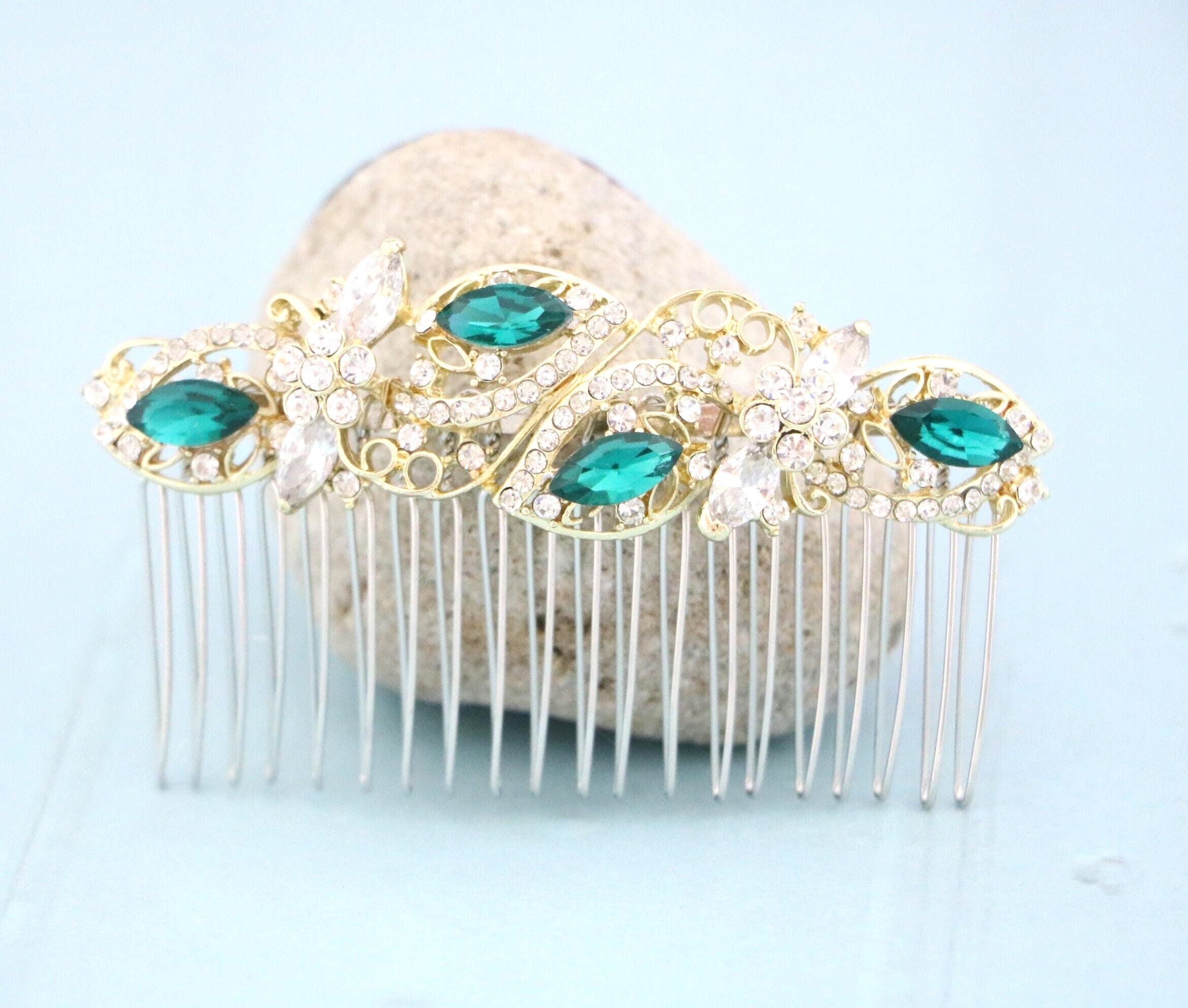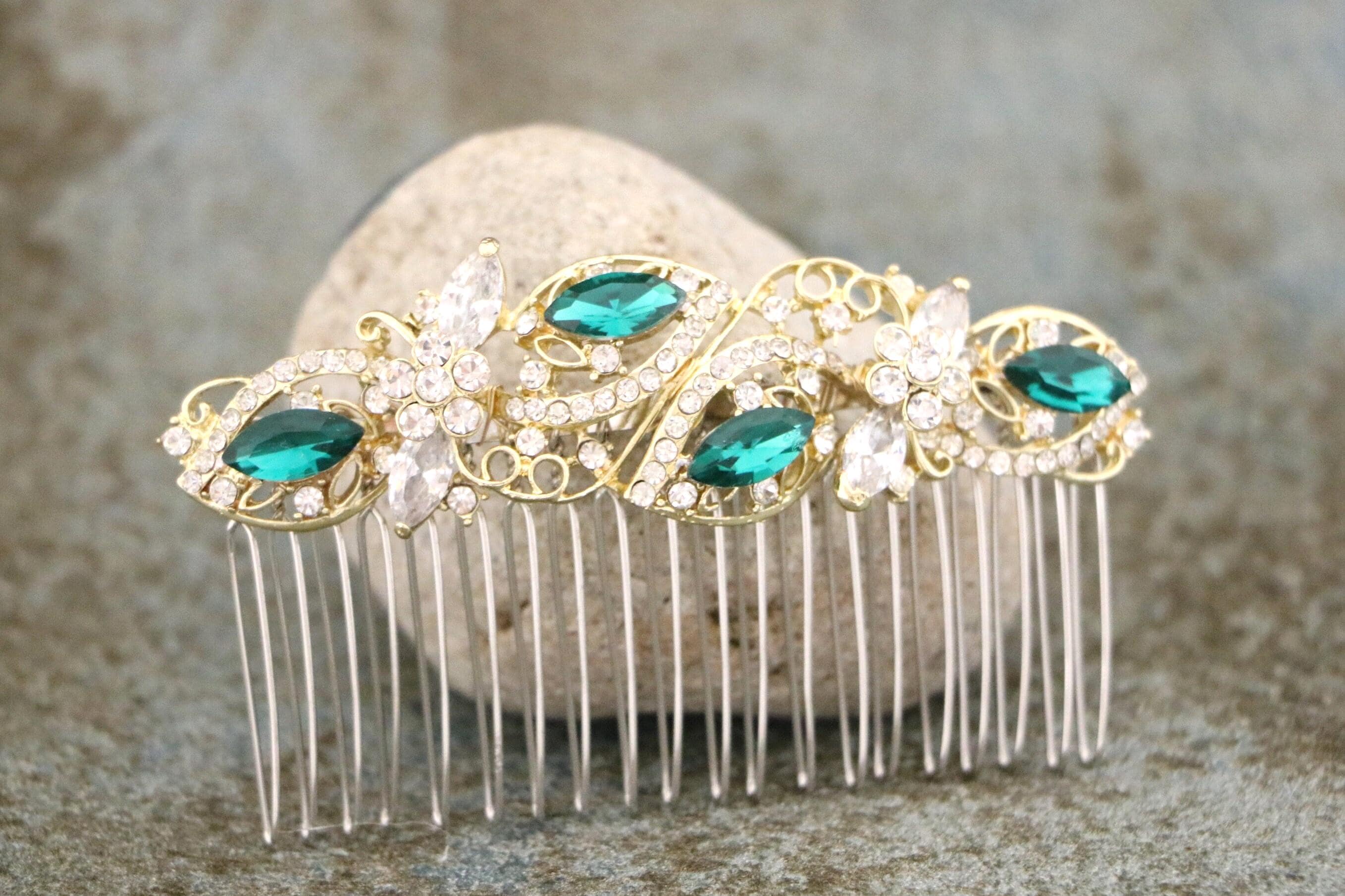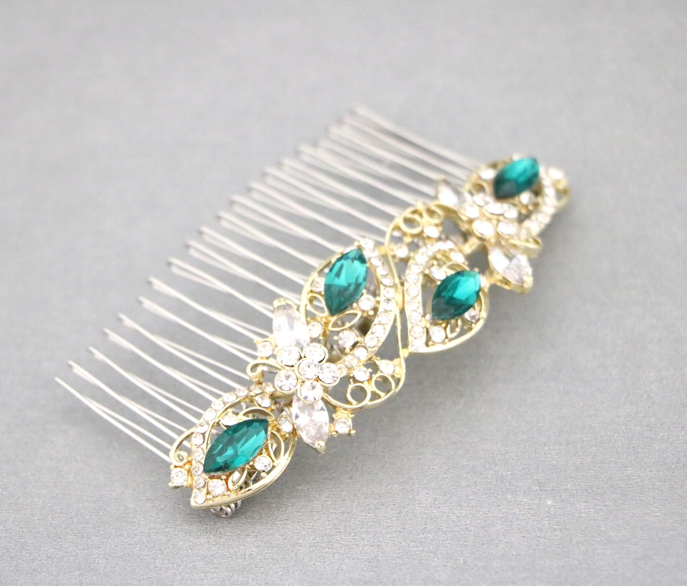 This beautiful Clear rhinestone and Sapphire crystal hair comb is a perfect compliment for the wedding party and can easily fit into any hairstyle. The Rhinestone part measured approximately 3.5 X 1 inch.