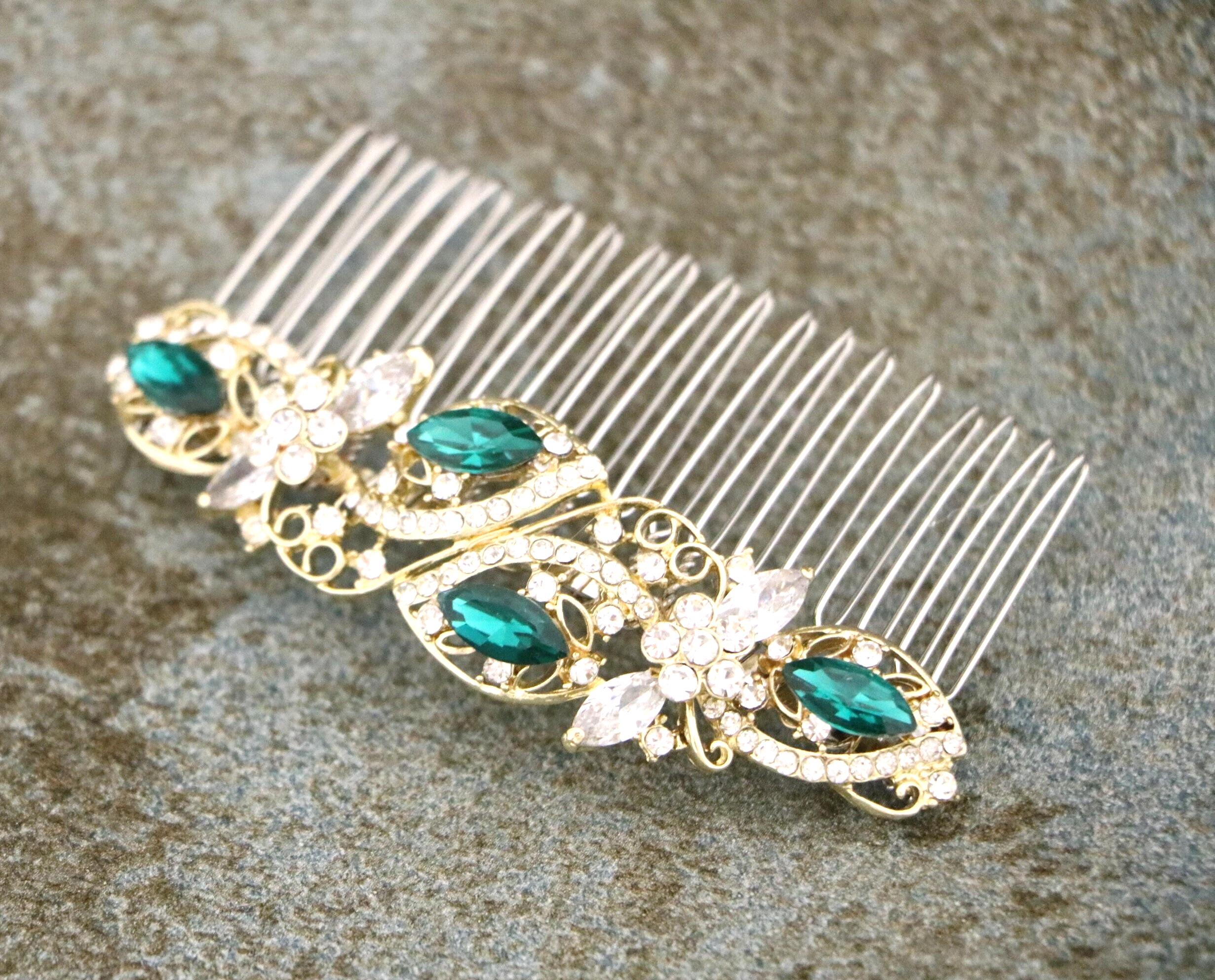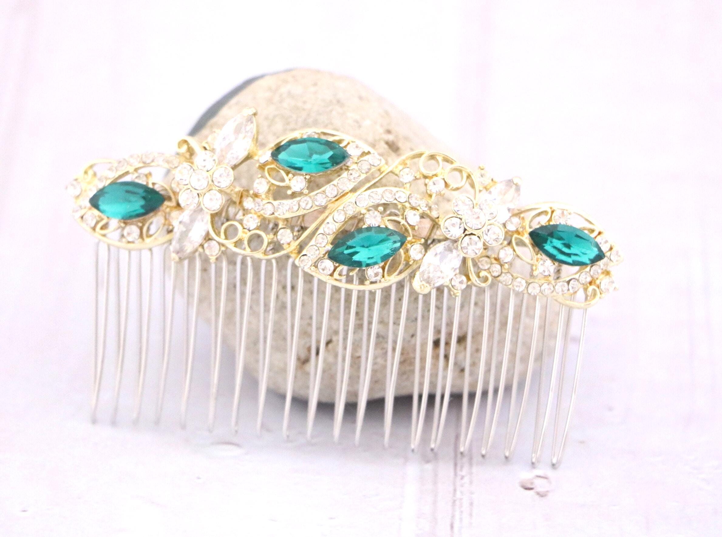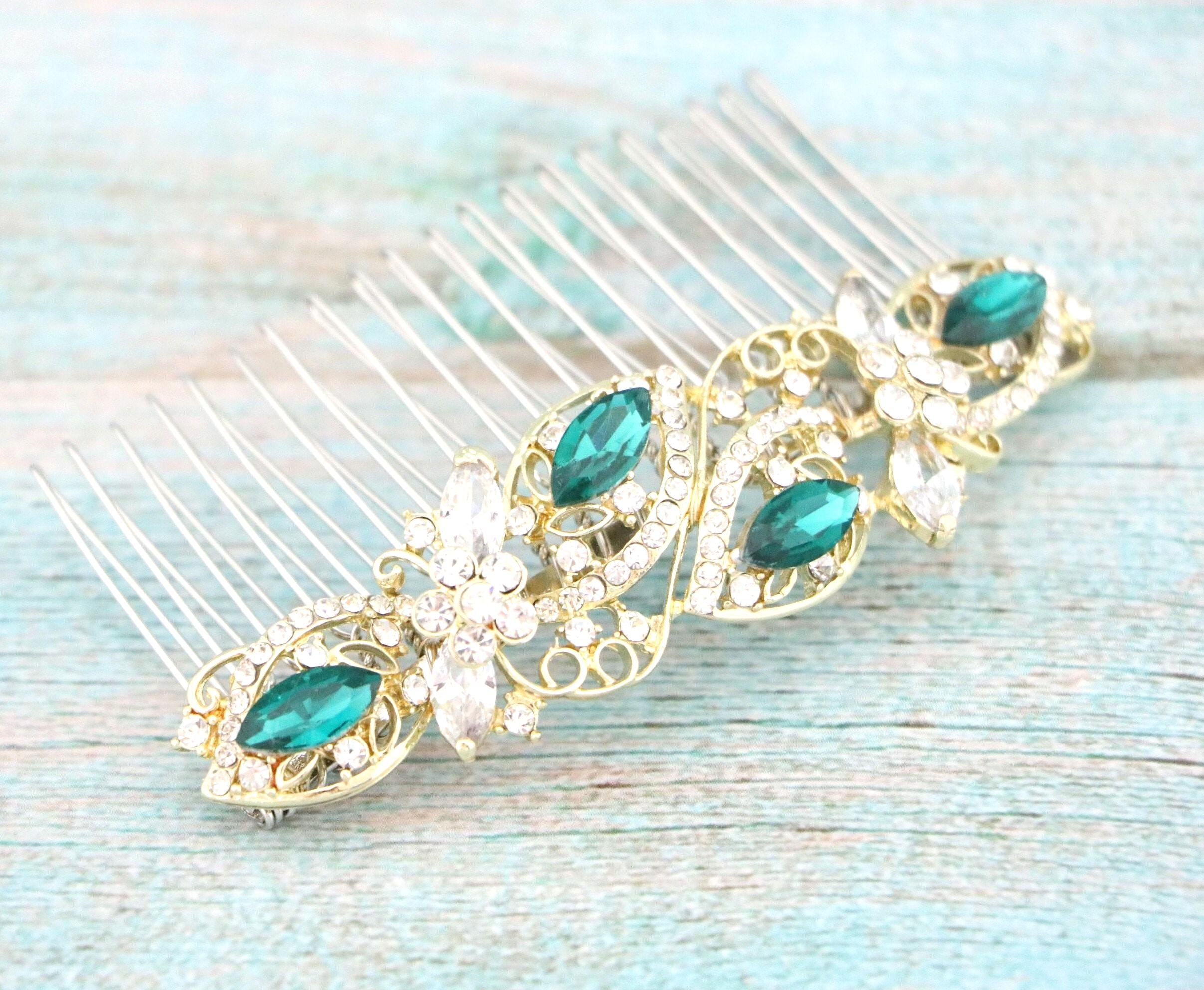 This beautiful Clear rhinestone and Sapphire crystal hair comb is a perfect compliment for the wedding party and can easily fit into any hairstyle. The Rhinestone part measured approximately 3.5 X 1 inch.