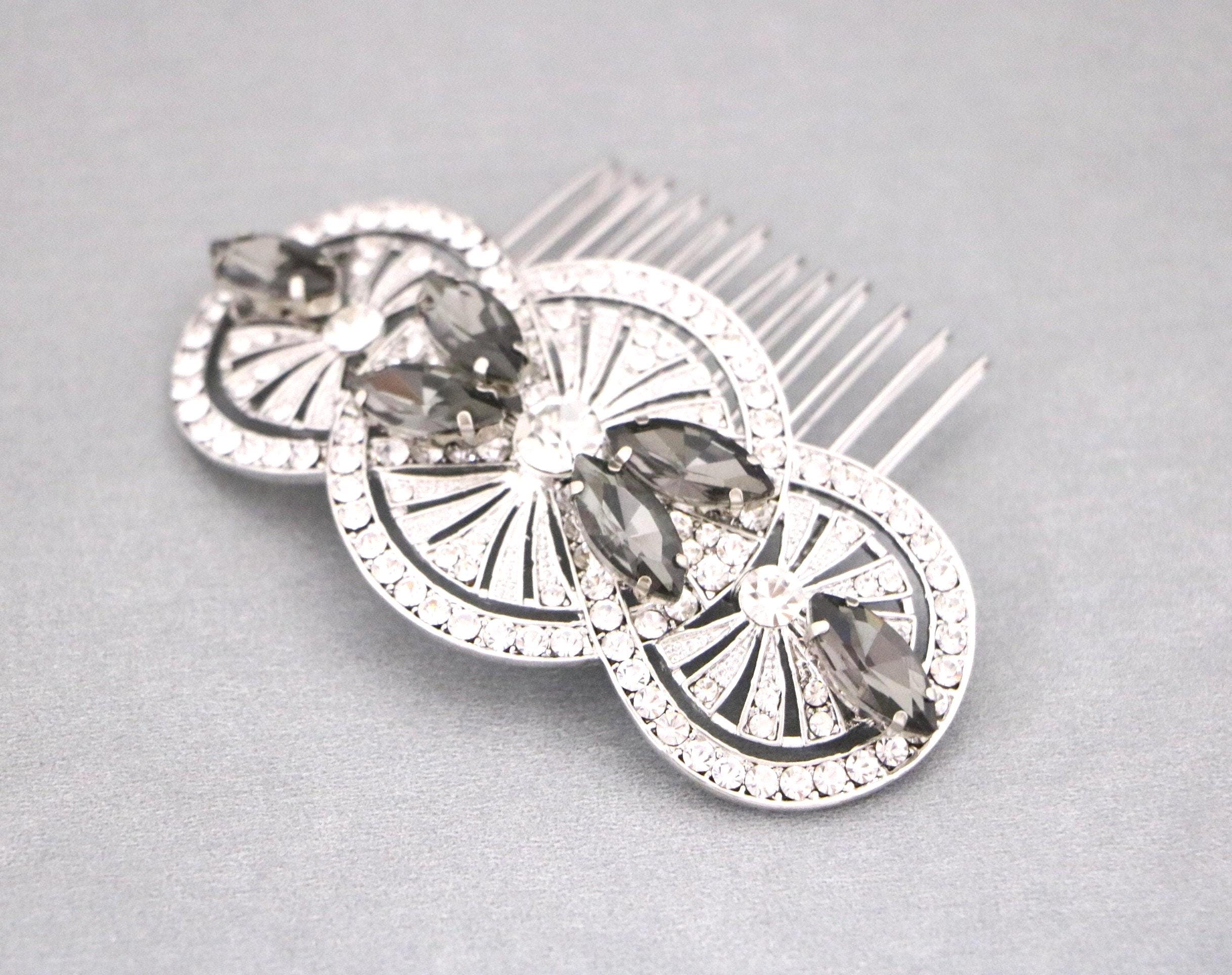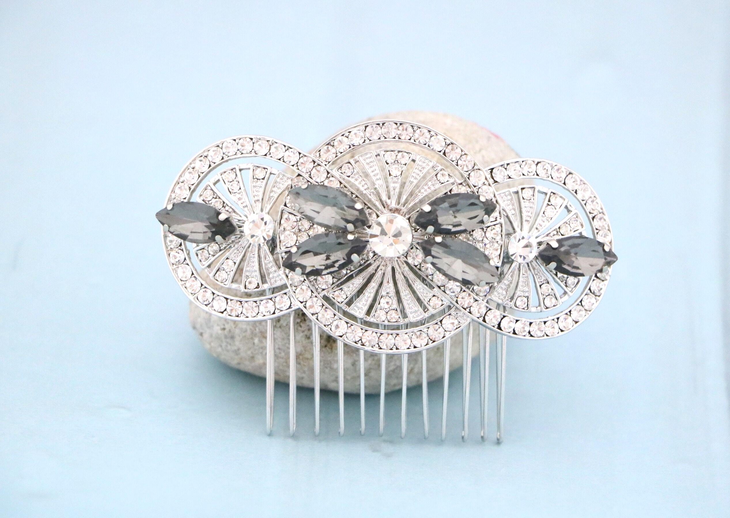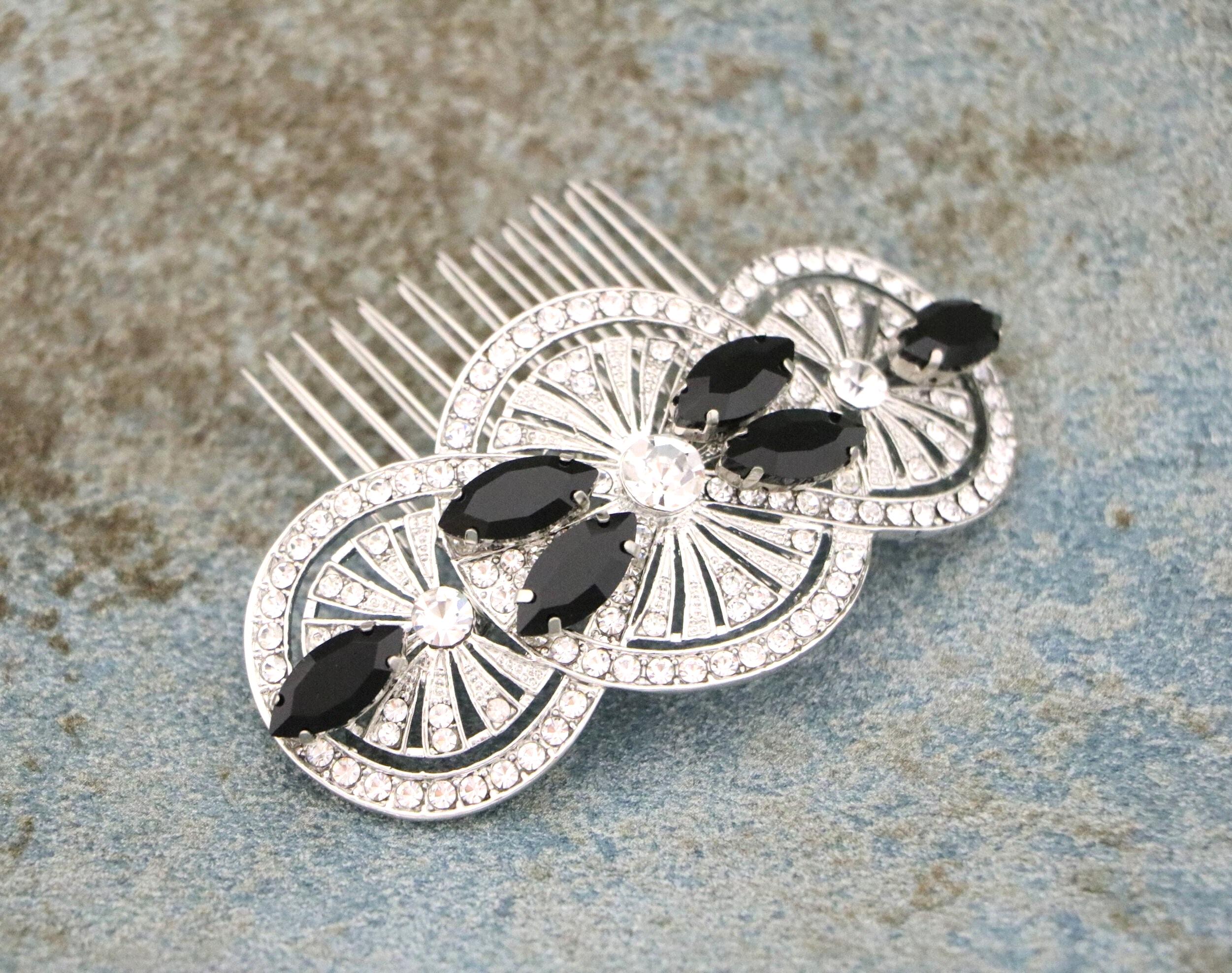 Black Crystal Comb, wedding hair comb, crystal rhinestone hair comb wedding headpieces, Jet Black Crystal Comb