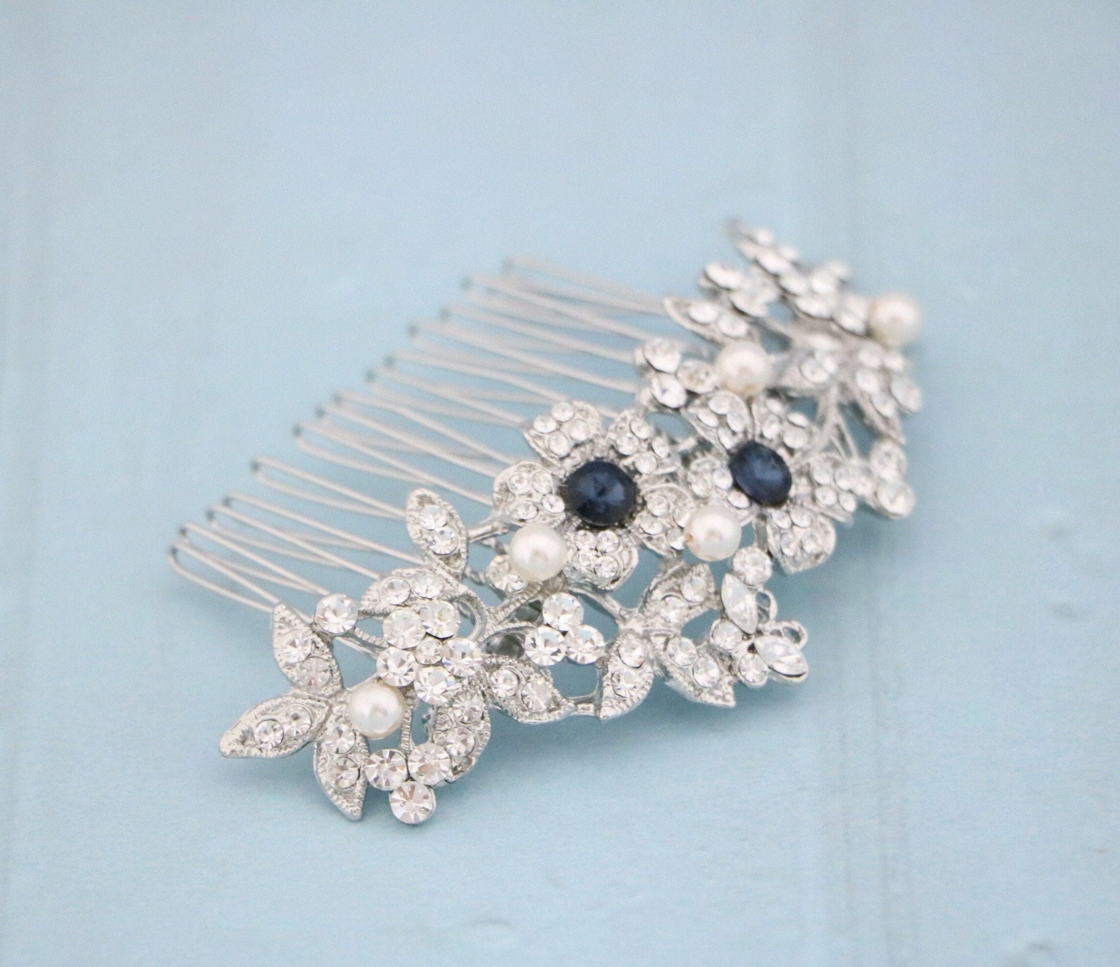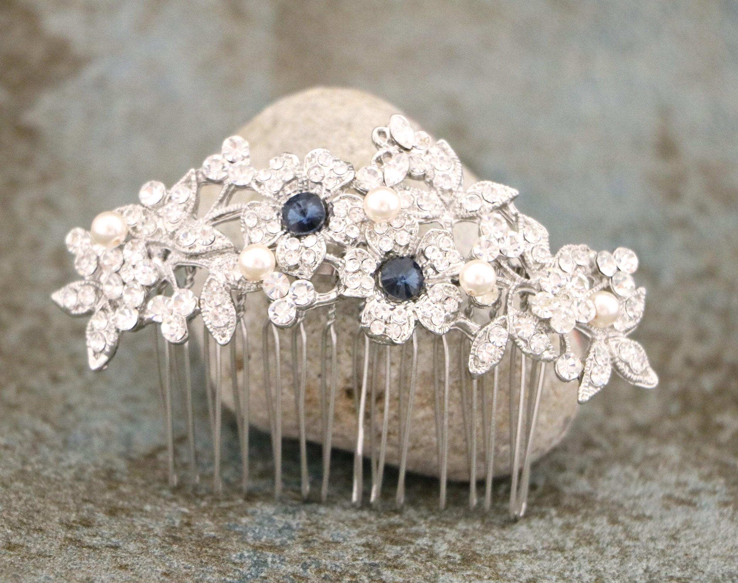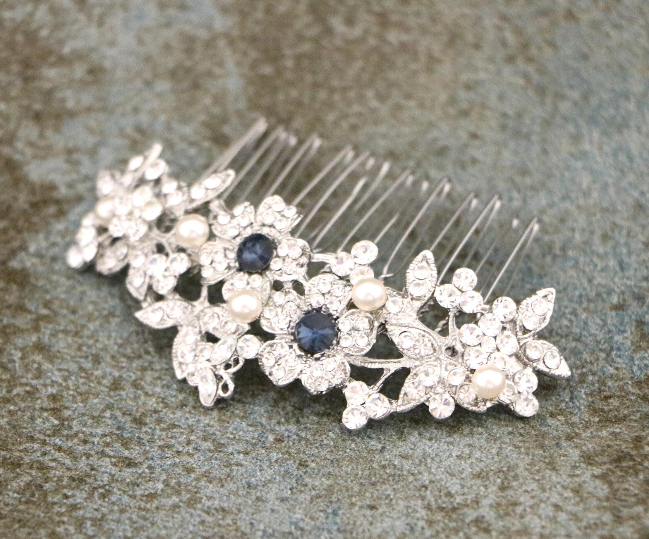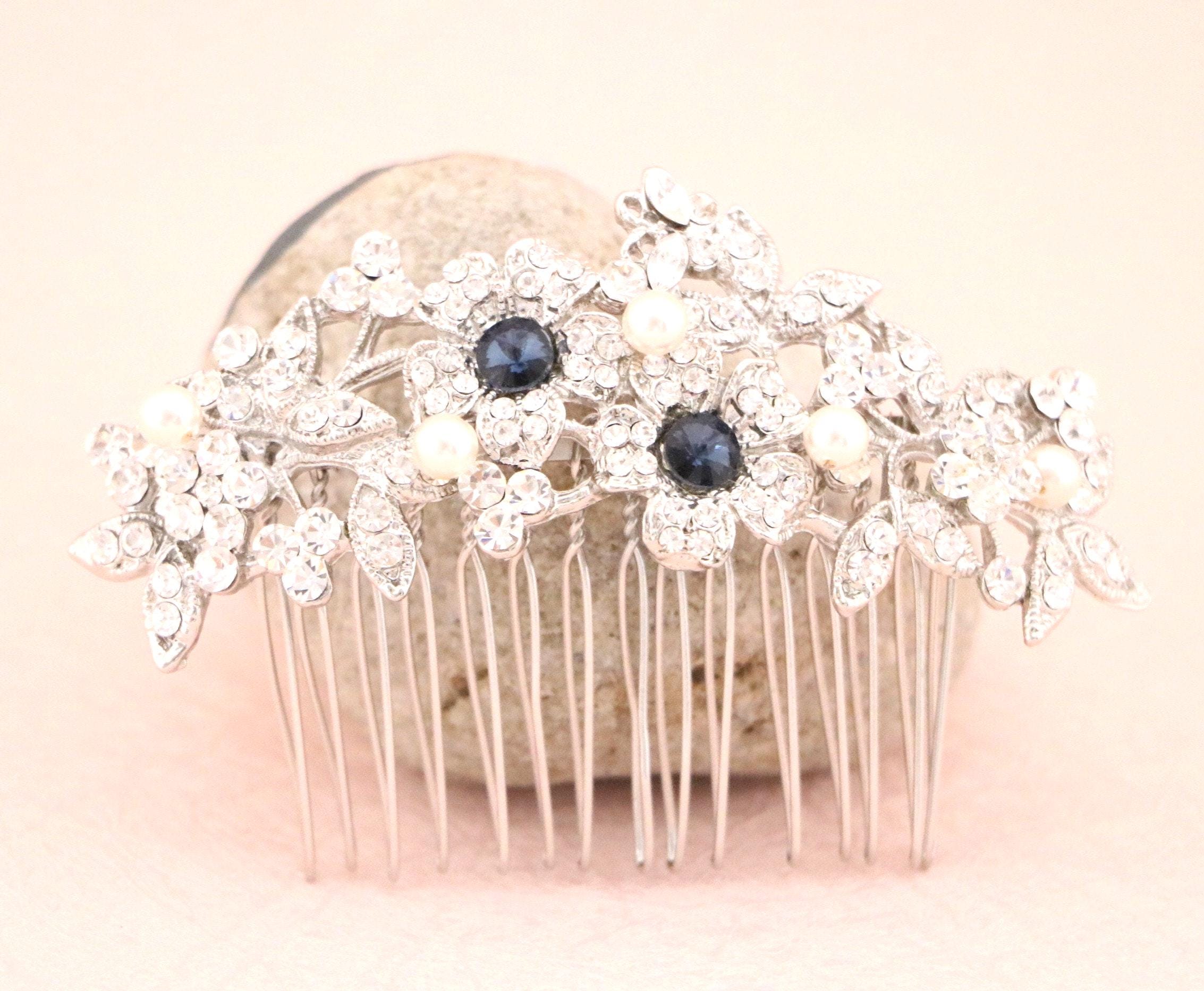 Bridal Hair Comb for a Bride, Something blue, Blue Sapphire Hair Comb, Hair Jewelry, Wedding accessories, Crystal hair piece