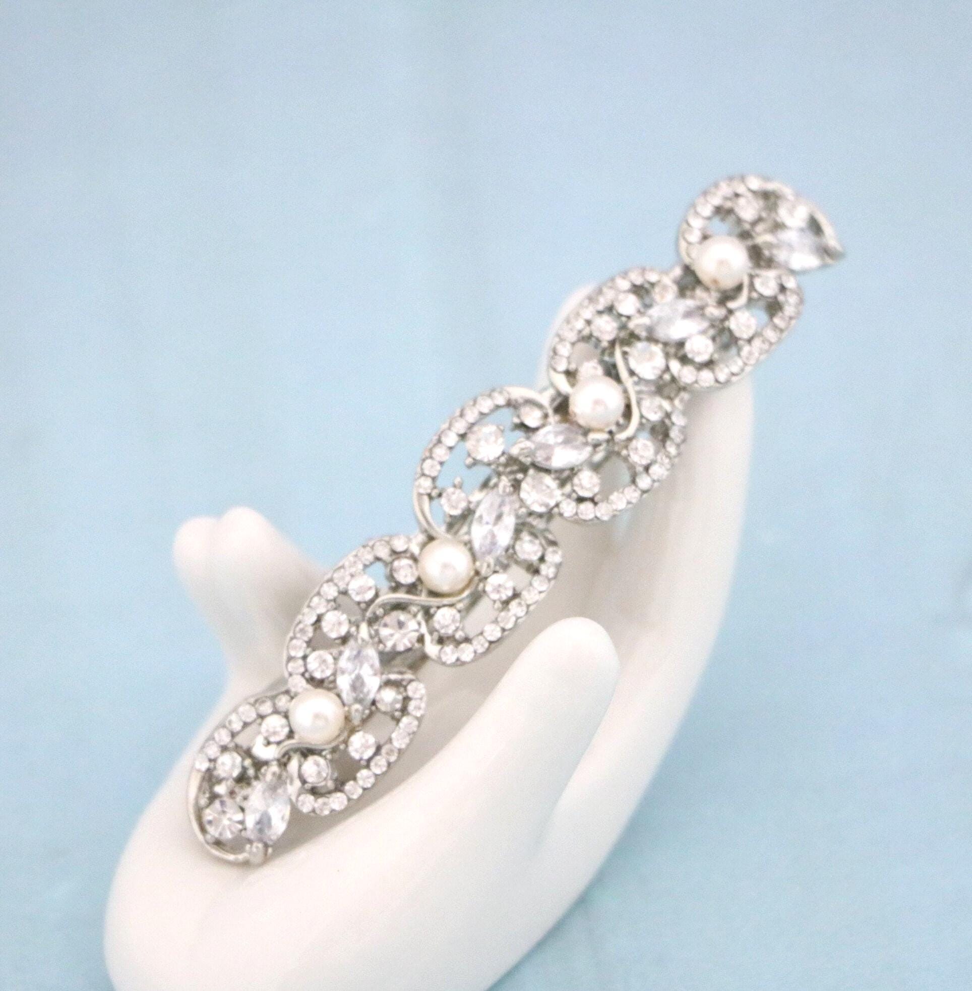 Bridal Rhinestone Crystal Barrette, Bridal Comb Crystal, Wedding Crystal Hair Comb, Hair Barrette, Wedding Accessory, Giselle Barrette Clip Pearl drop bridal earrings Wedding pearl earrings Swarovski pearl earrings