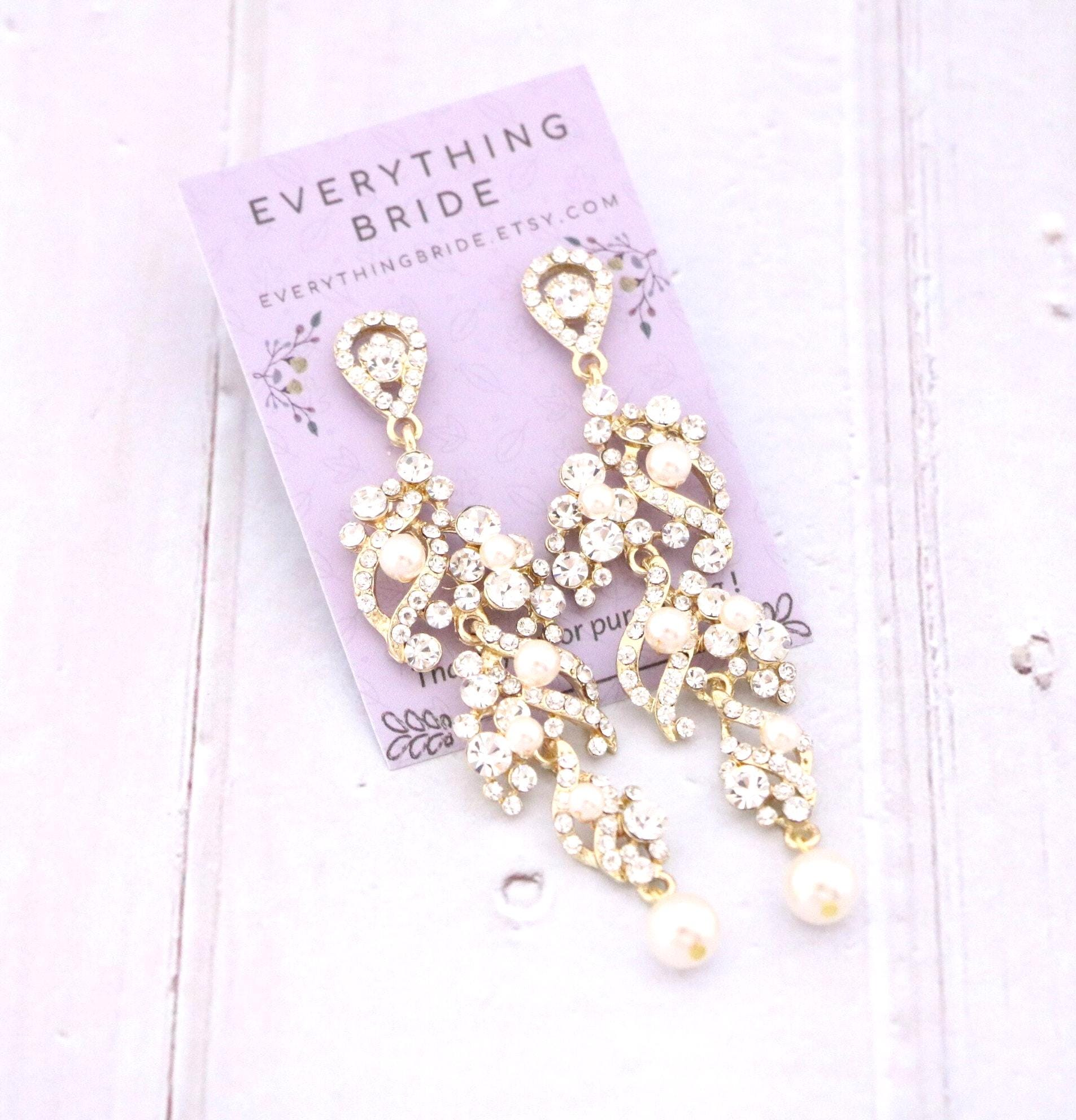 This vintage inspired stunning Pearl and Rhinestone earring is beautiful addition to your wedding day.