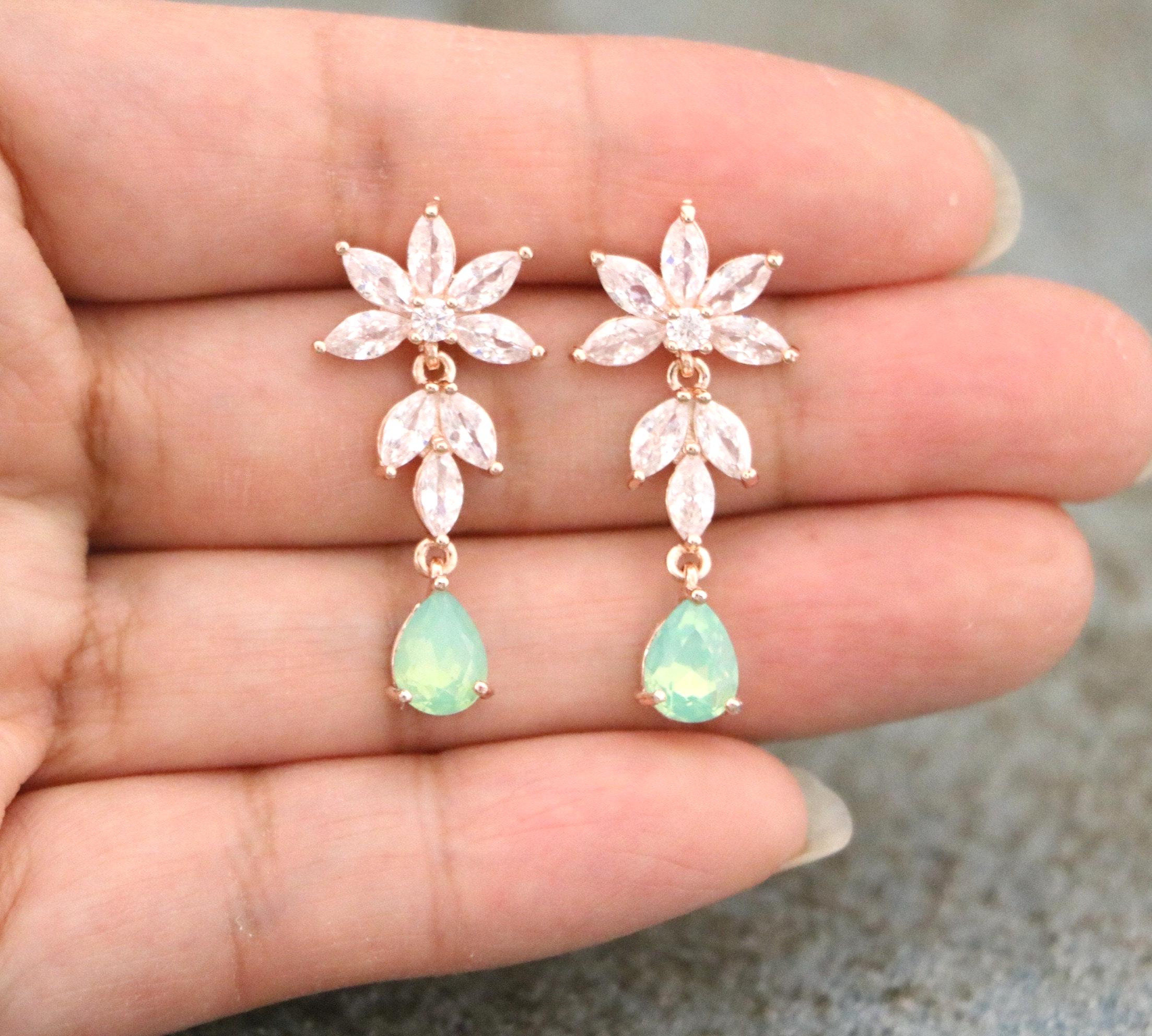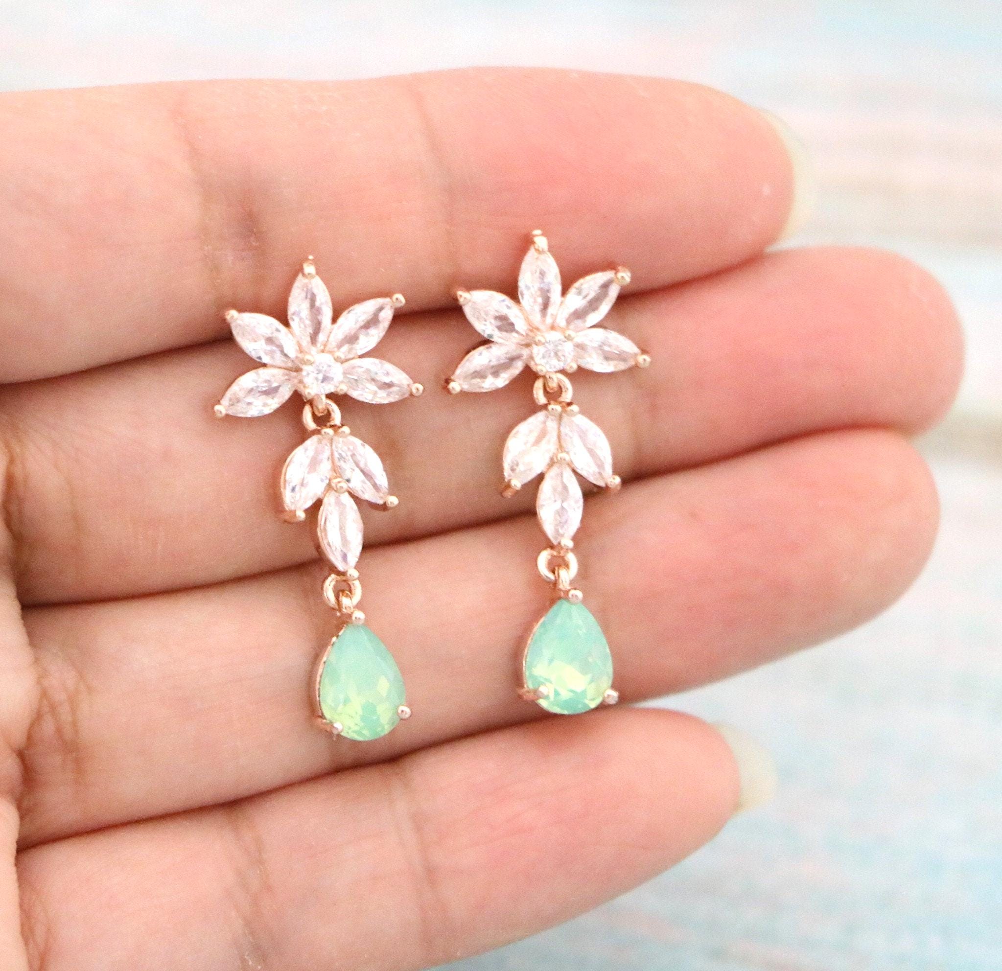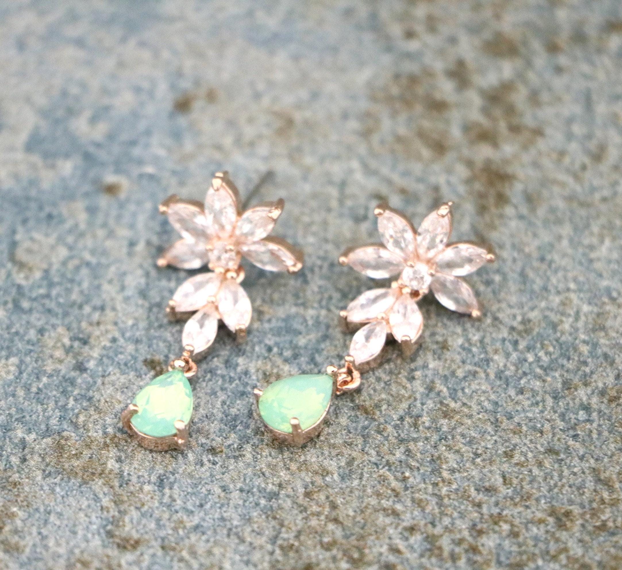 Bridal earrings stud,Opal Crystal earrings,Opal Wedding jewelry,White opal earrings,Bridesmaid earrings,Cluster earring,Crystal earrings
