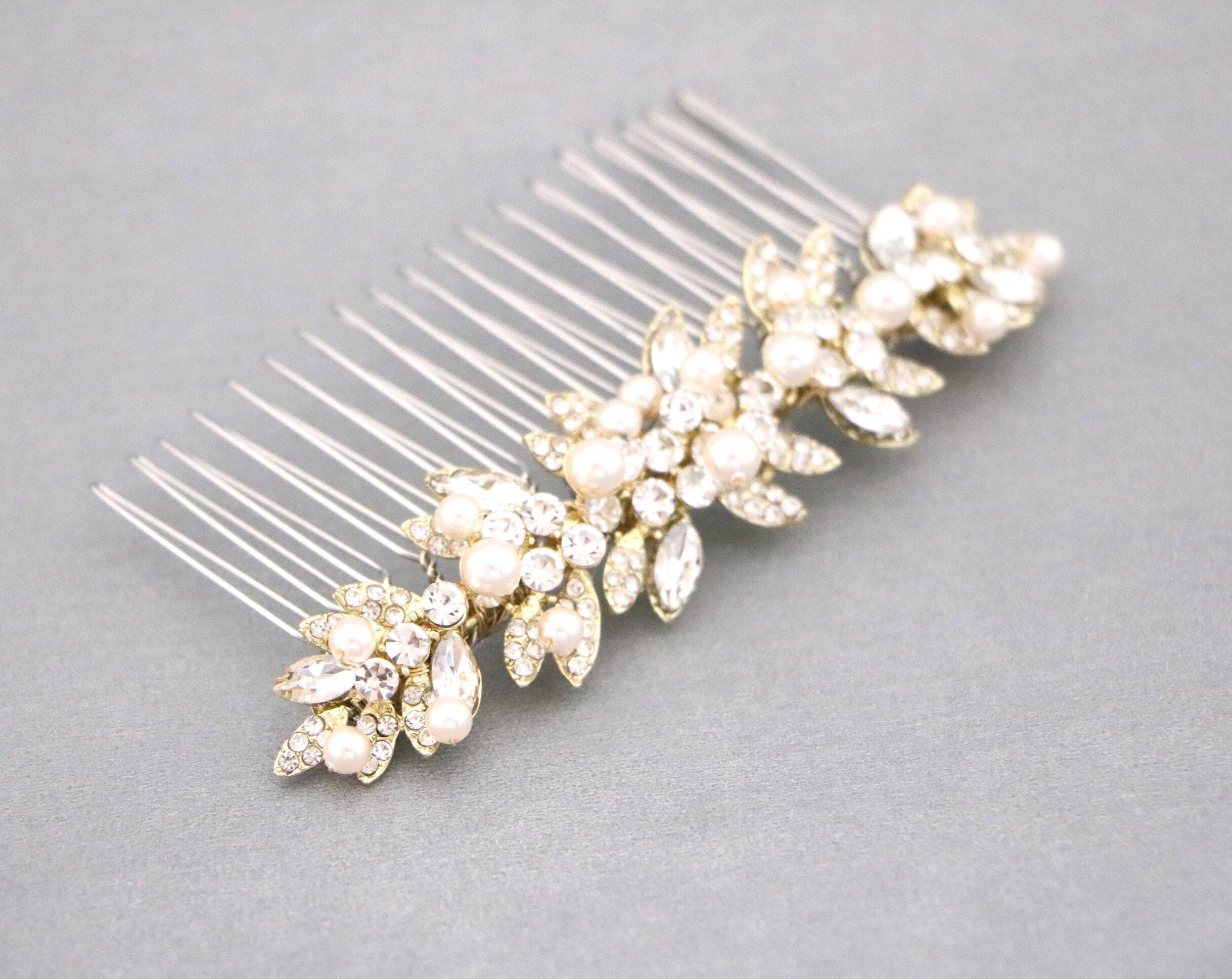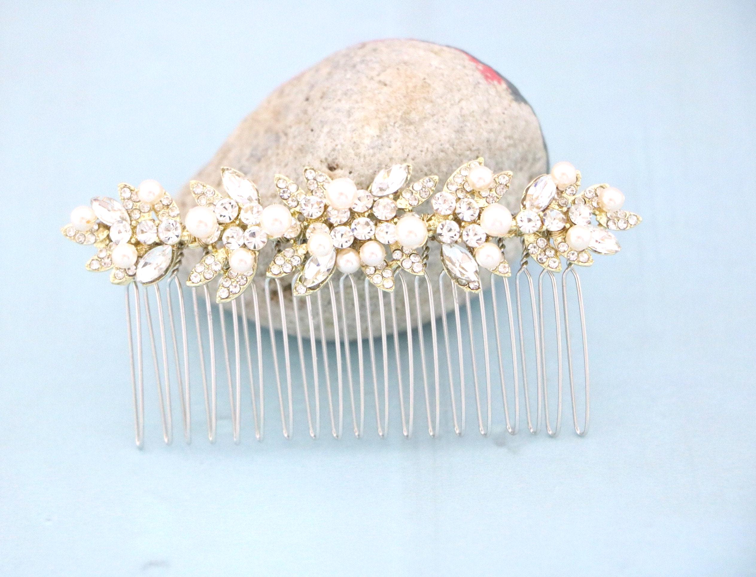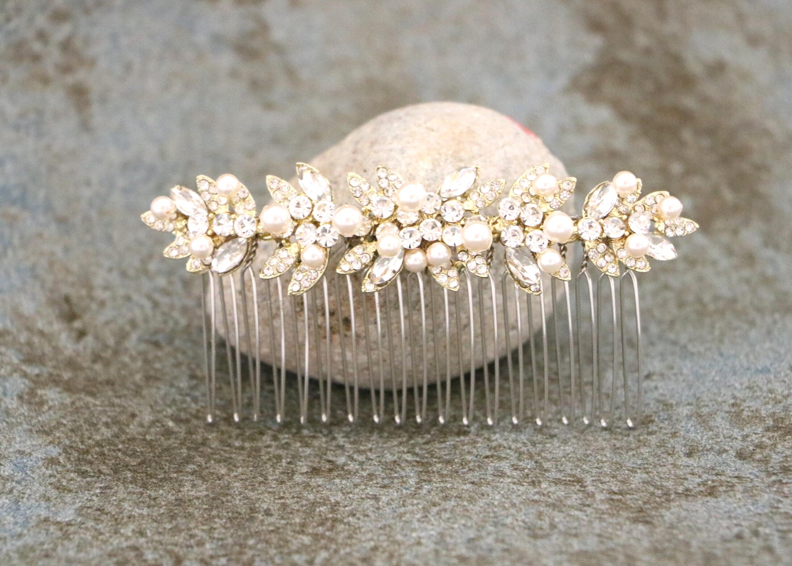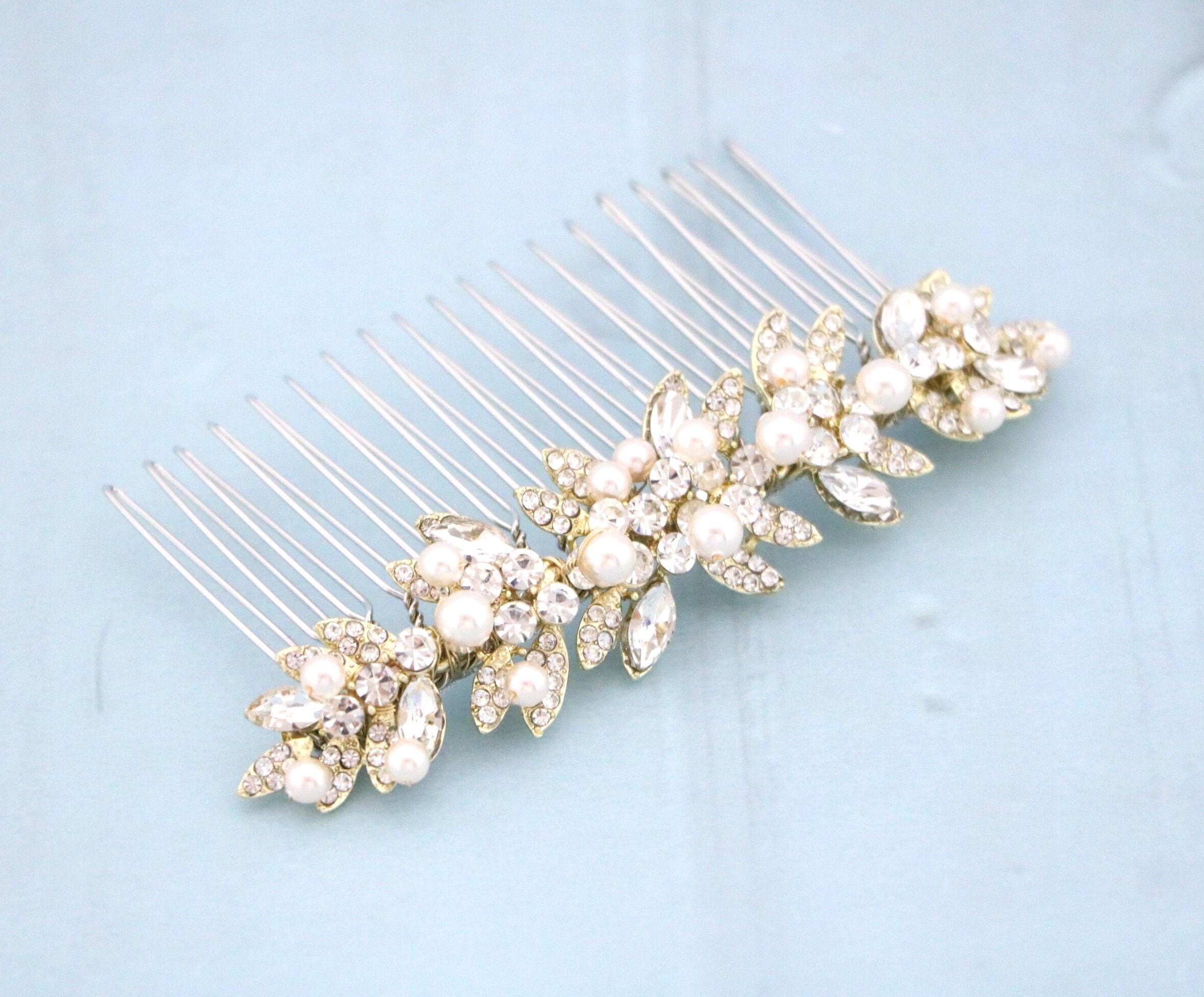 This beautiful Clear rhinestone and Montana Crystal hair comb is a perfect compliment for the wedding party and can easily fit into any hair style. The Rhinestone part measured approximately 3.75 X 1 inches.
