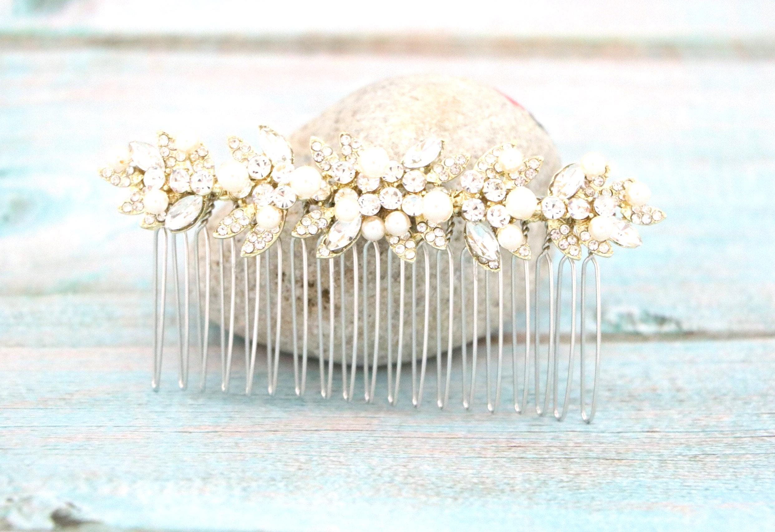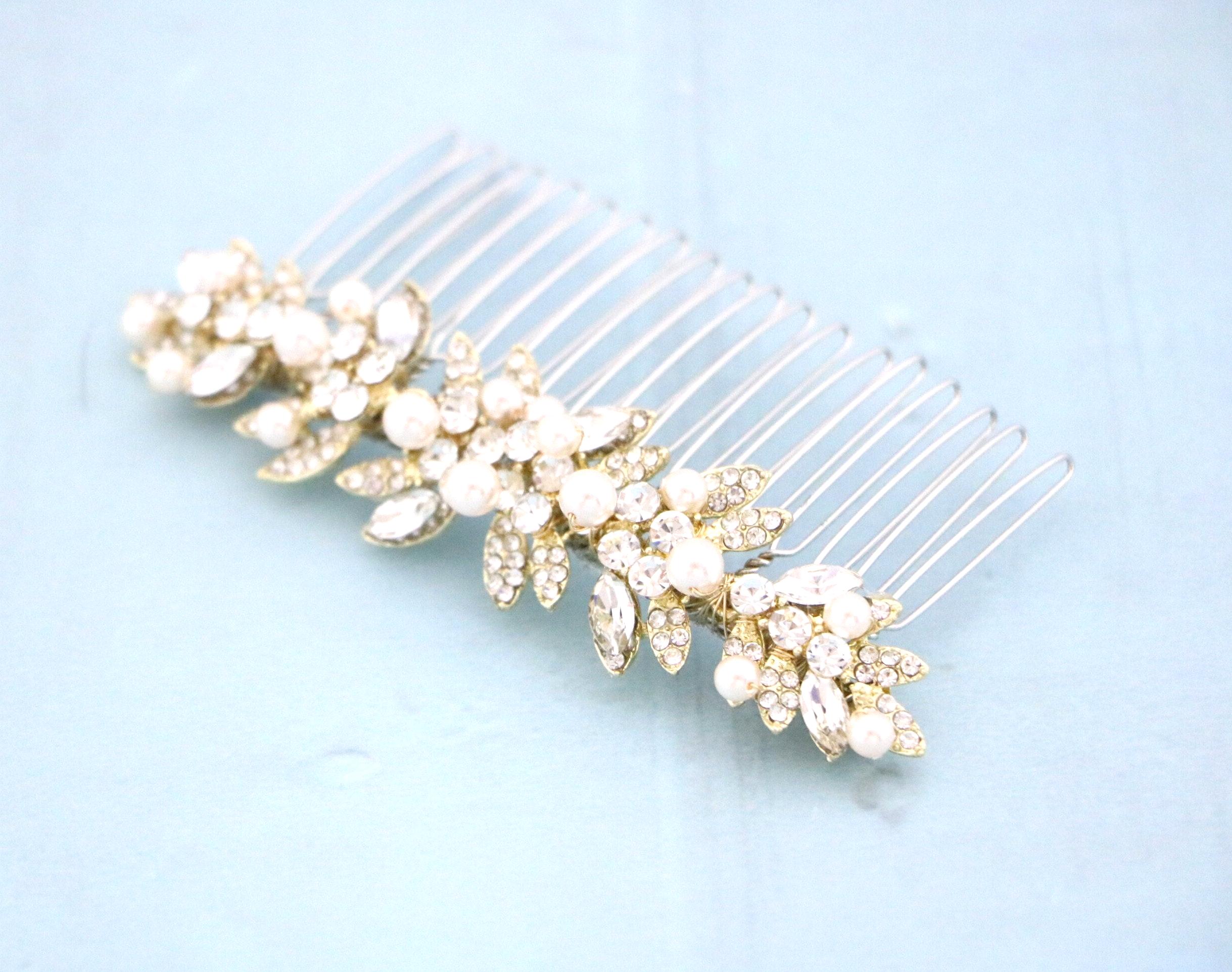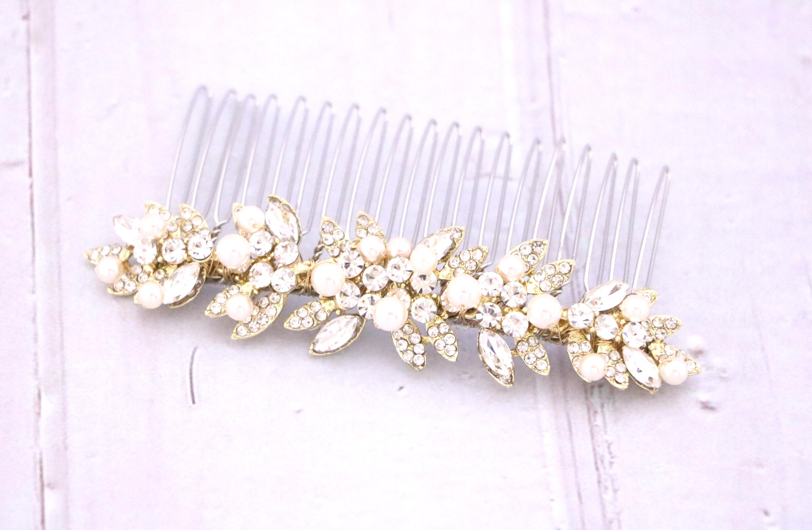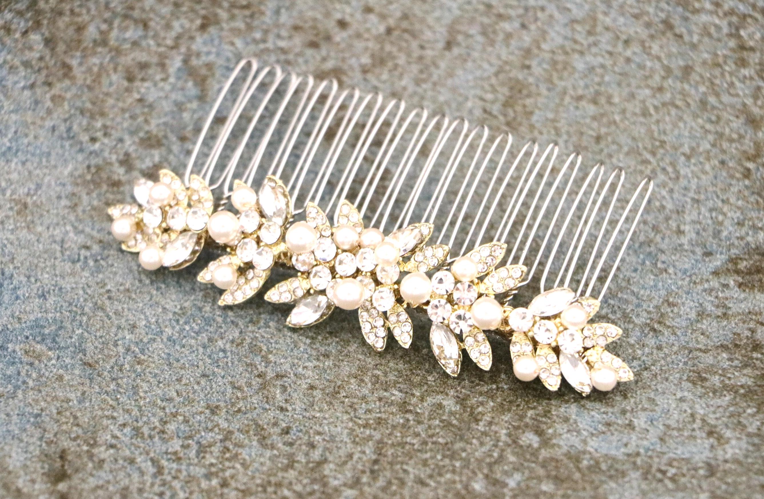 This beautiful Clear rhinestone and Montana Crystal hair comb is a perfect compliment for the wedding party and can easily fit into any hair style. The Rhinestone part measured approximately 3.75 X 1 inches.