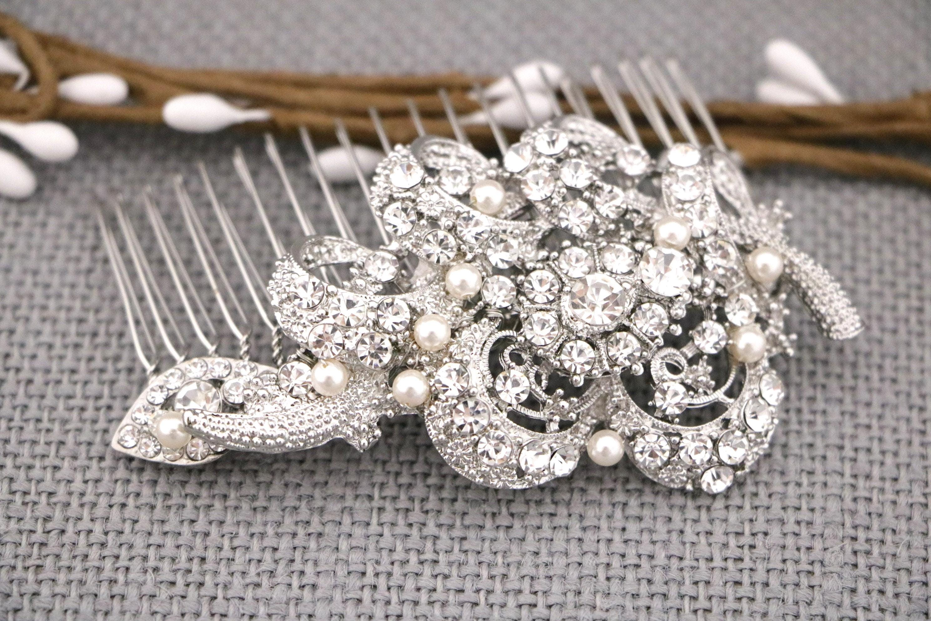 Vintage Inspired Pearls bridal hair comb, Swarovski pearl hair comb, wedding hair comb, bridal hair accessories, wedding hair accessories