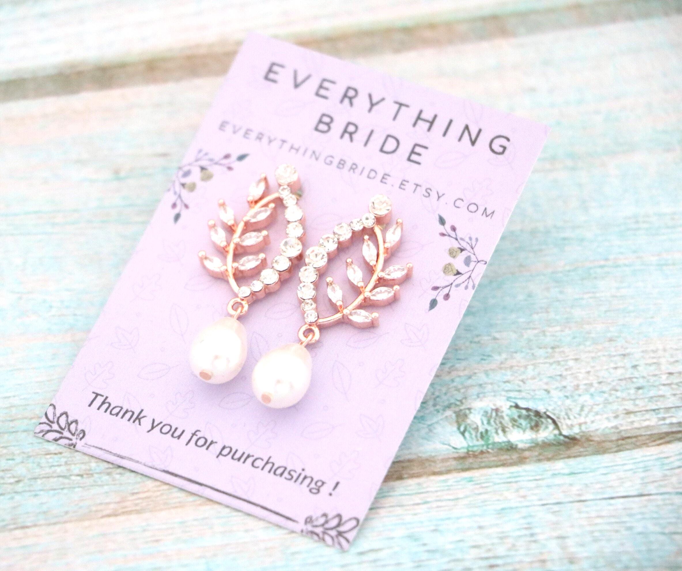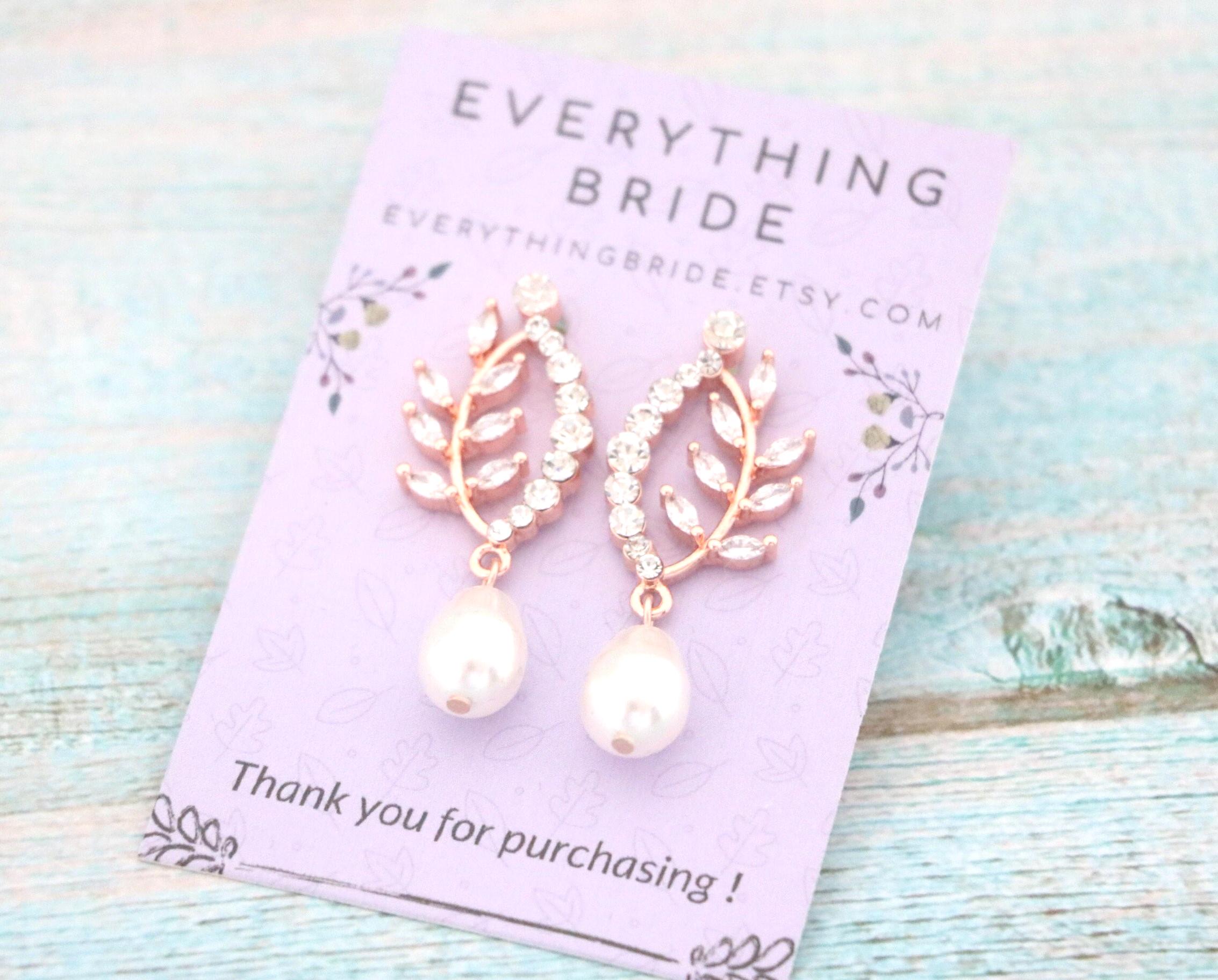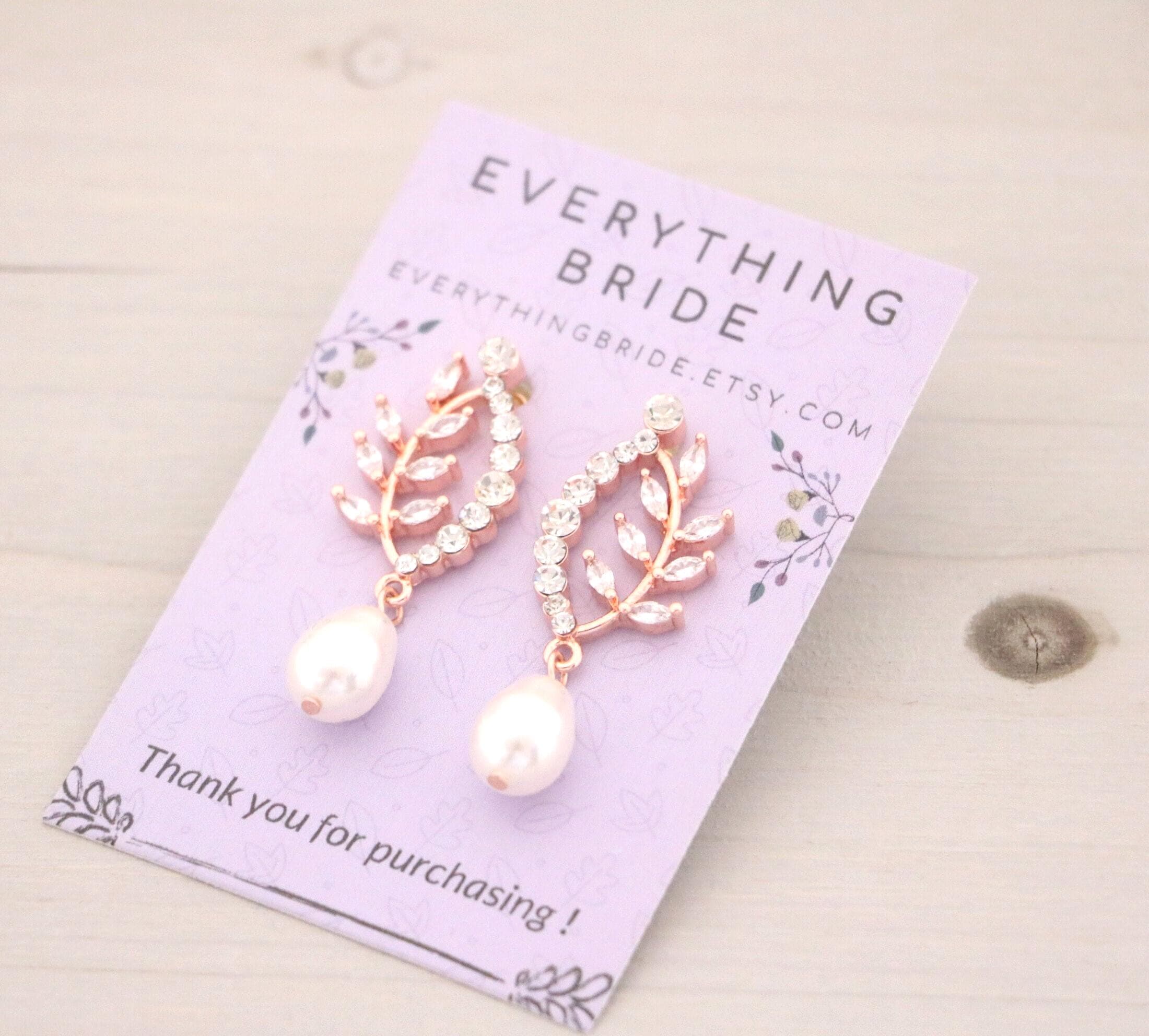 Bridal Pearl Earrings , Bridesmaid Earrings , Drop Earrings , Rose Gold Wedding Earrings , Leaf Dangle Rose gold earrings Rhinestone earrings Crystal earrings Prom earrings