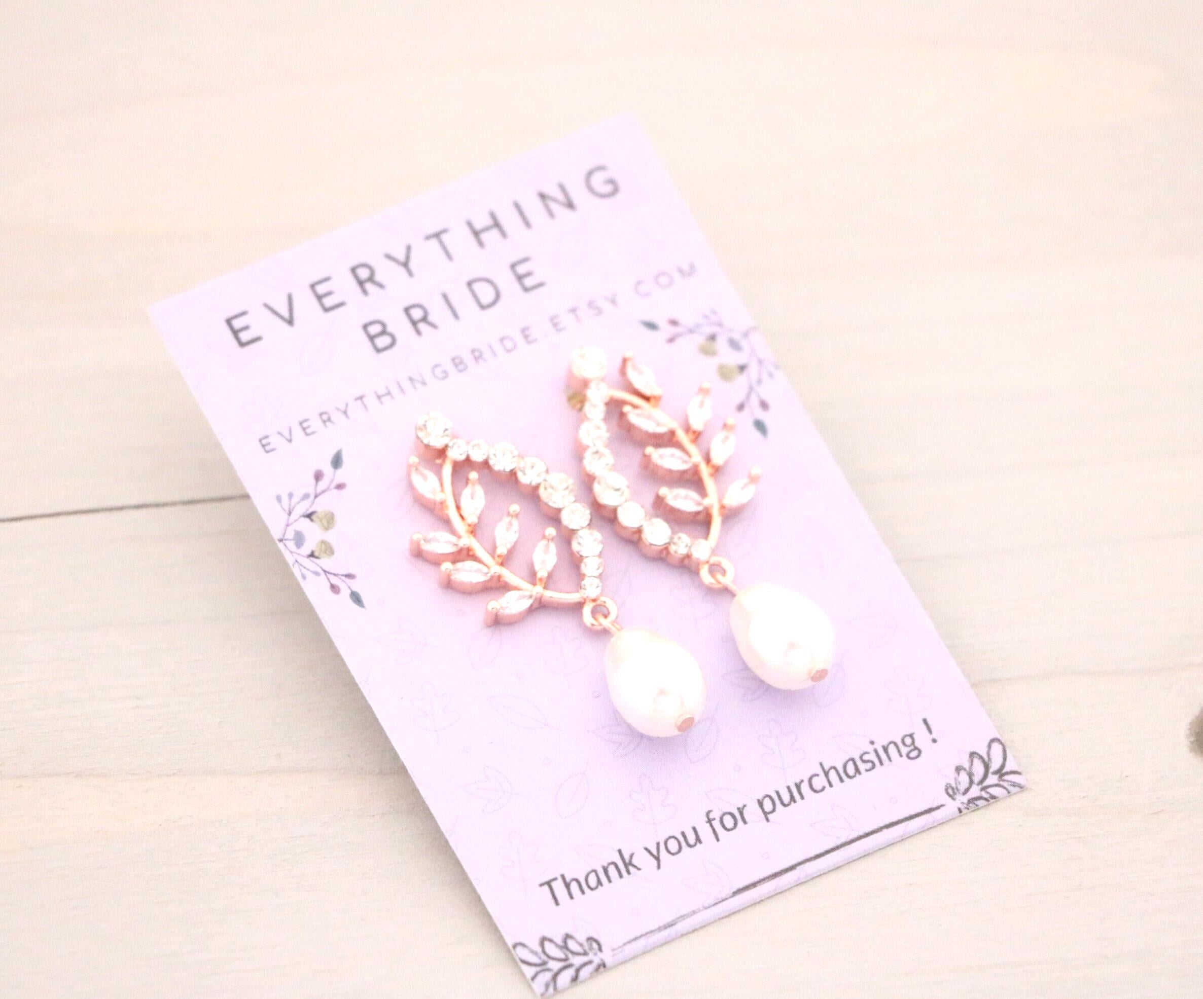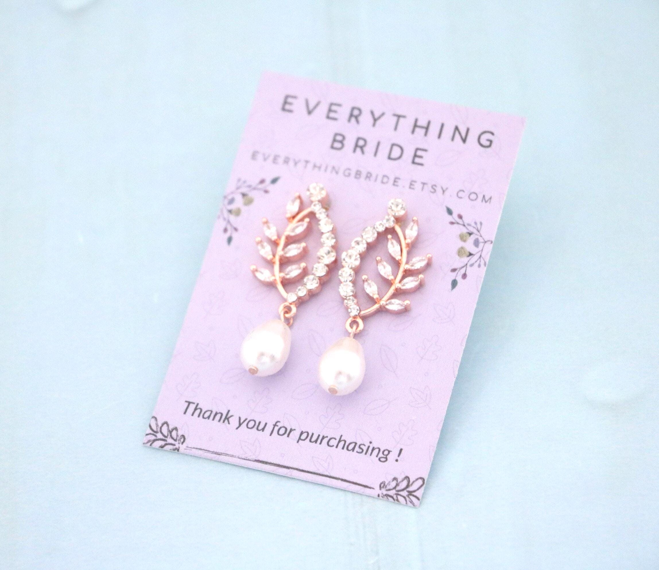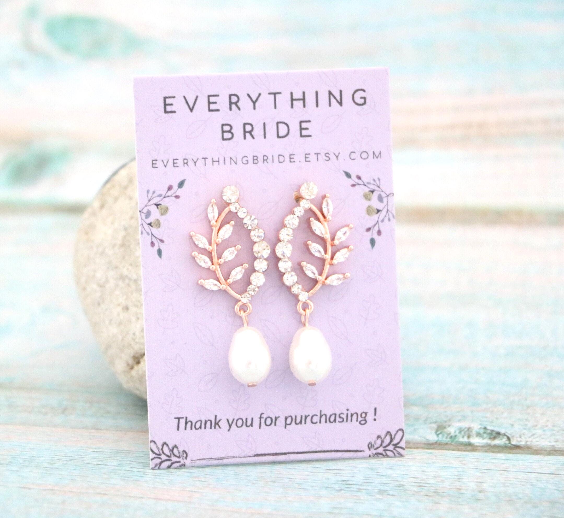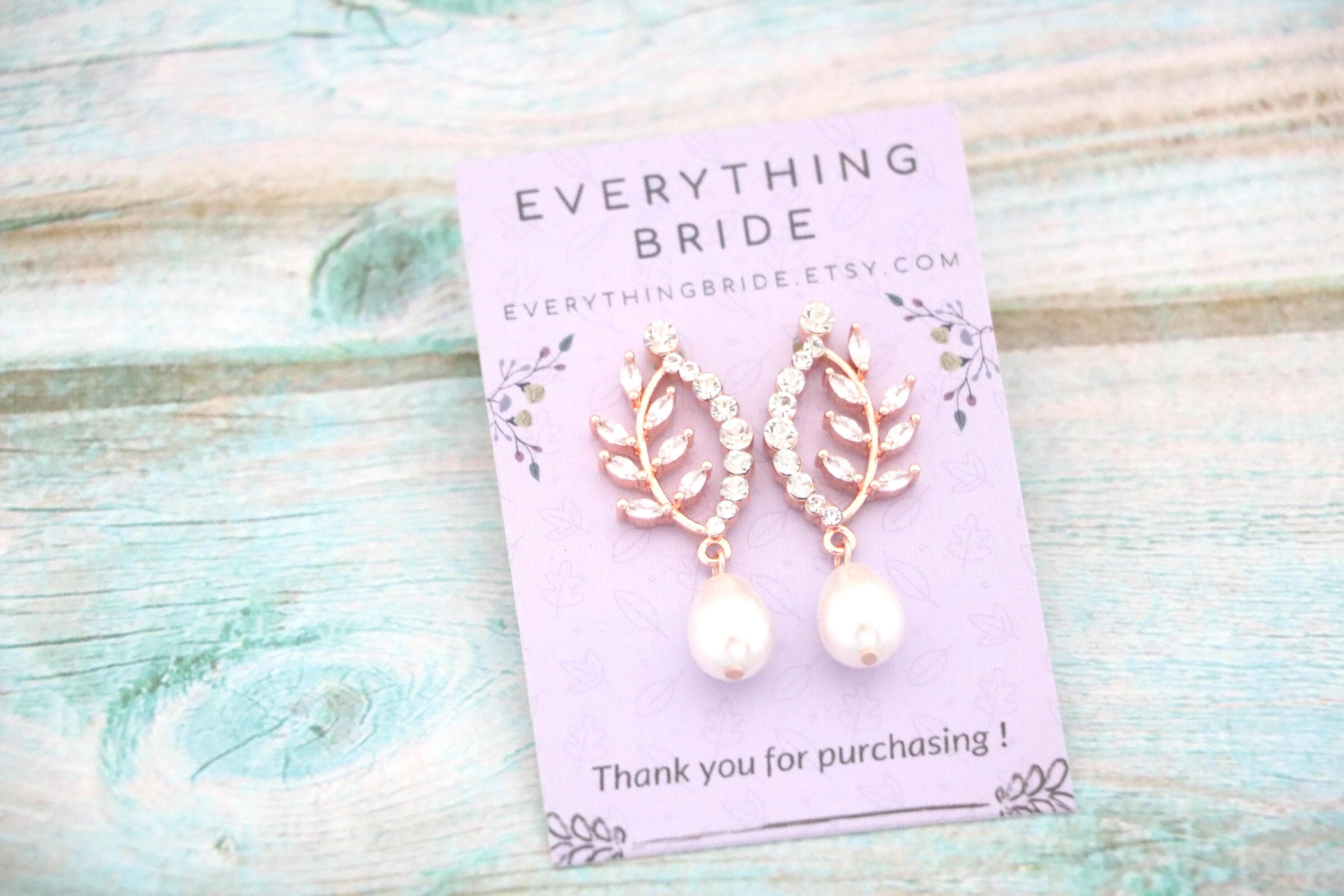 Bridal Pearl Earrings , Bridesmaid Earrings , Drop Earrings , Rose Gold Wedding Earrings , Leaf Dangle Rose gold earrings Rhinestone earrings Crystal earrings Prom earrings