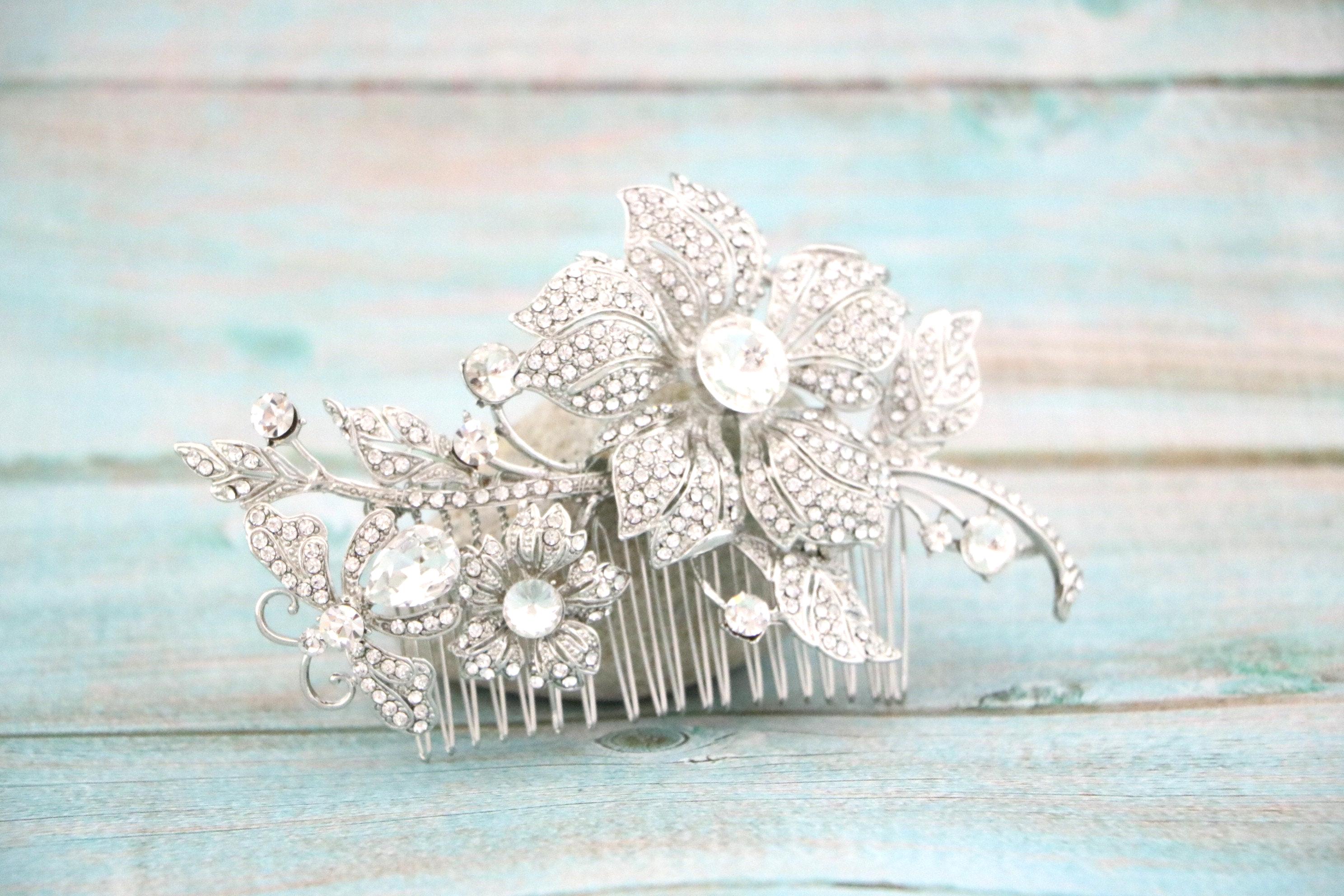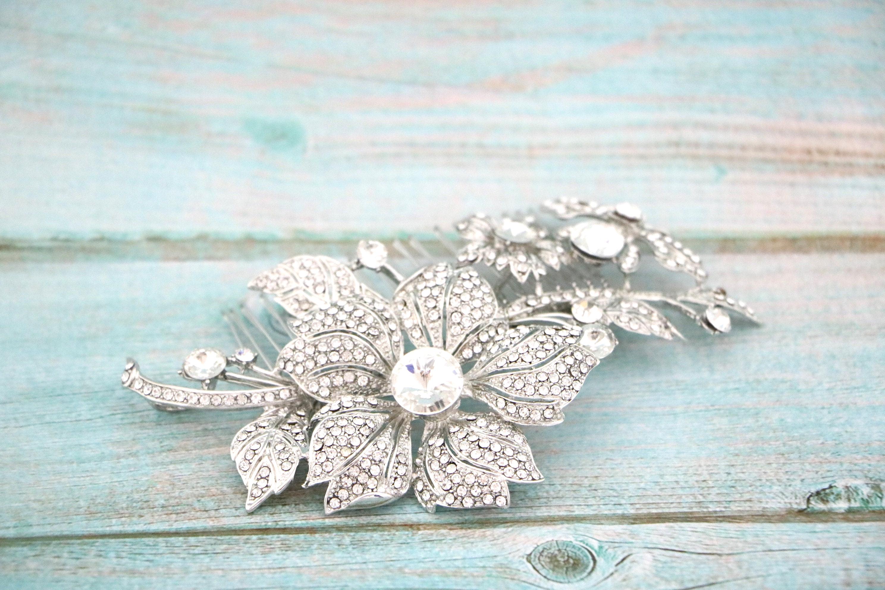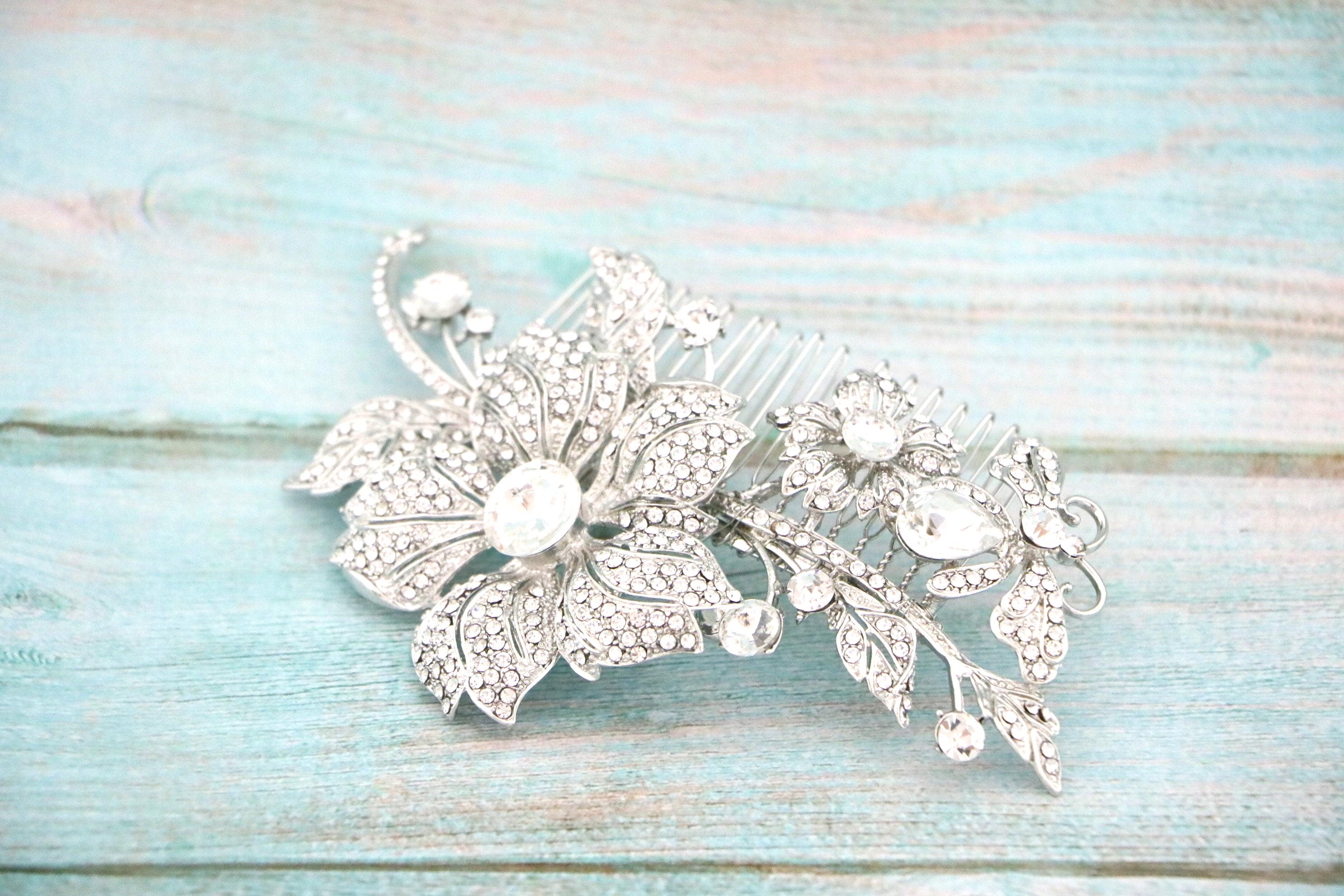 Rhinestone Bridal Hair Comb, Veil Hair Comb, Vintage style Wedding Hair Accessories, Crystal Bridal Hair Clip, Glam Wedding Statement Hair Piece