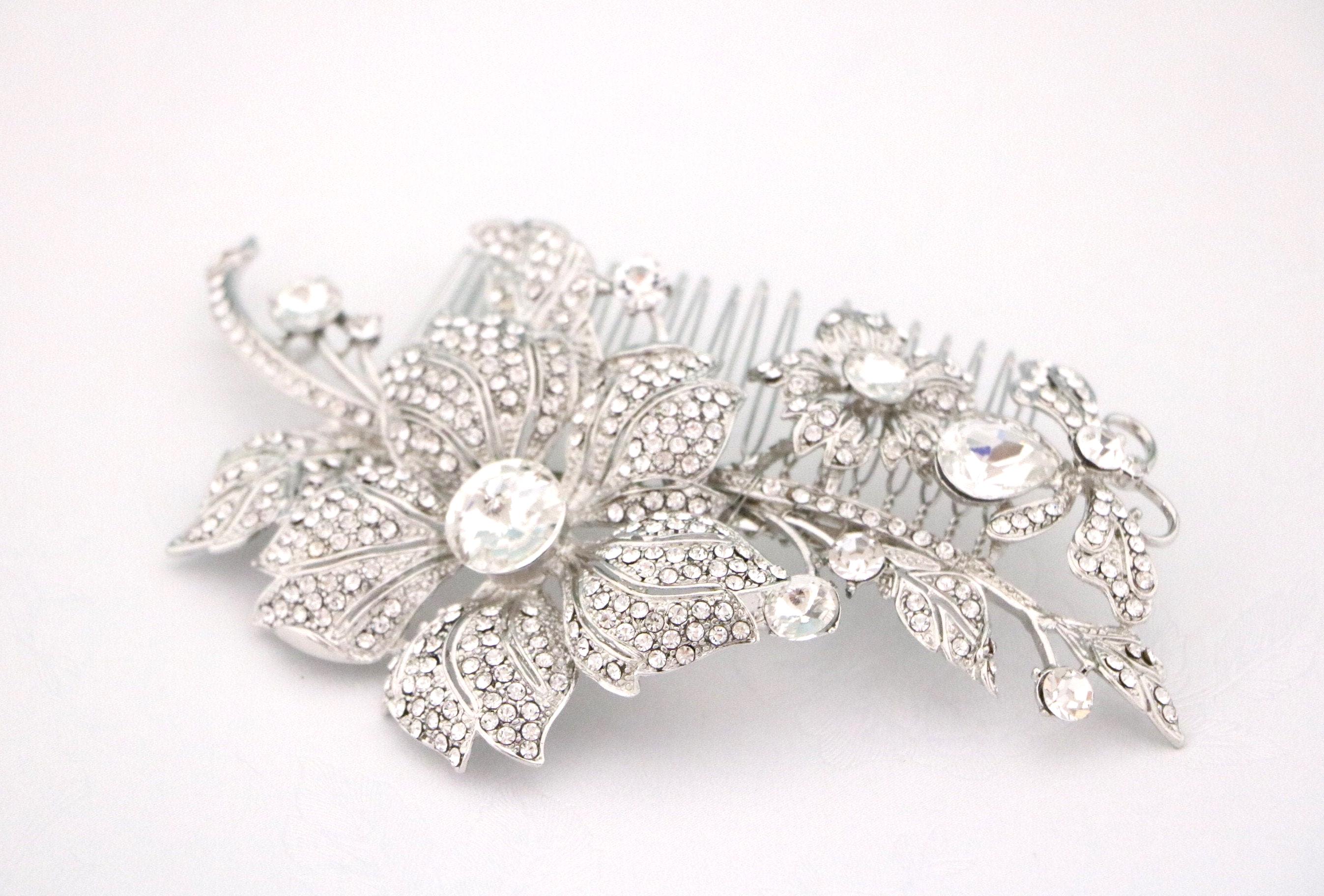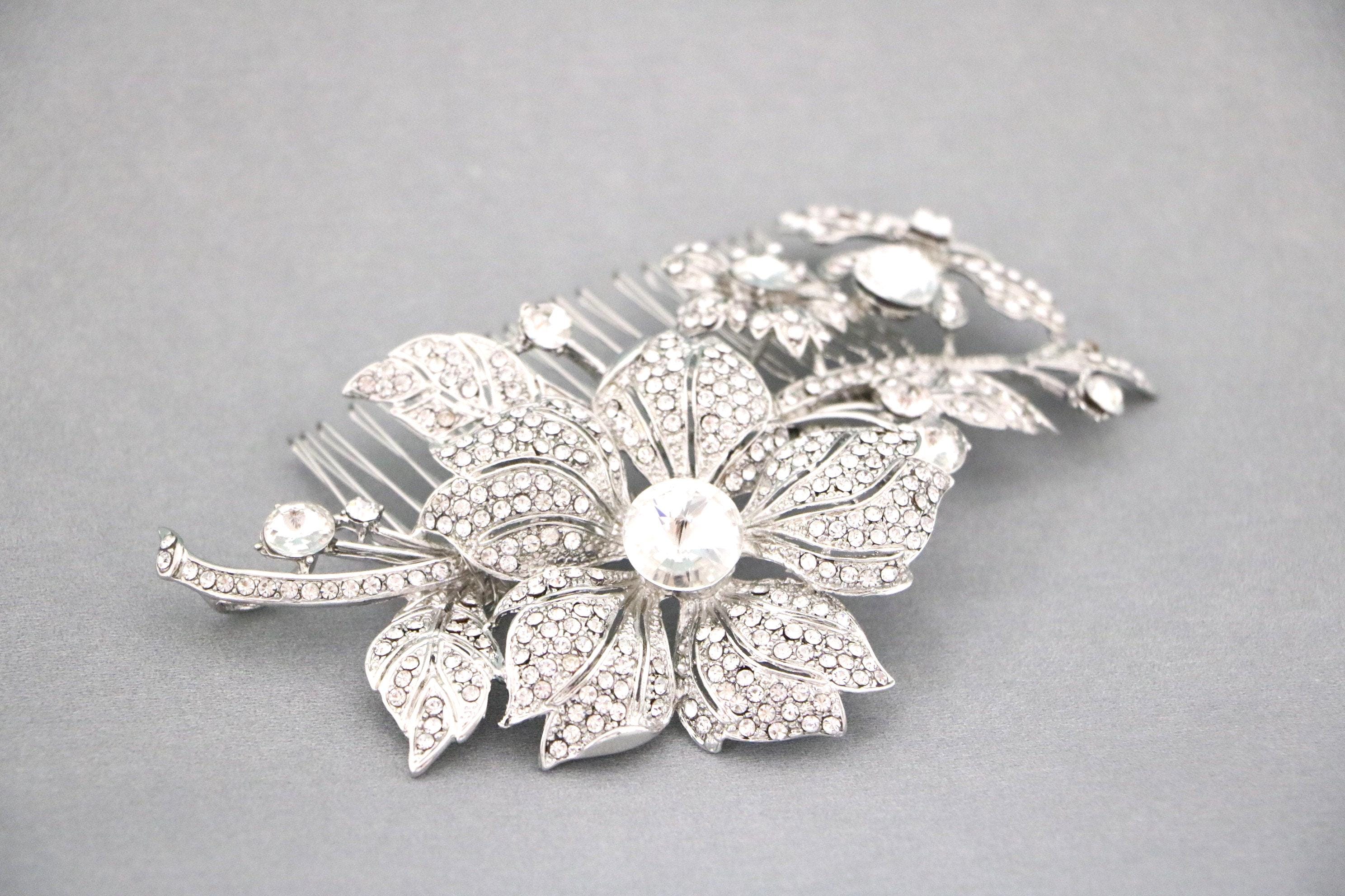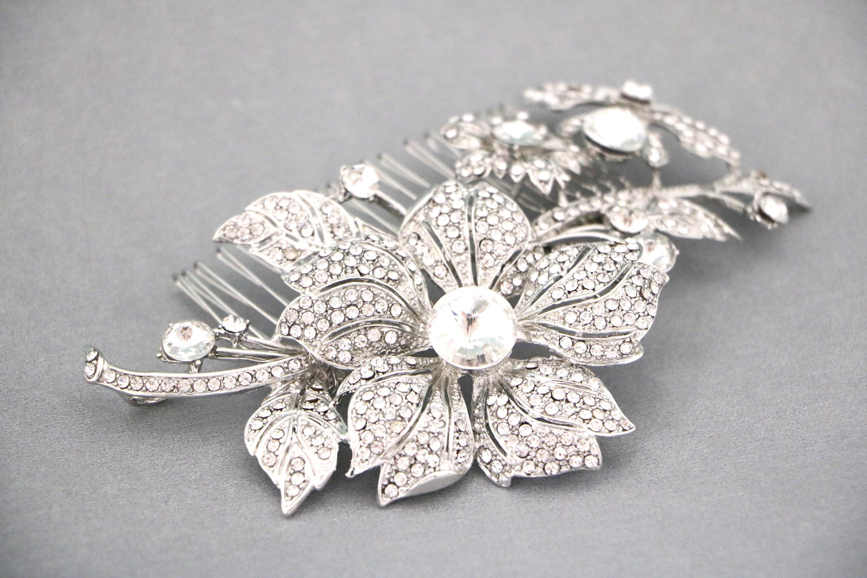 Rhinestone Bridal Hair Comb, Veil Hair Comb, Vintage style Wedding Hair Accessories, Crystal Bridal Hair Clip, Glam Wedding Statement Hair Piece